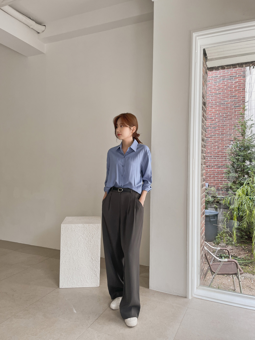 Briden pintuck wide slacks_S,M,L-4color, attractive color-clean fit, long-leg effect-no wrinkle, always neat fit like new clothes - Style Tiva