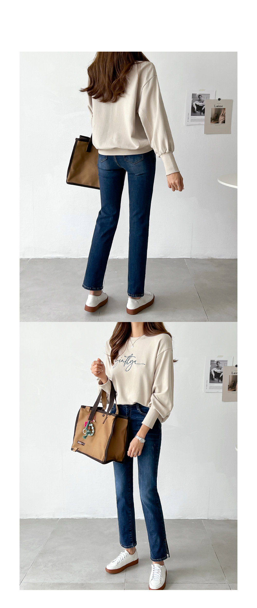 심플한 핏감을 돋보여주는 일자핏으로