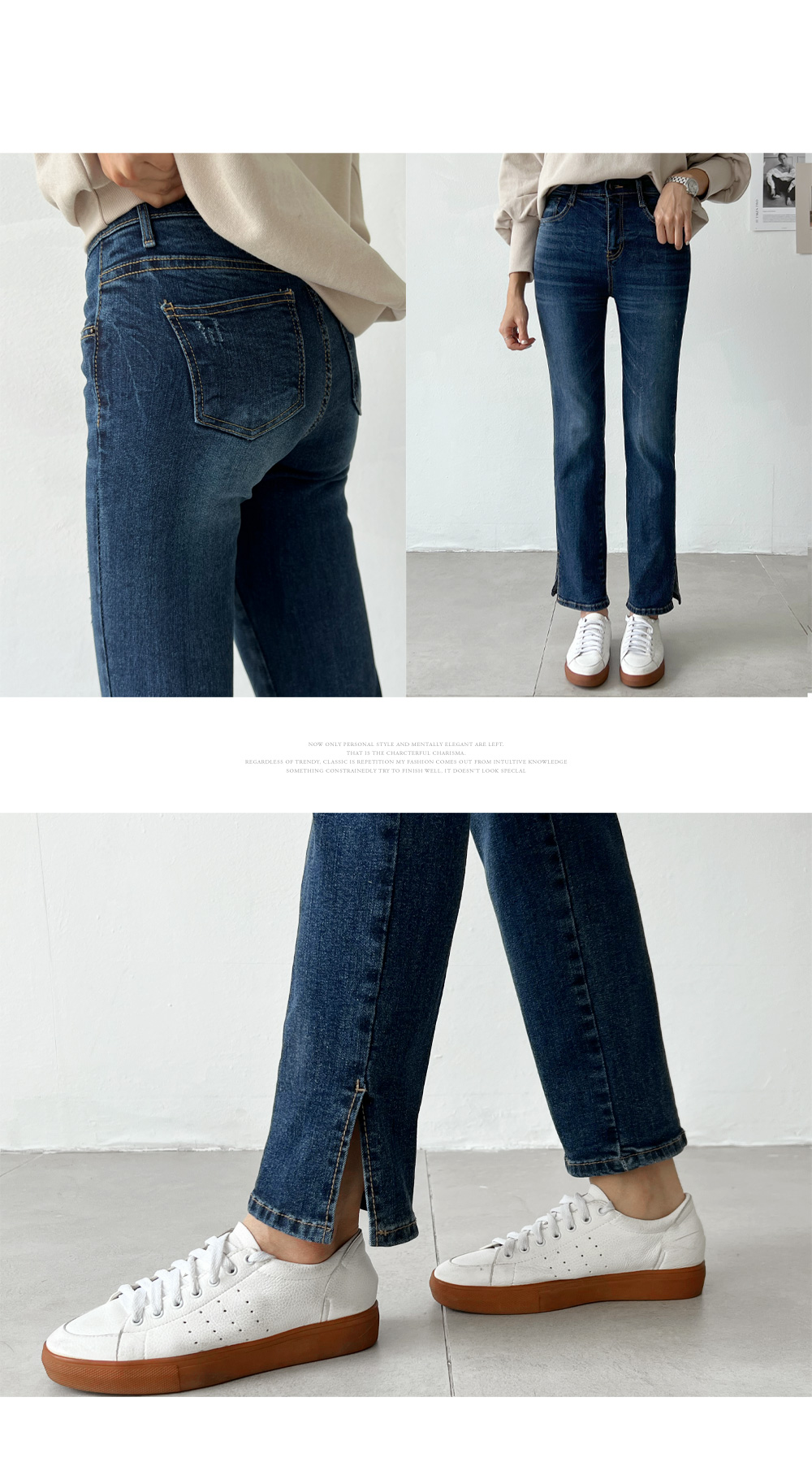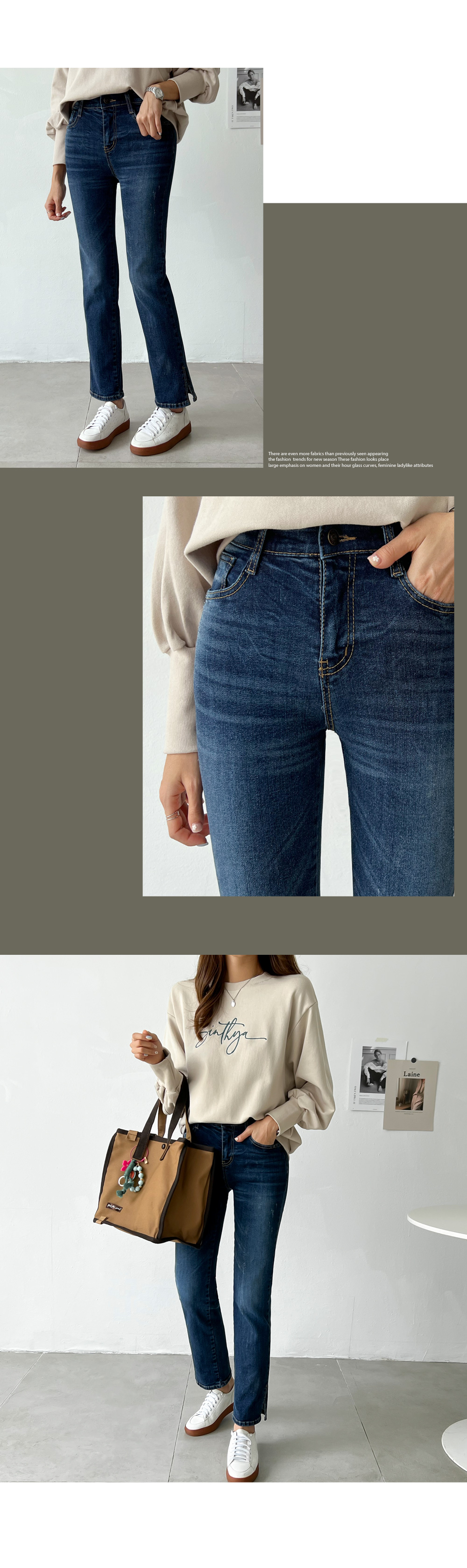 캐쥬얼한 스타일의 슬림 일자핏 진이에요.