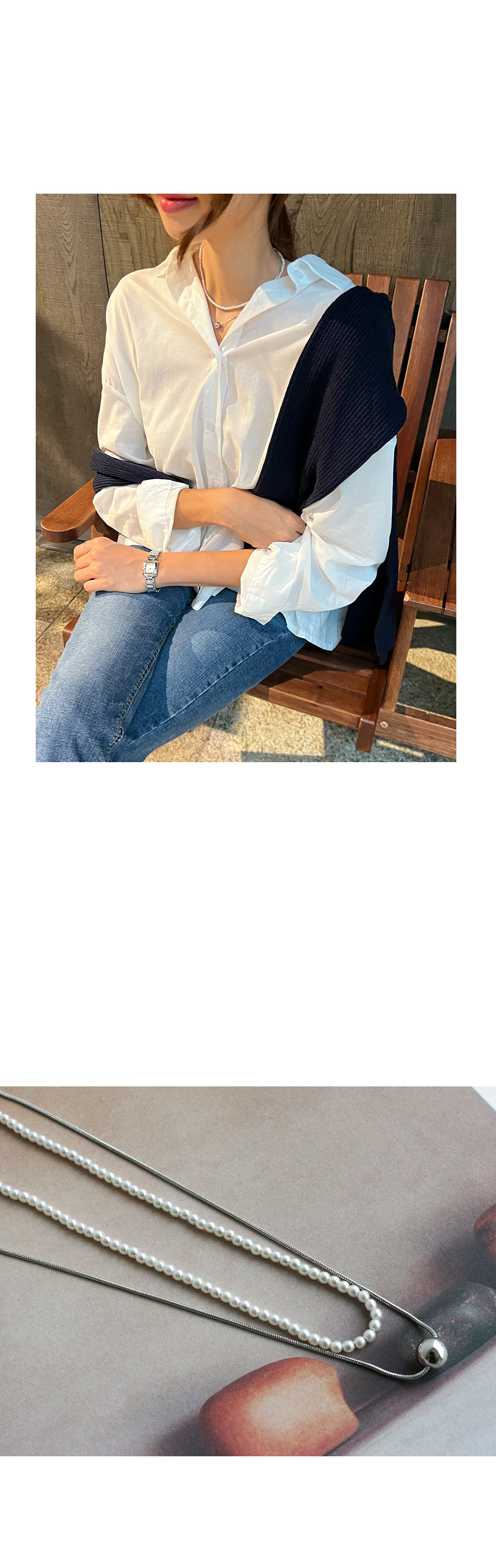진주 실버 볼 2줄 목걸이 #87021