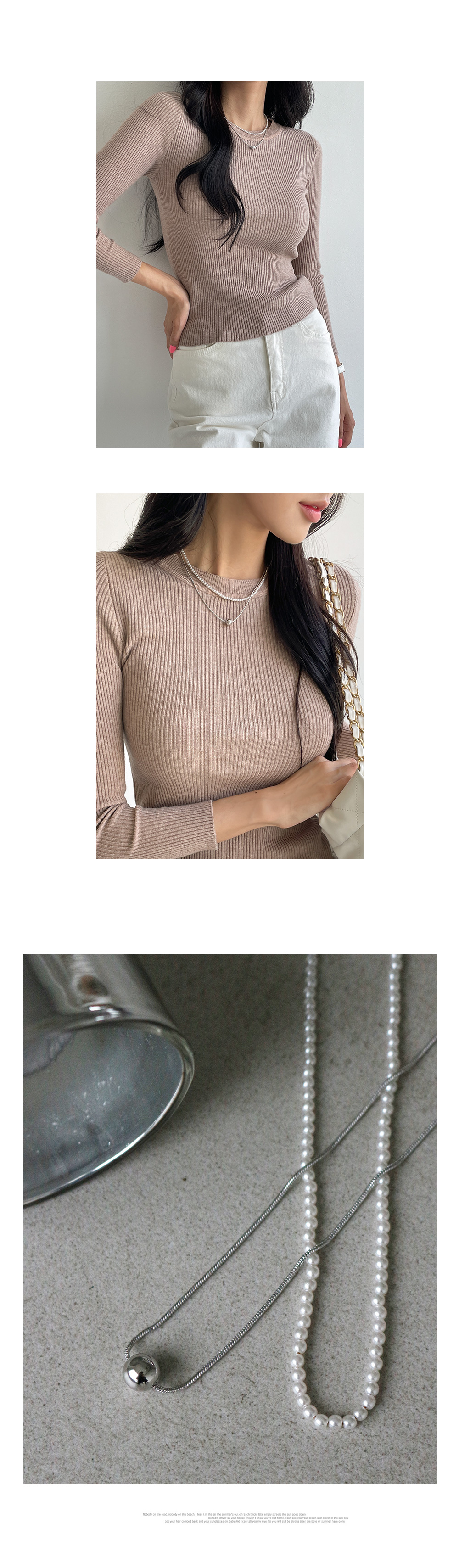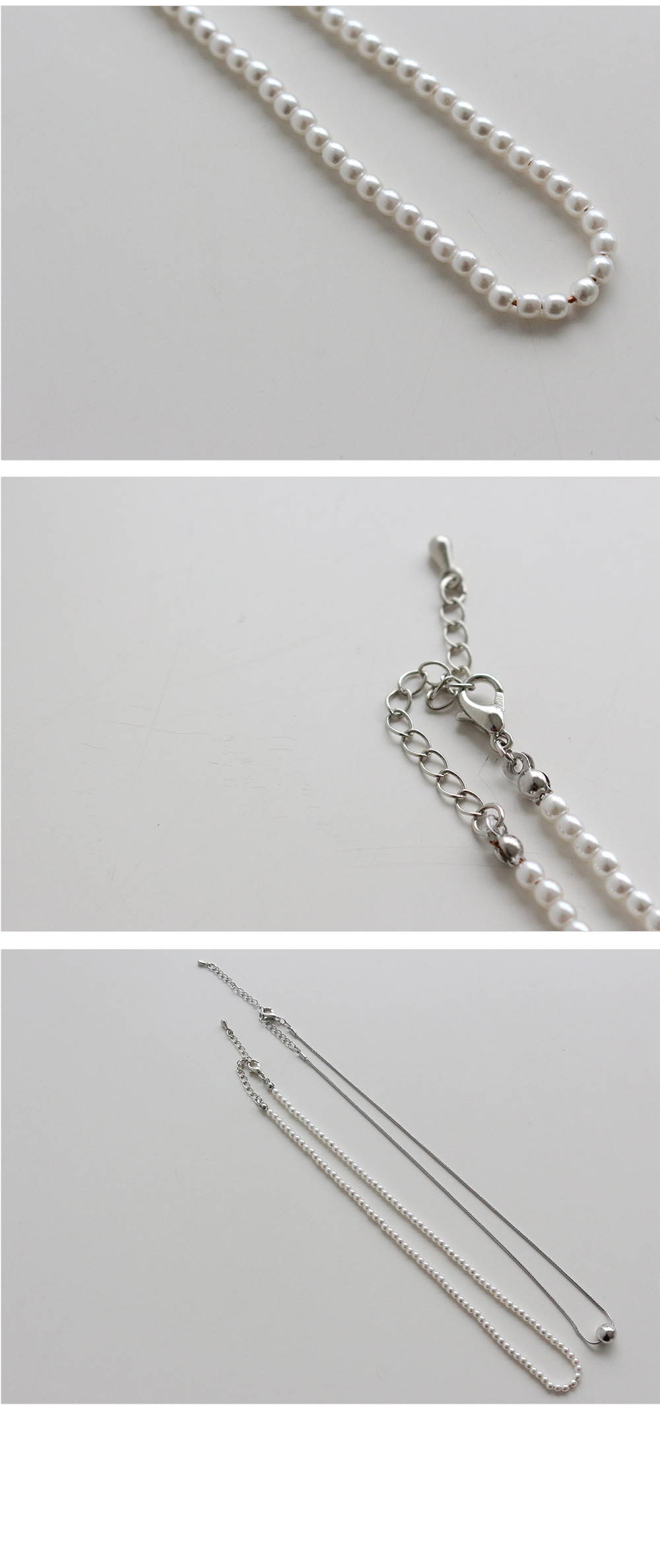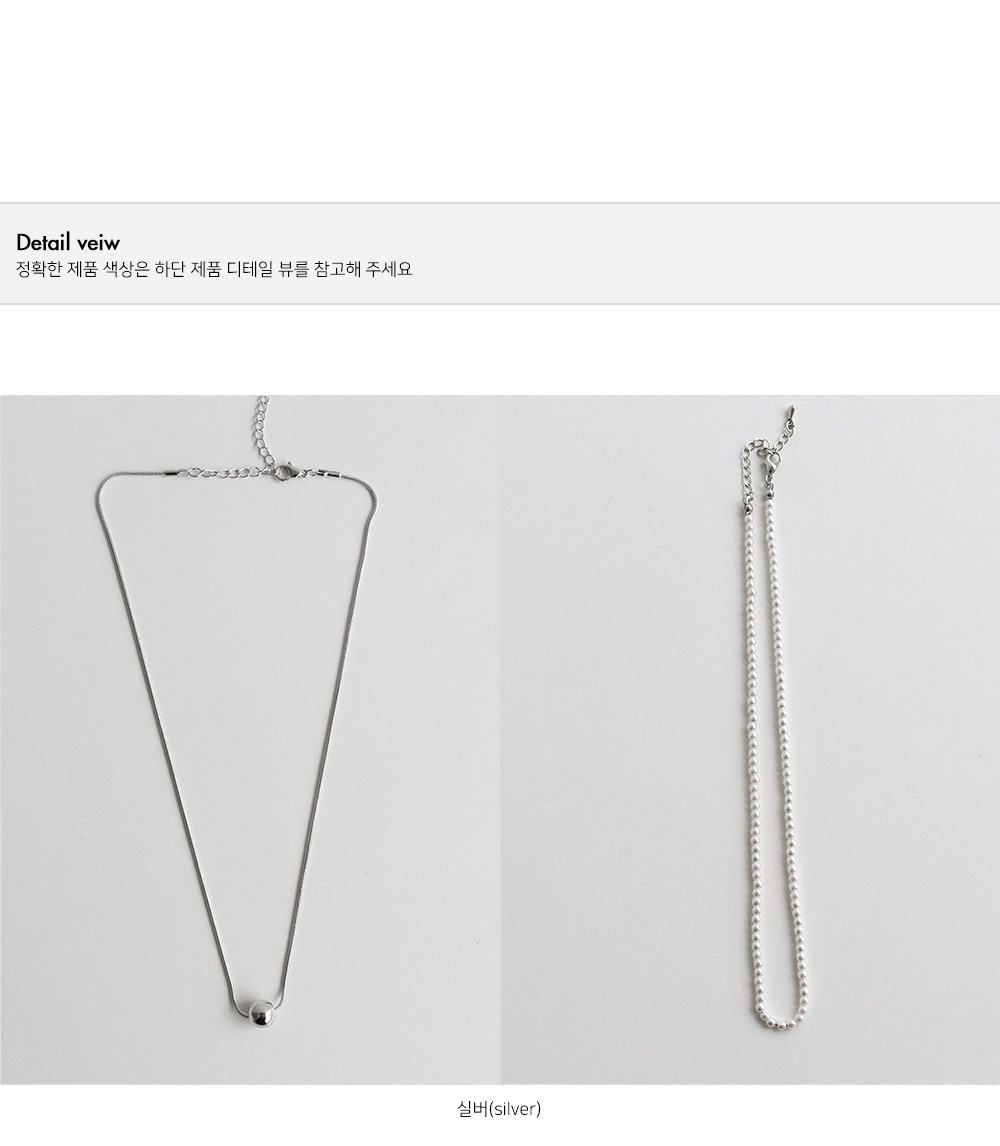 실버 볼 목걸이와 스몰 진주 목걸이 2줄이 세트로