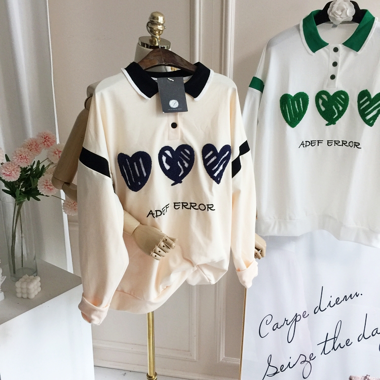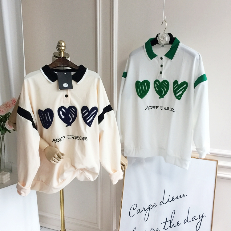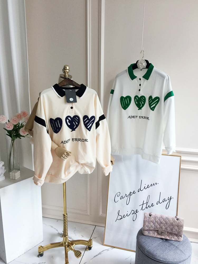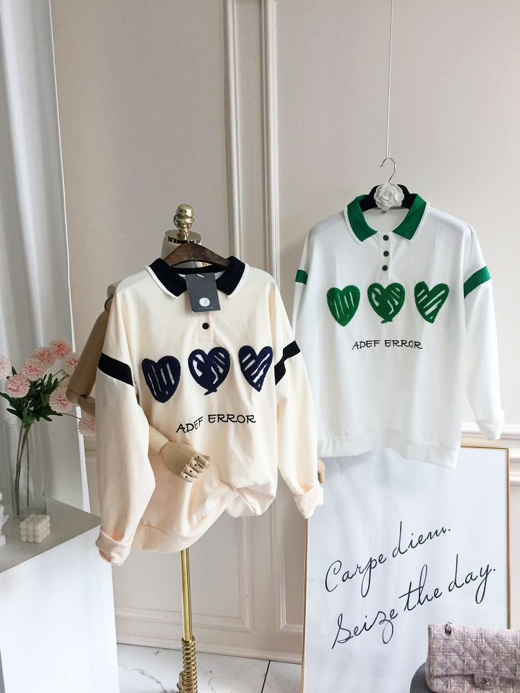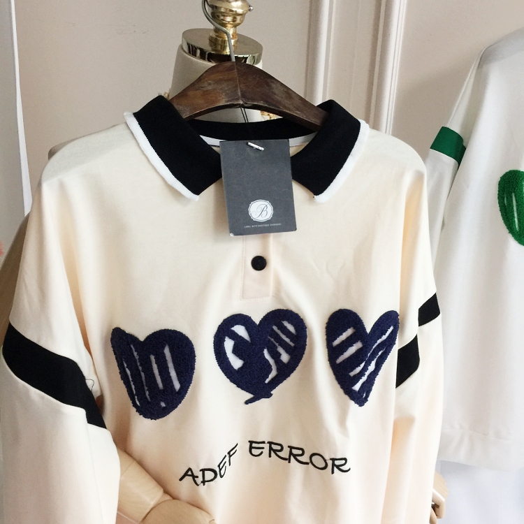 국내상품 / 쓰리하트 박시 카라 티셔츠