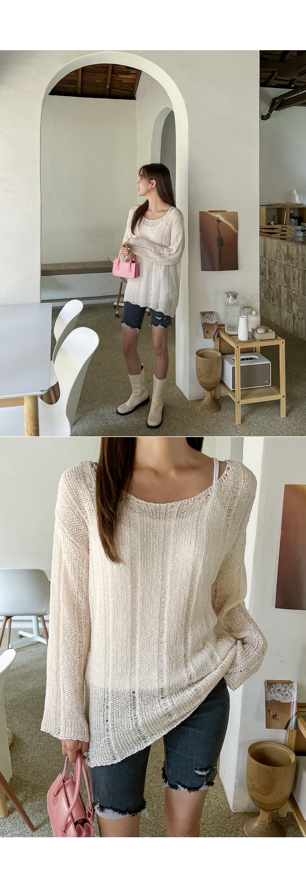 드롭 숄더와 여유 있는 루즈핏으로 여리여리한