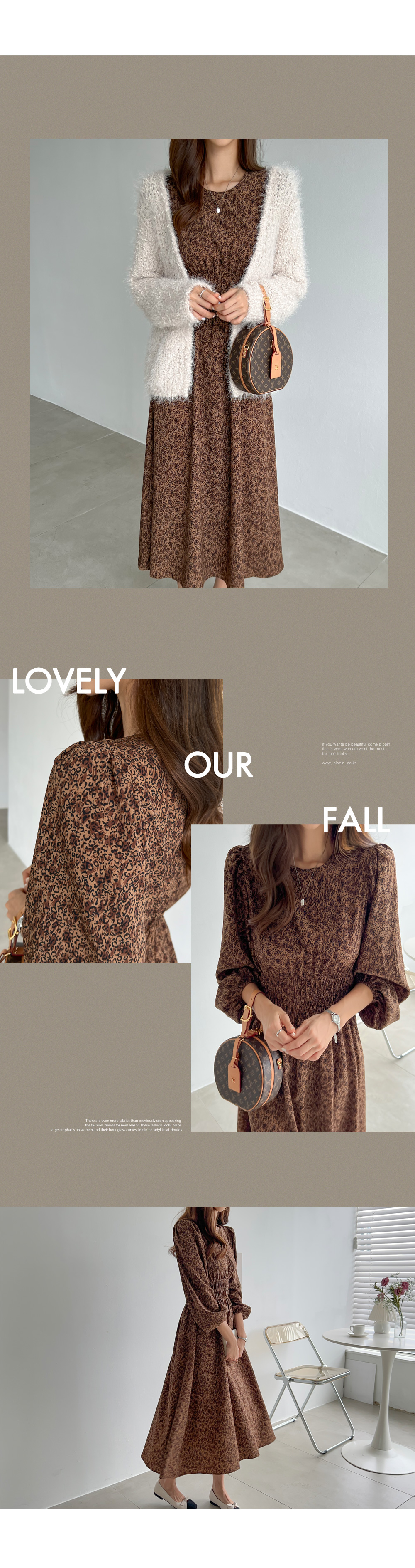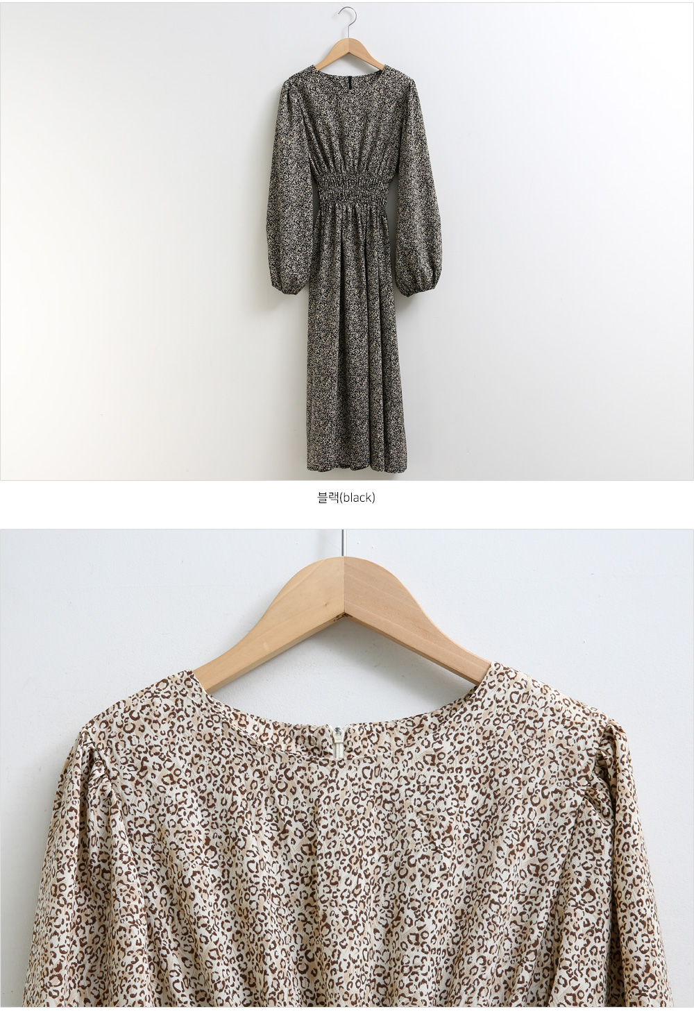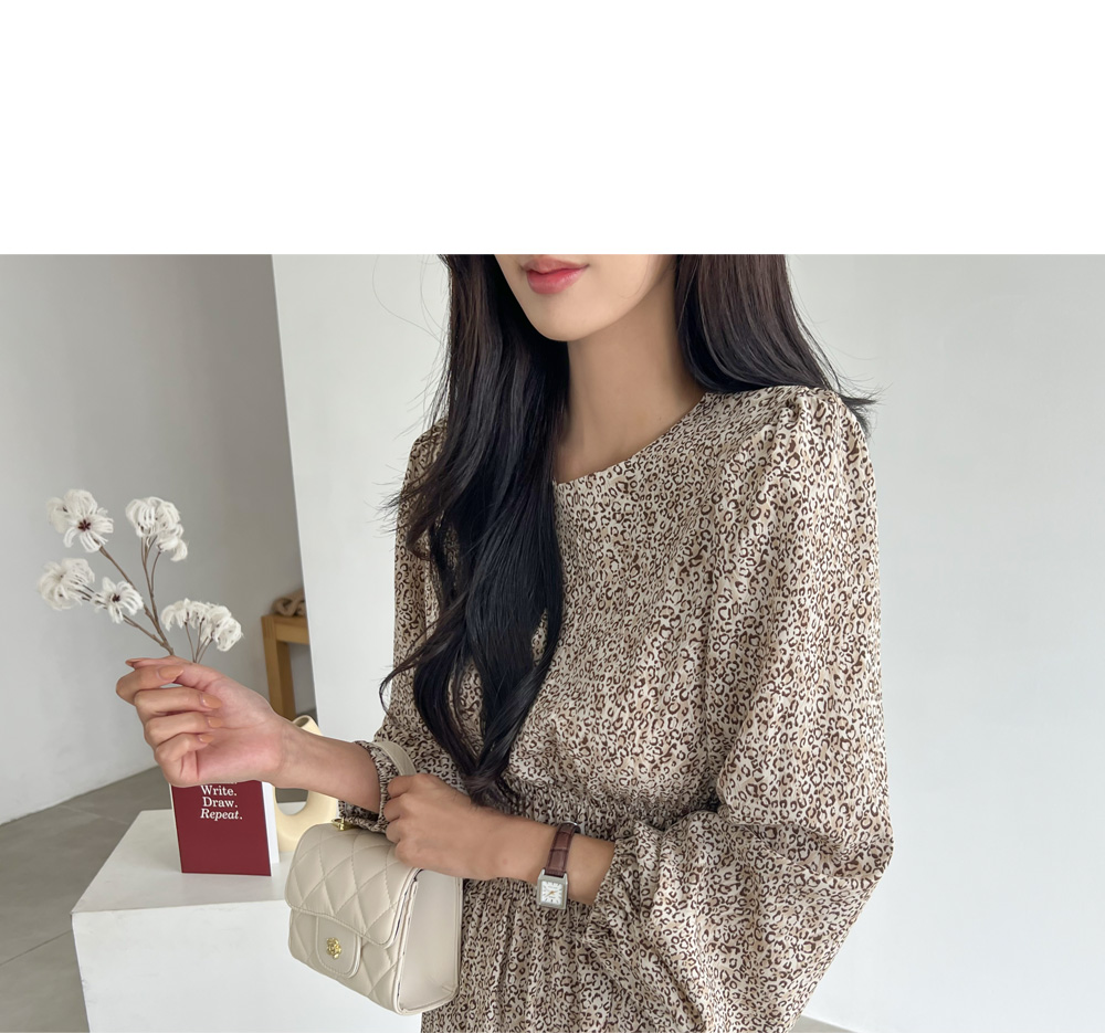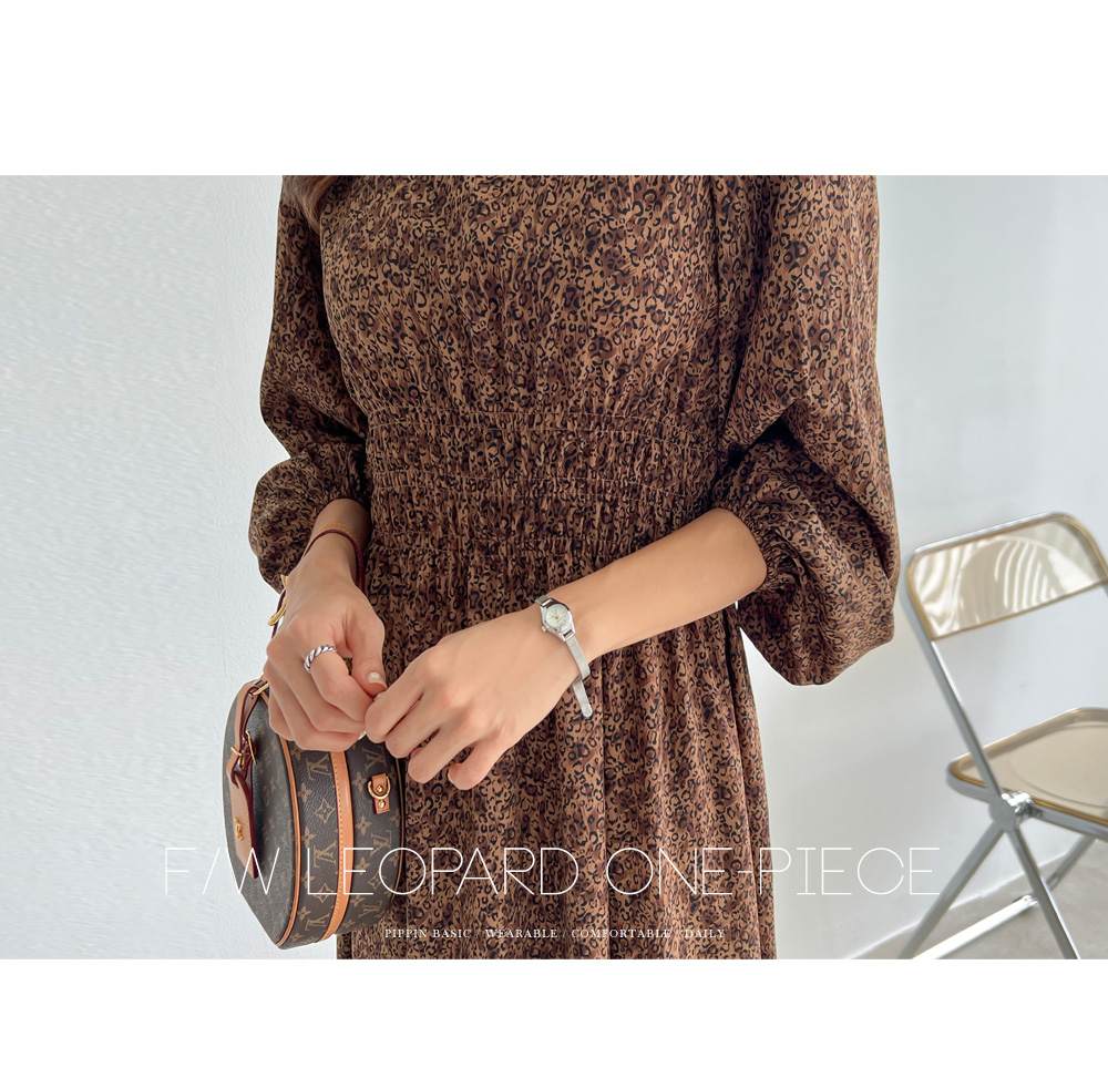 레오파드 퍼프 롱원피스 #38391