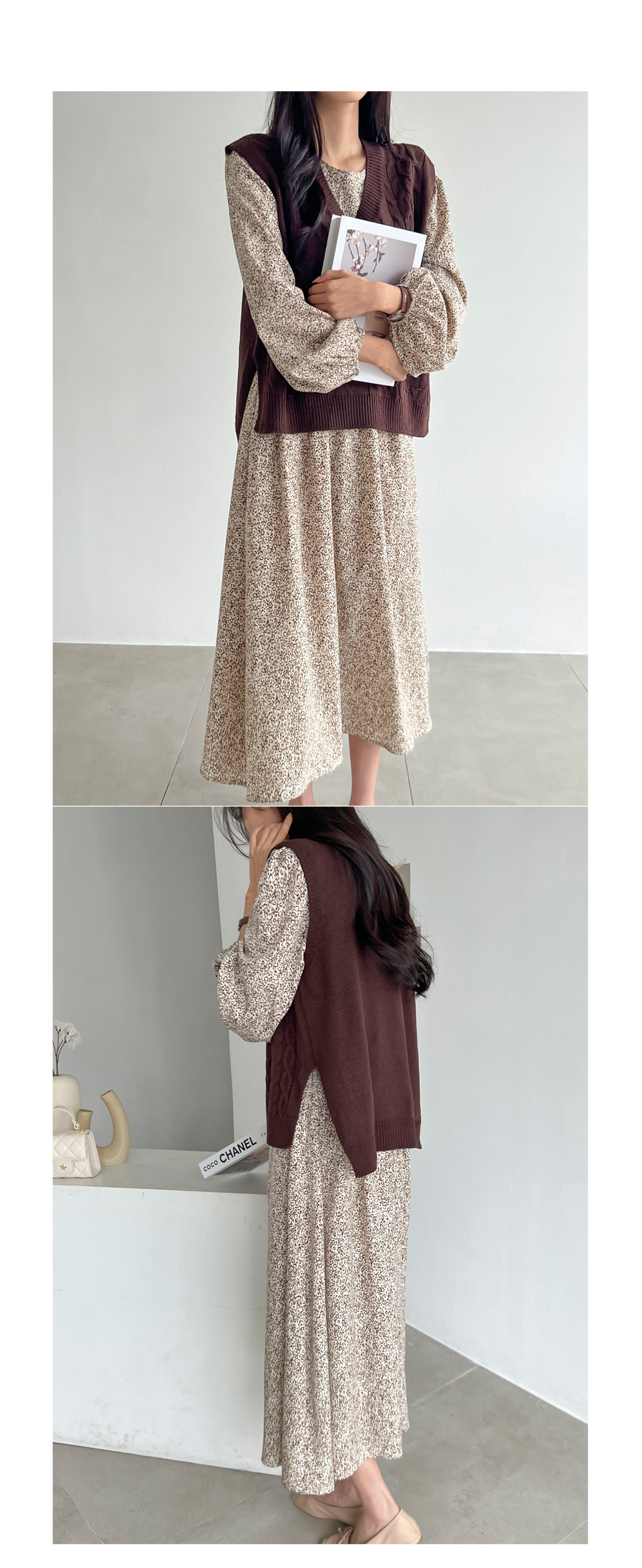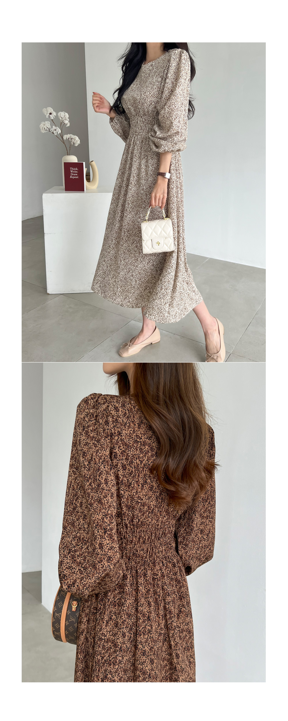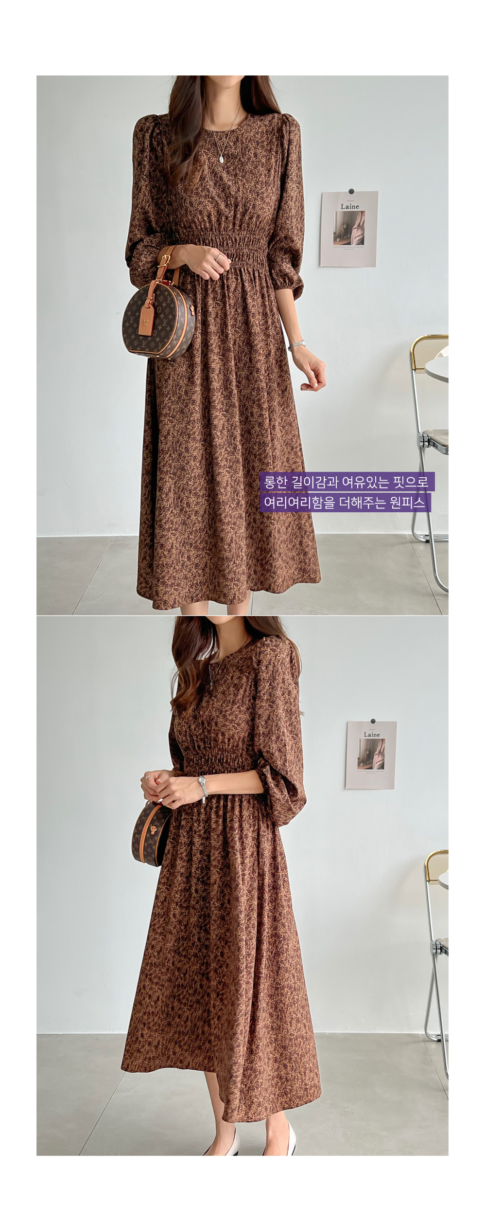 레오파드 퍼프 롱원피스 #38391