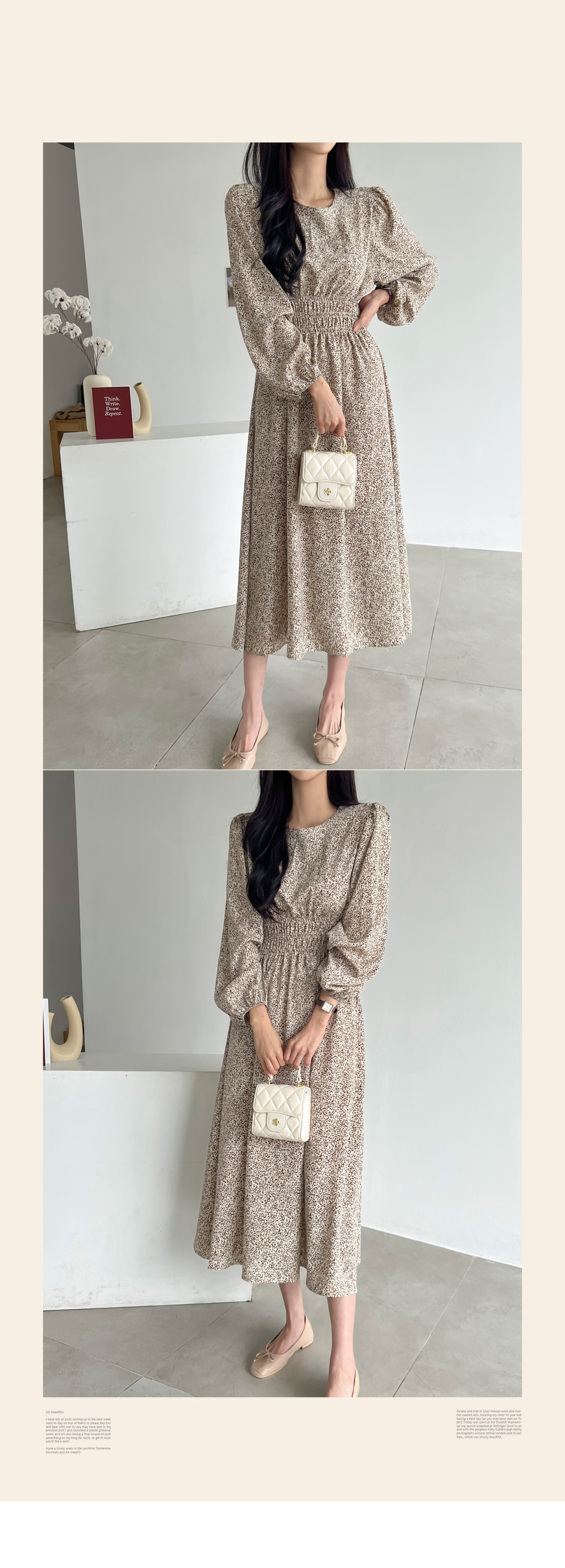 퍼프소매와 허리 셔링으로