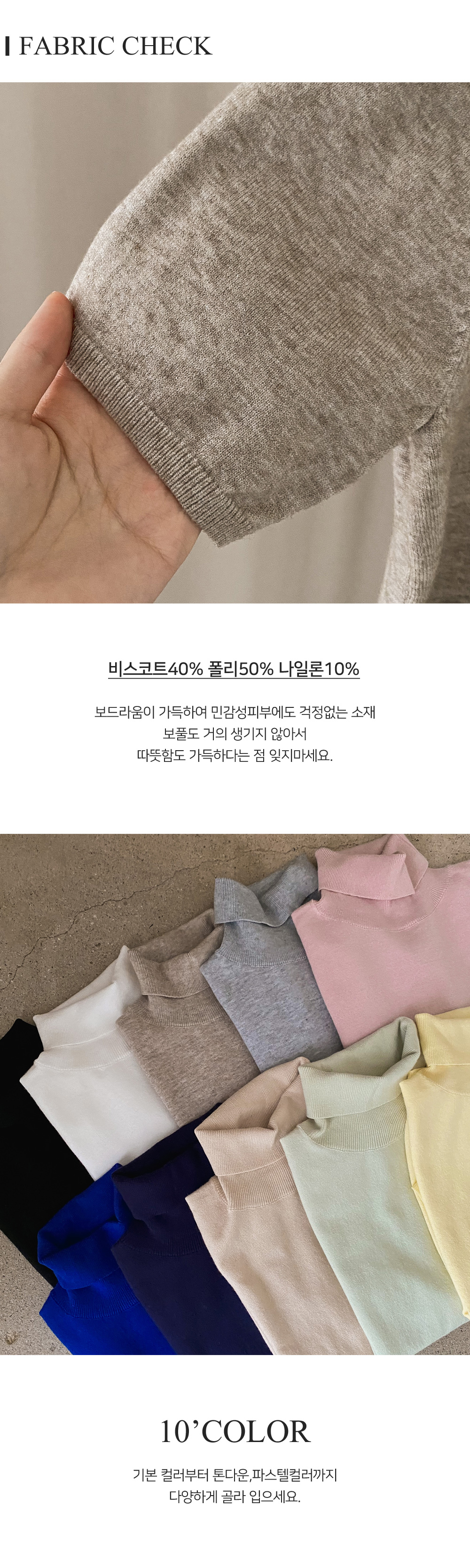 비스코스 폴라니트티-10color, 부드러운 비스코스 폴라티-선택의 폭이넓은 다양한 컬러감-답답하지 않은 폴라넥으로 따스하게~ - 스타일티바