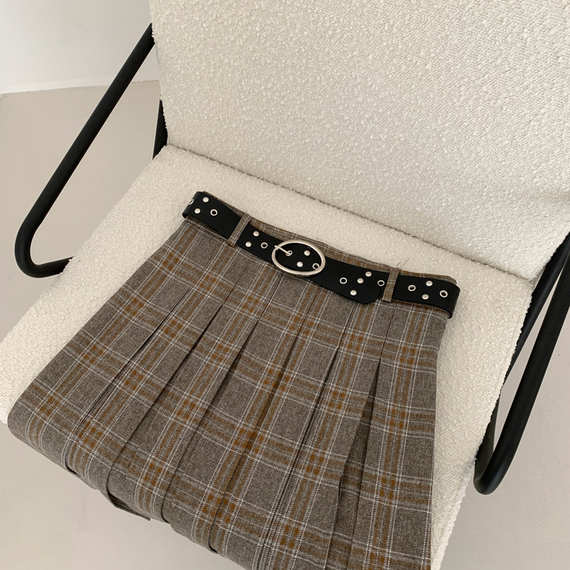 글렌 체크 미디 스커트