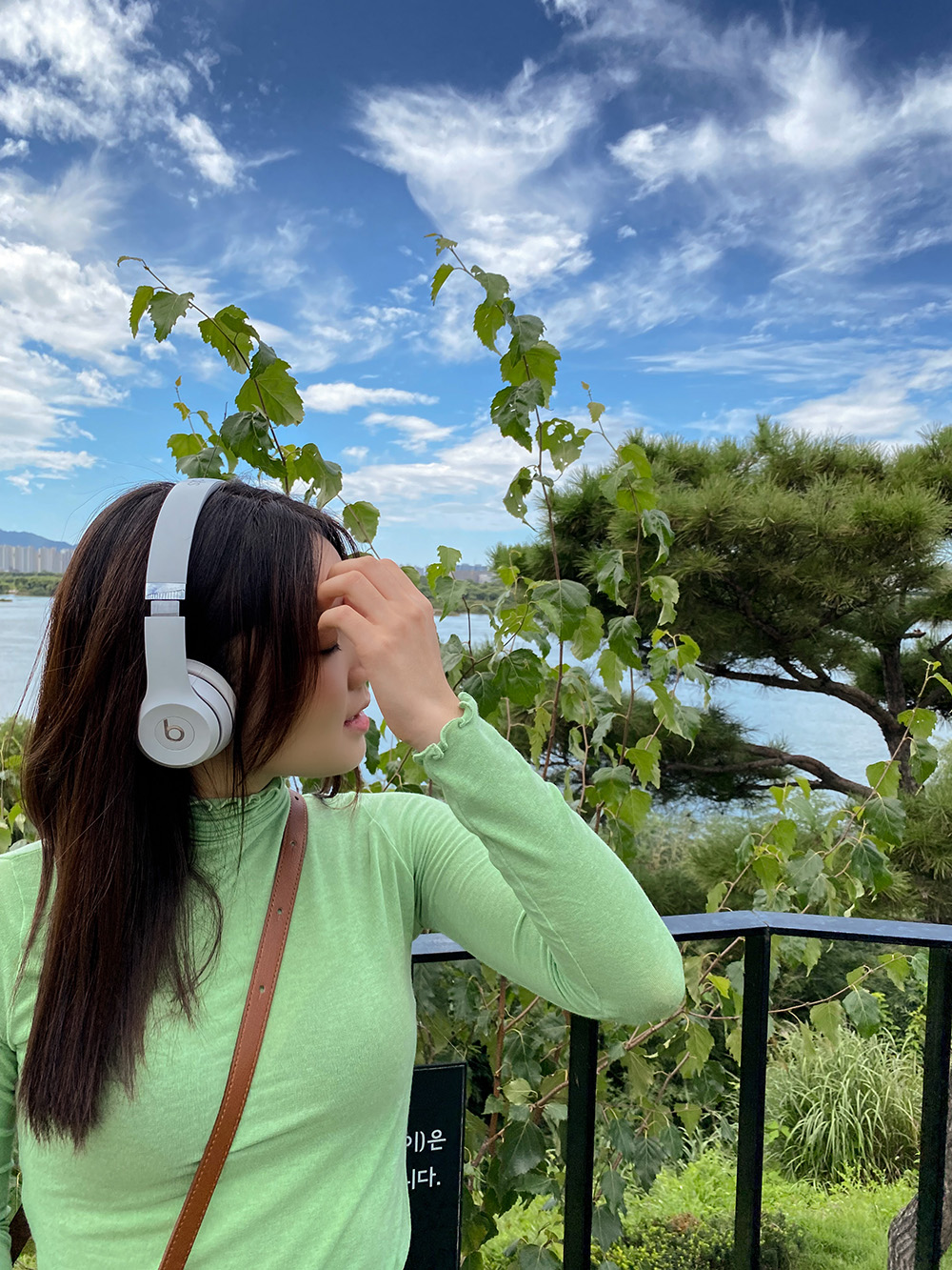 자연스러운 셔링을 잡아주면 더욱 여리한 무드!