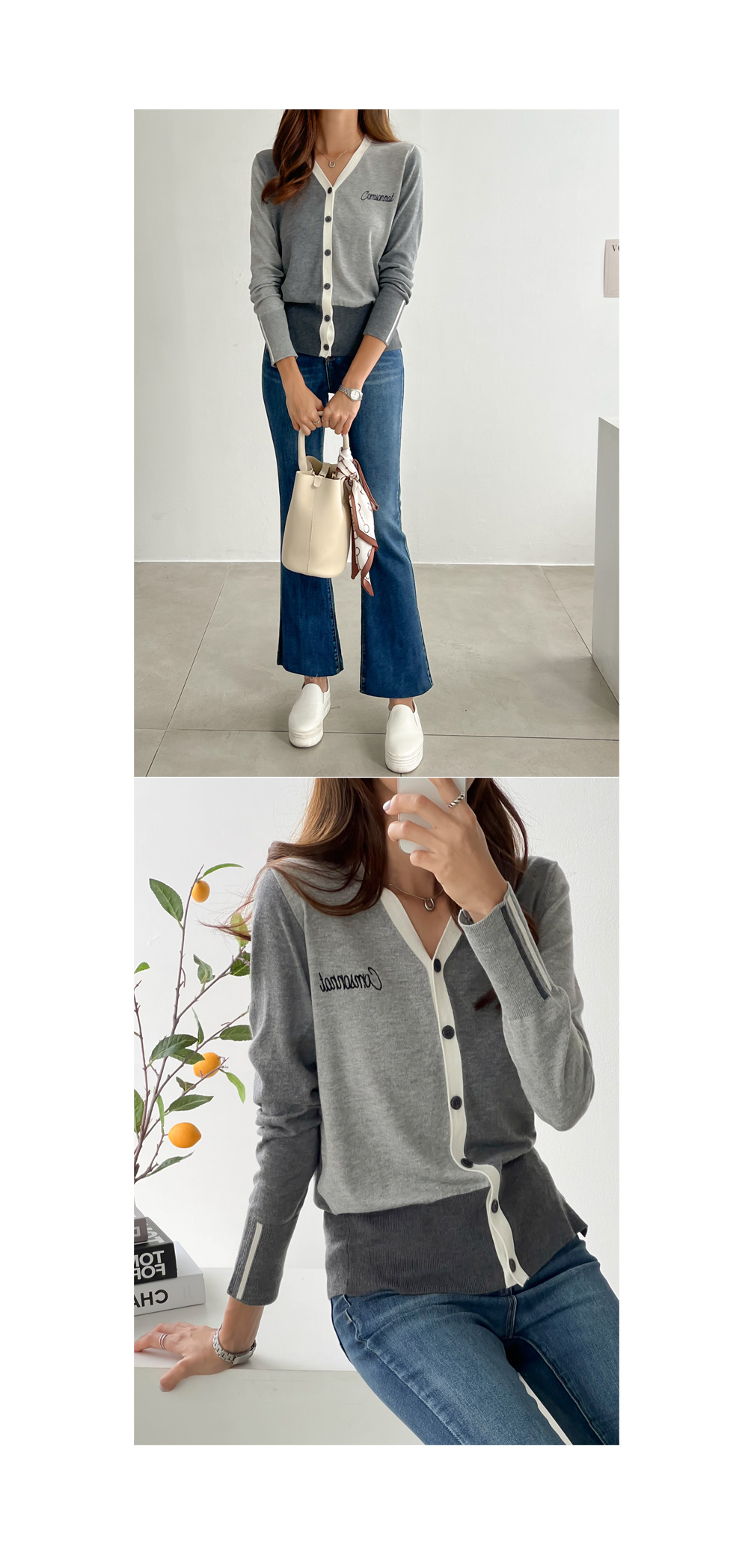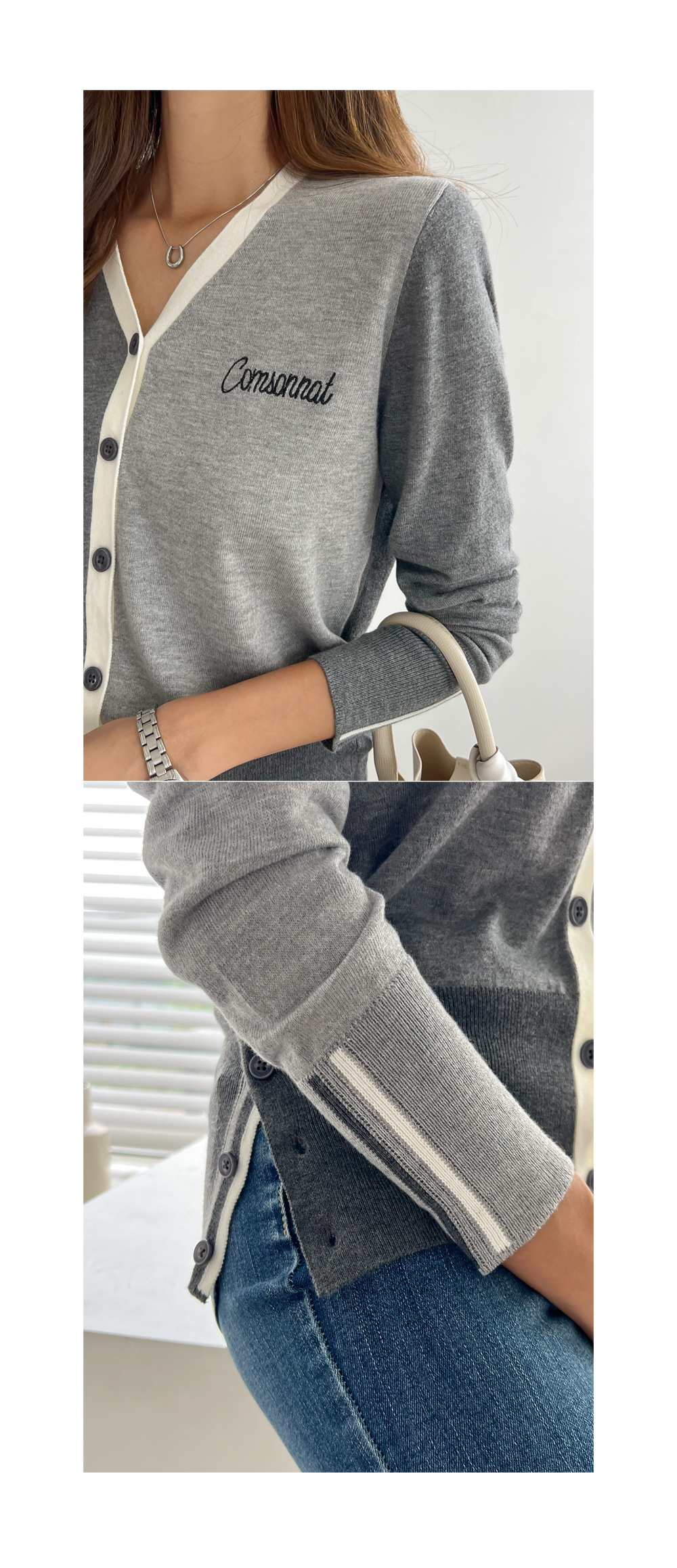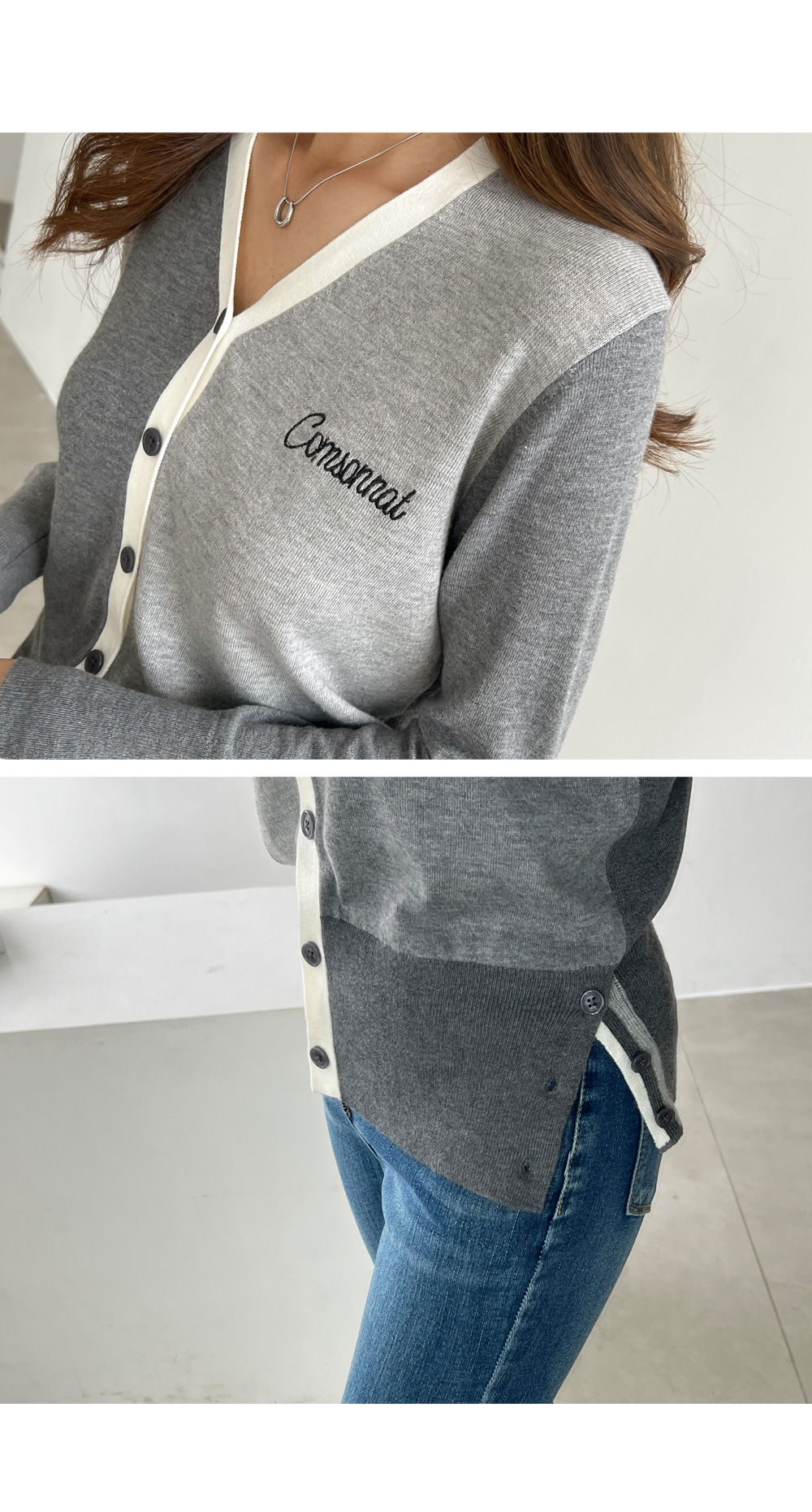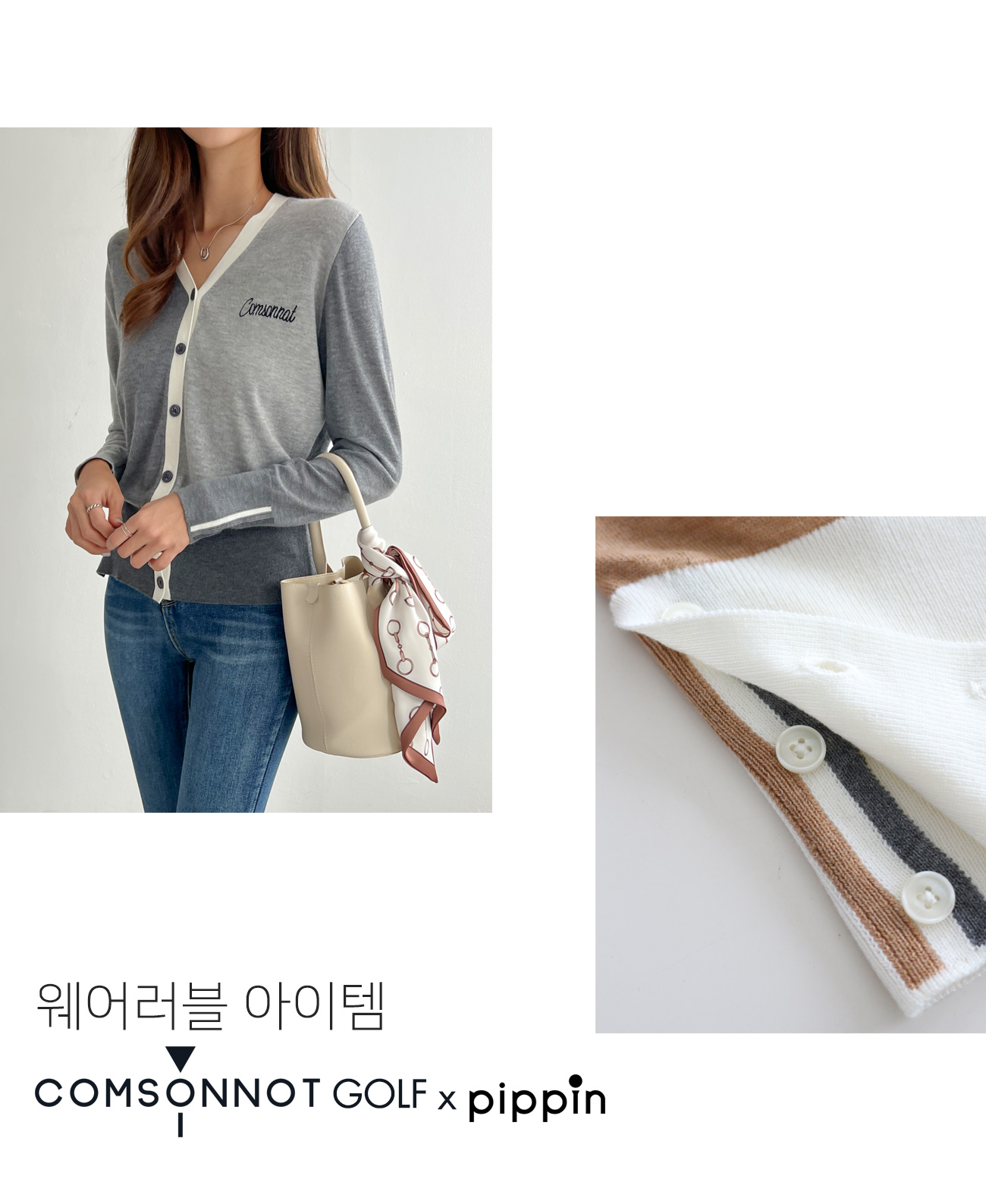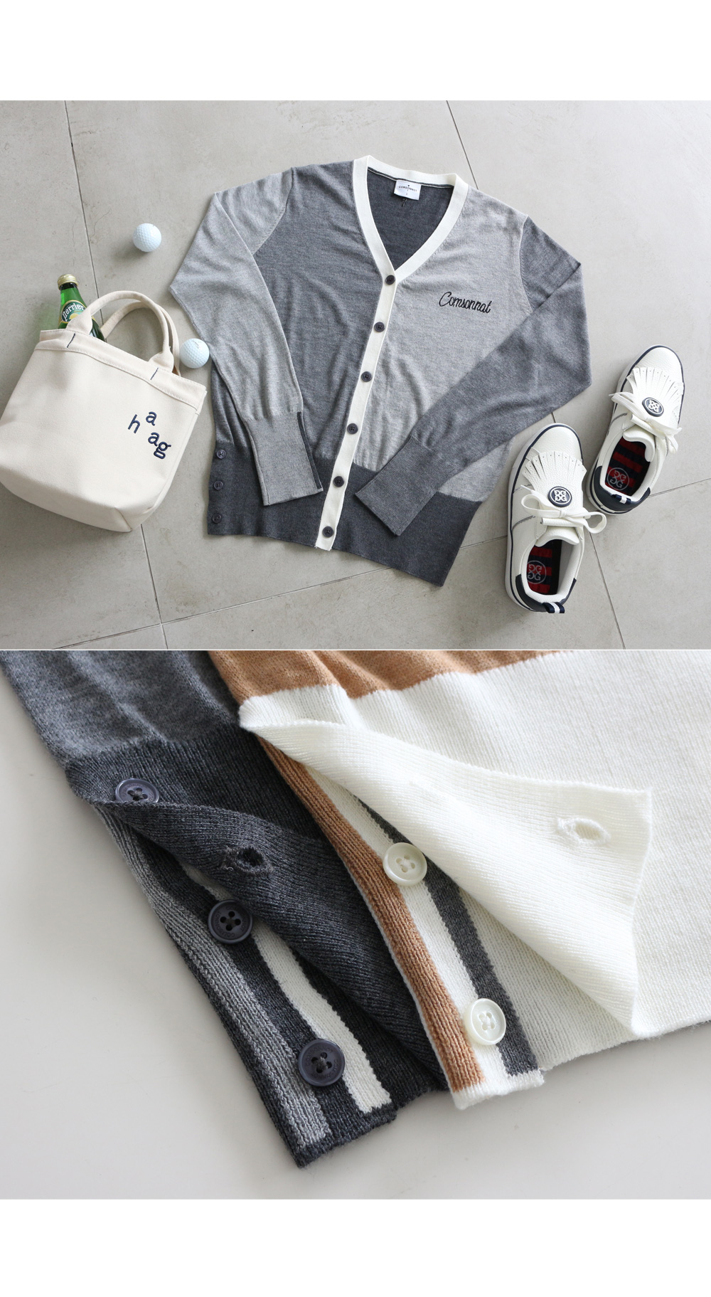 꼼소넛x피핀 [골프&일상] 슬릿 배색 가디건 #22324
