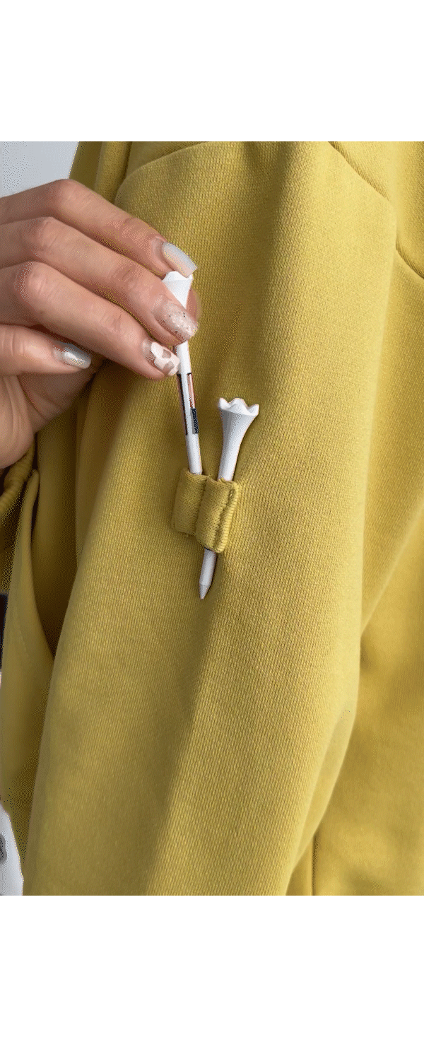 소매라인과 허리라인의 라벨에 골프티를 꽂아