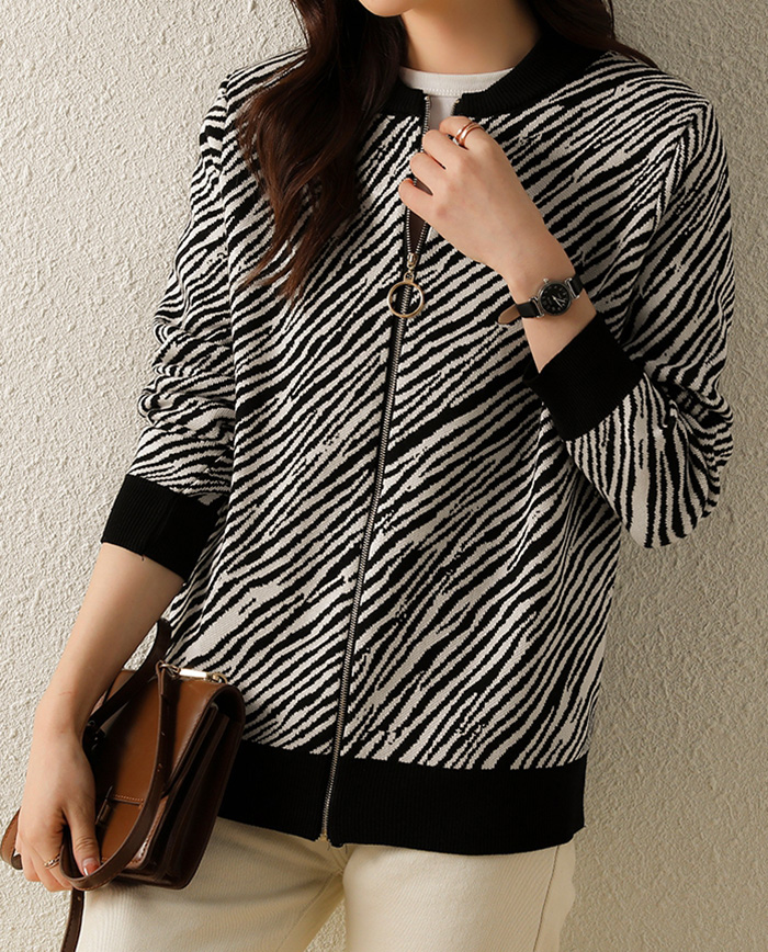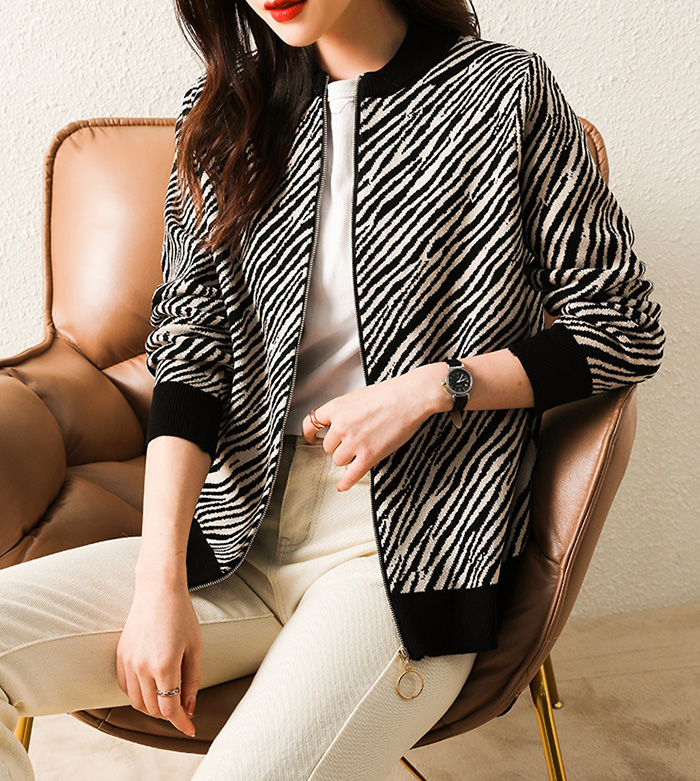 국내상품 / 맨디 지브라 니트 집업 가디건