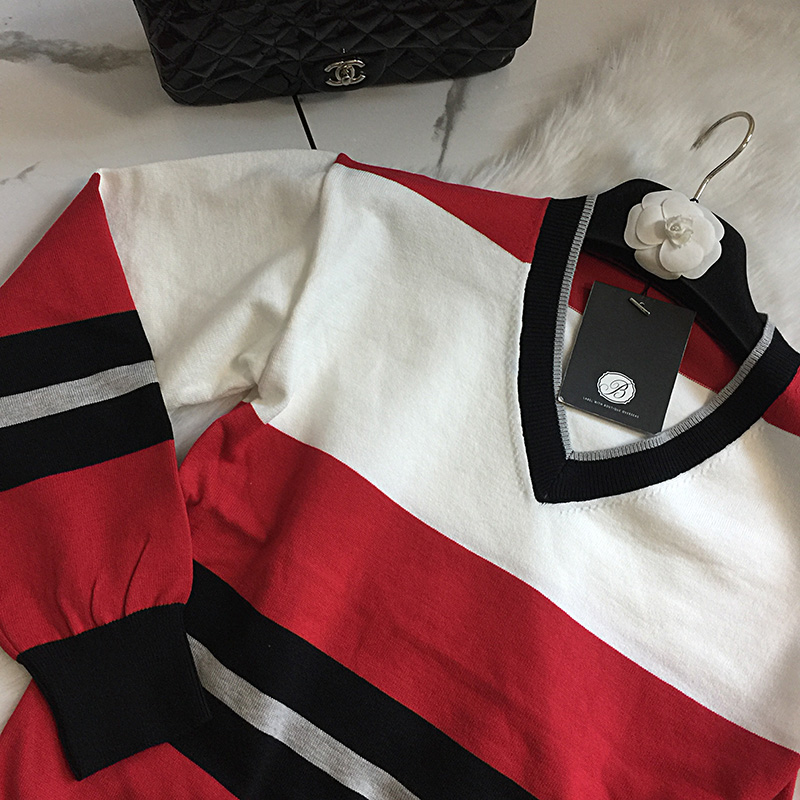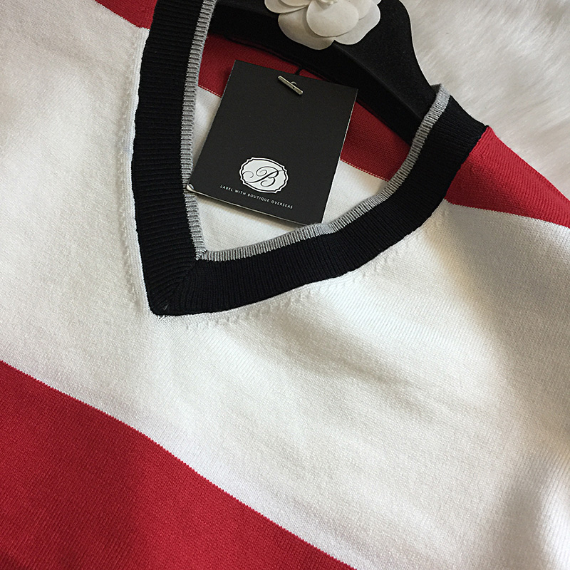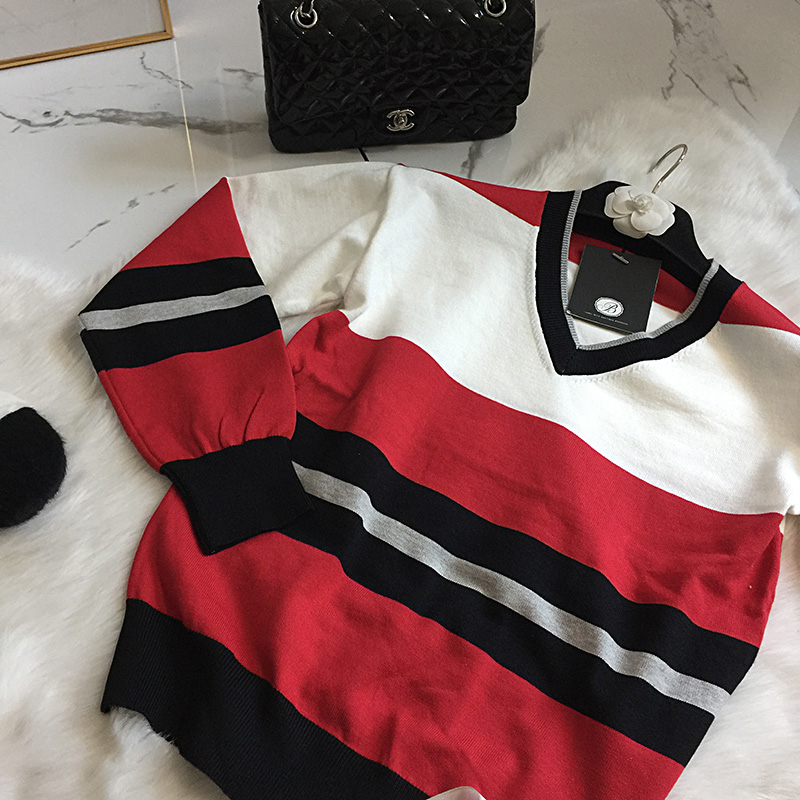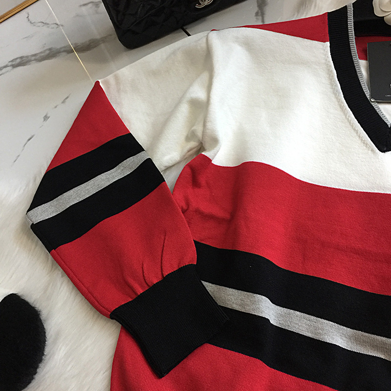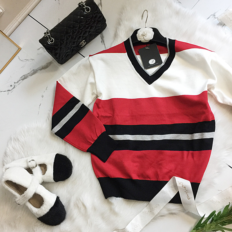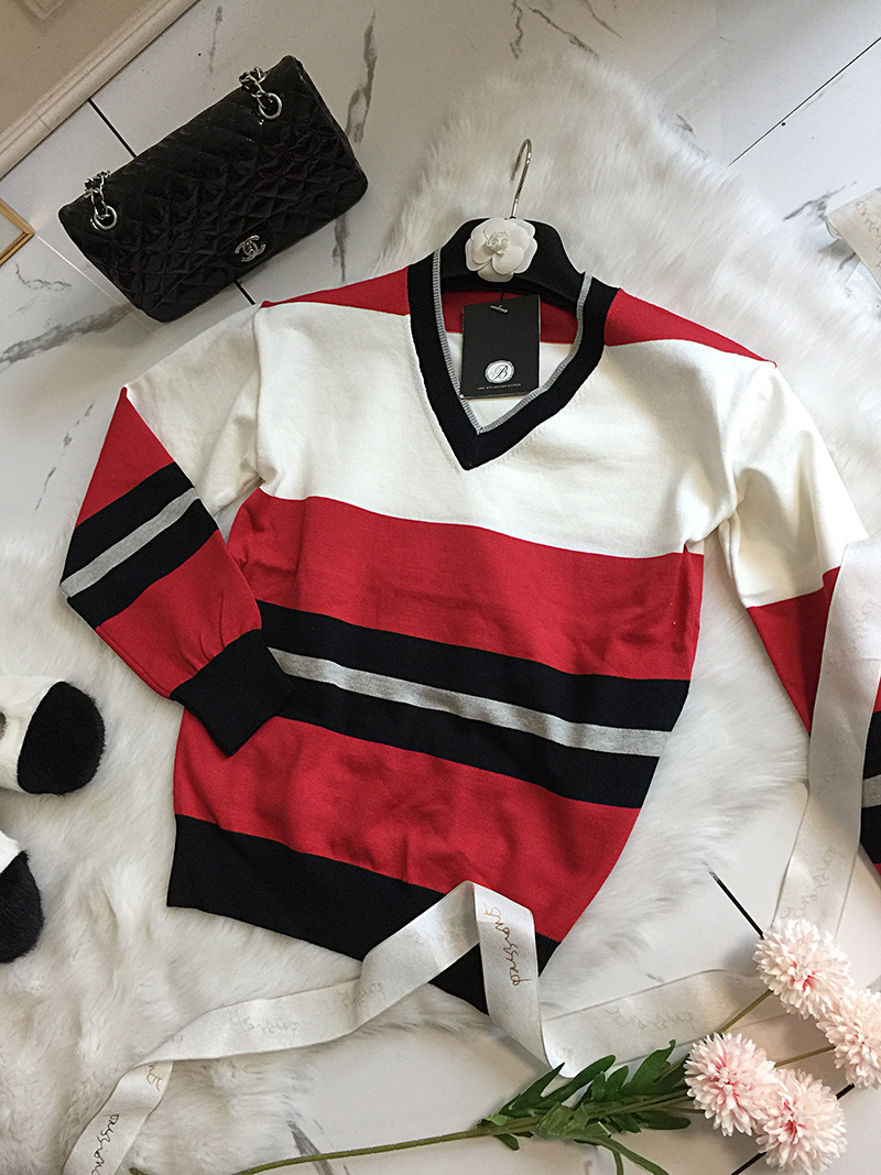 국내상품 / 데미안 레드배색 브이넥 니트