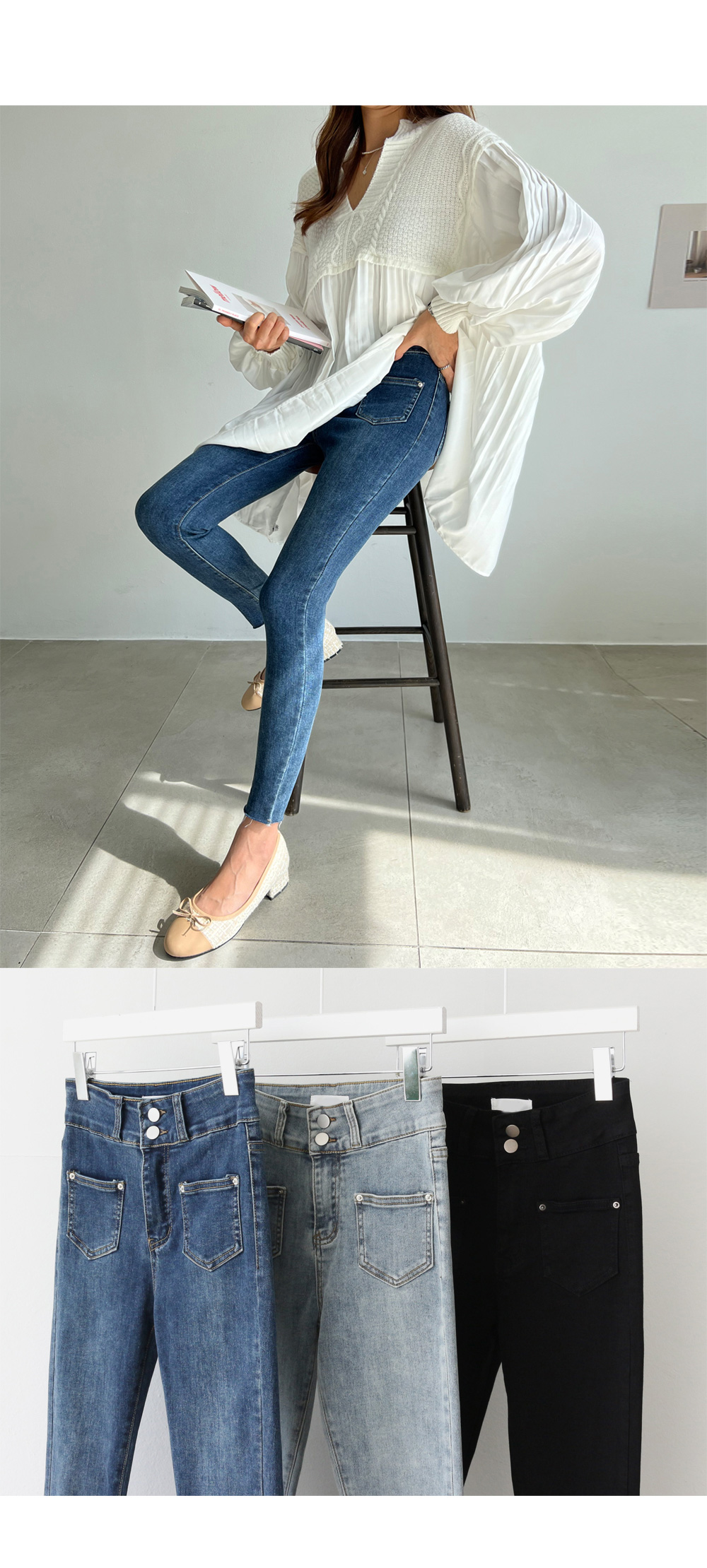 자체제작/ 투버튼 히든 밴딩 데님팬츠 #79716- 3 colors