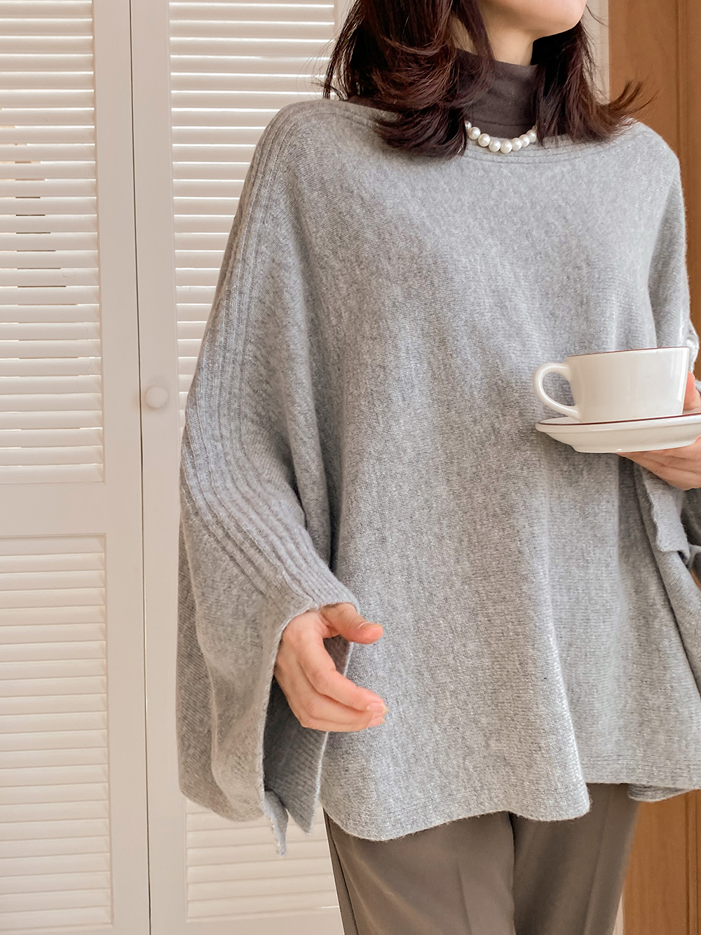 캐시미어 울 니트판초케이프-캐시미어5%, 고급스러운 매력! - 스타일티바