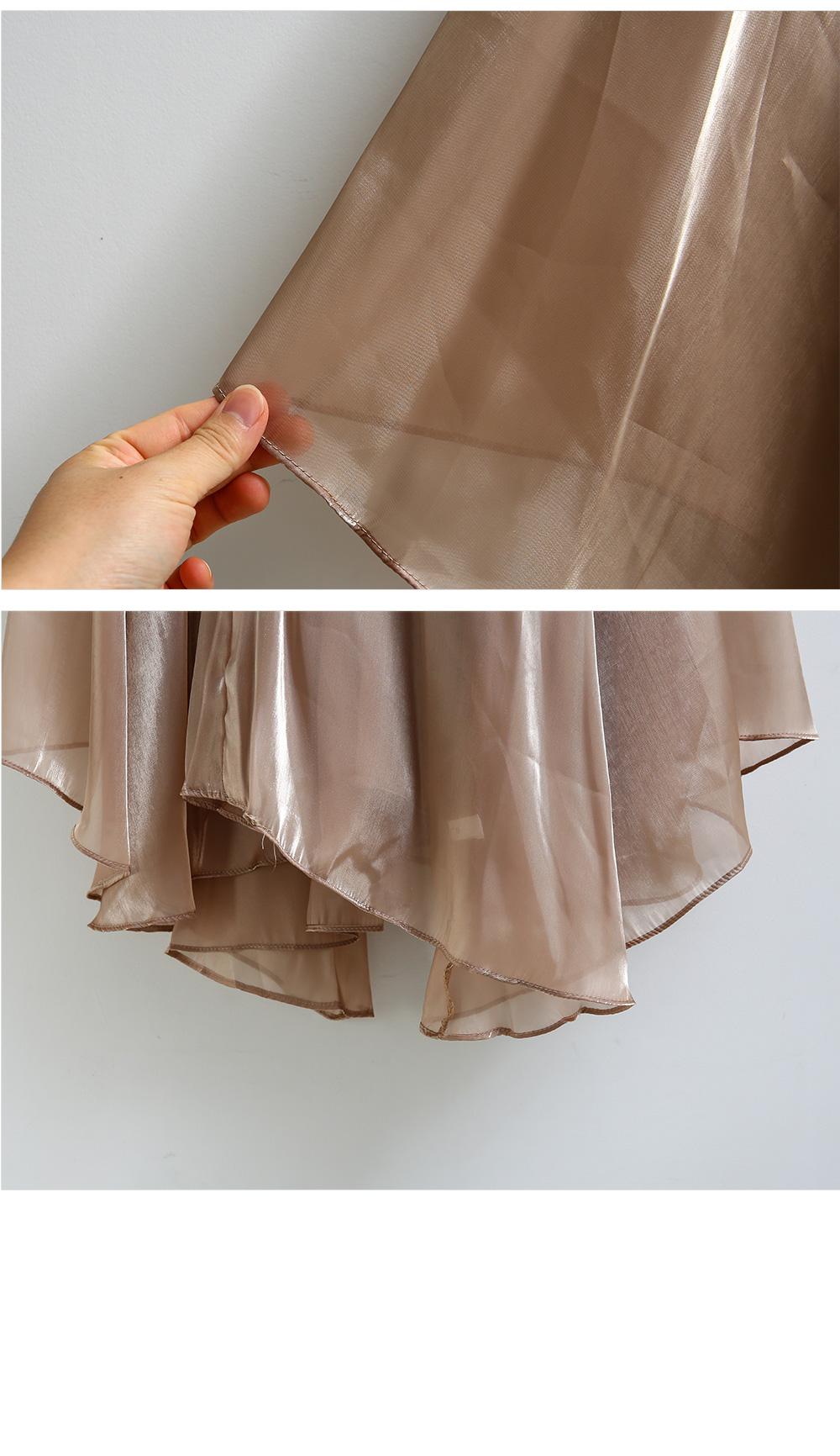 은은한 광택감이 있는 소재와 셔링 디테일이 있어
