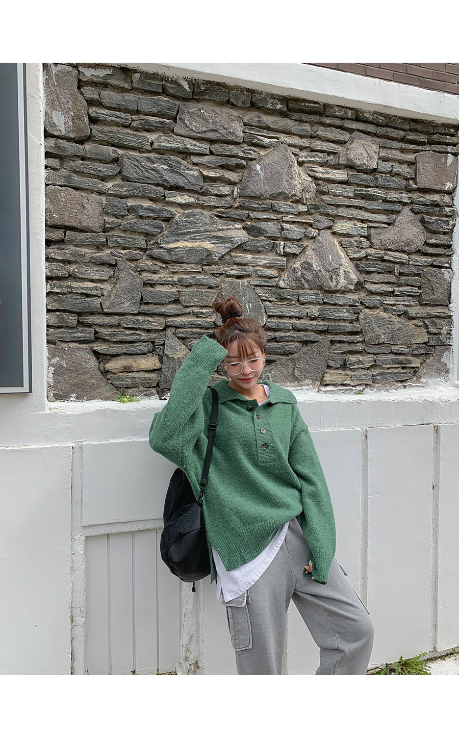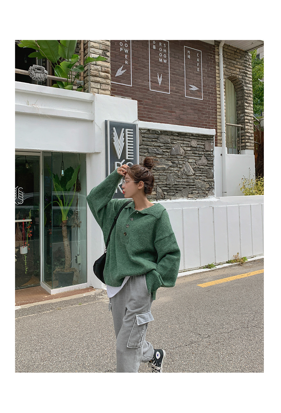 Round-eyed cat collar argyle knit