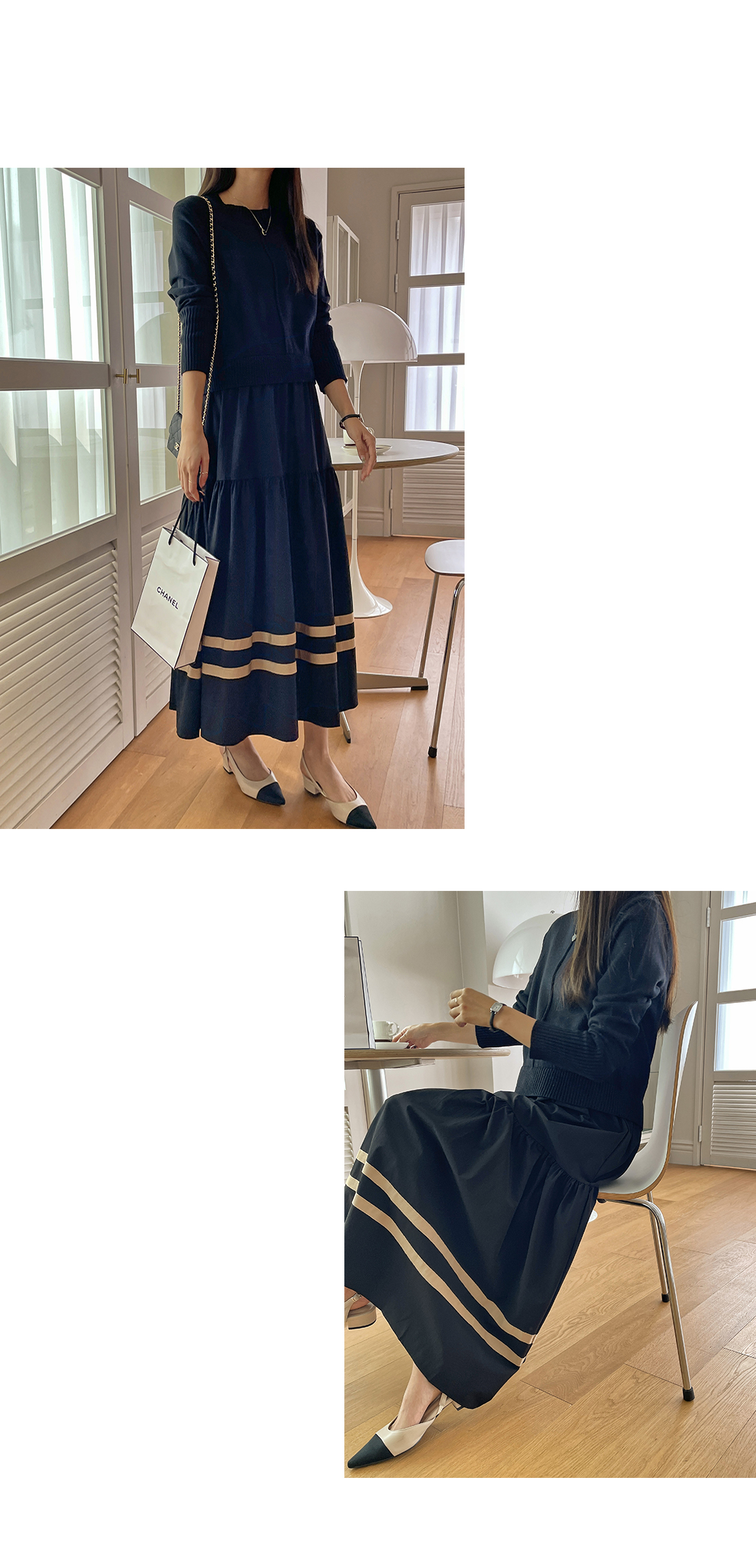 스커트에 배색 라인이 들어가