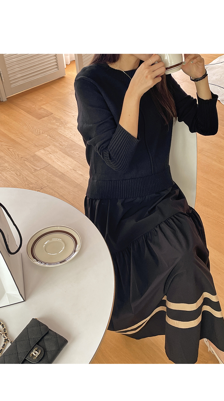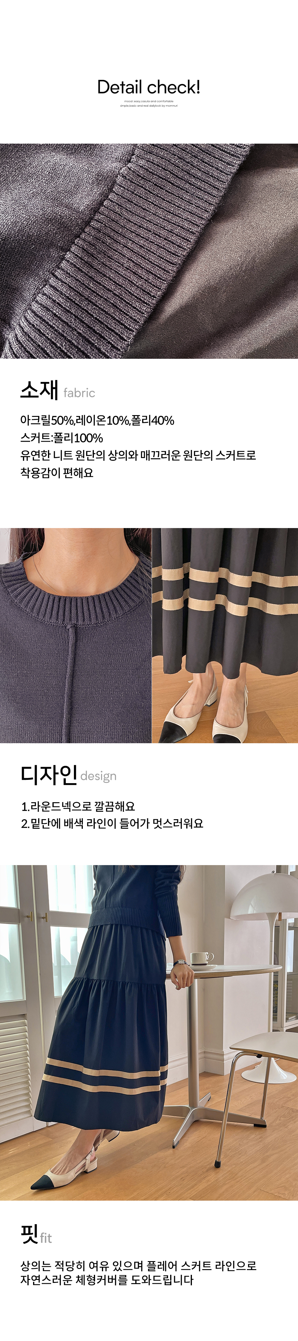 상의는 라운드 니트,
