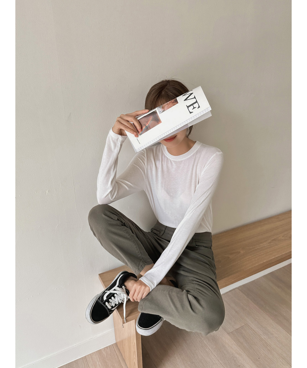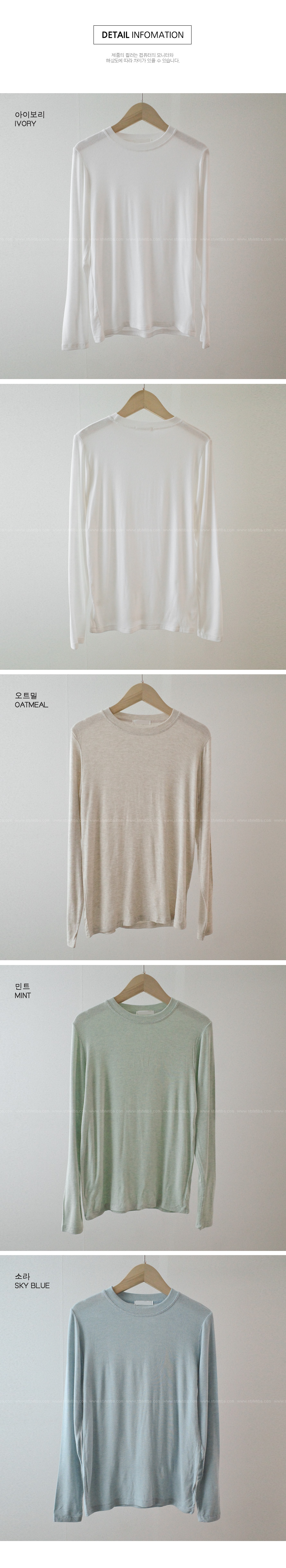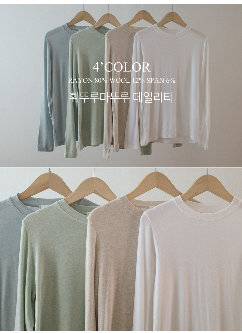 포트 울 베이직티셔츠-4color,가볍고 포근한 울혼방-살짝 시스루한 여리여리 무드-바디라인을 잡아주는 슬림핏 - 스타일티바