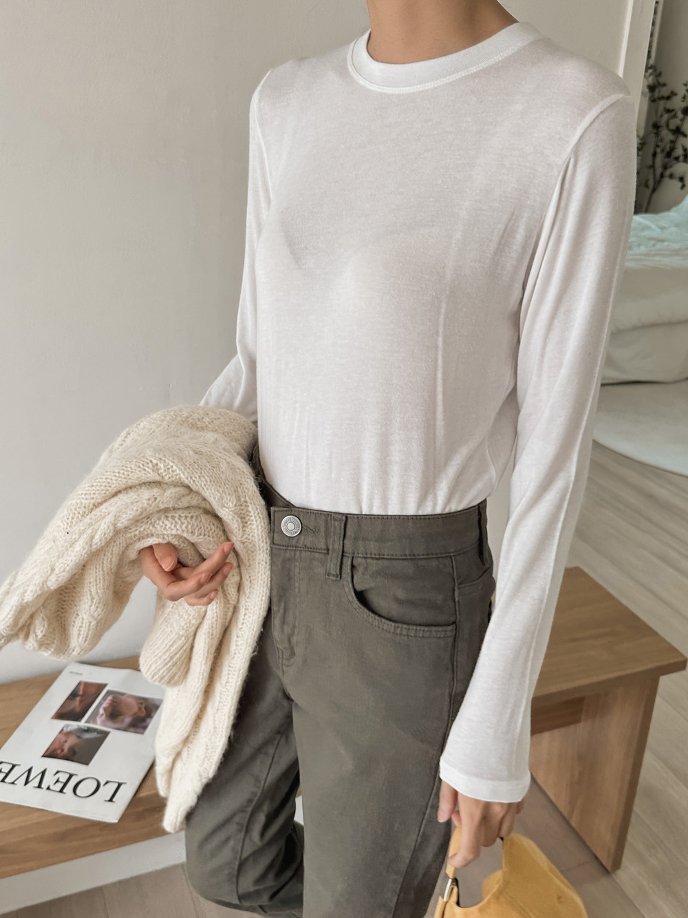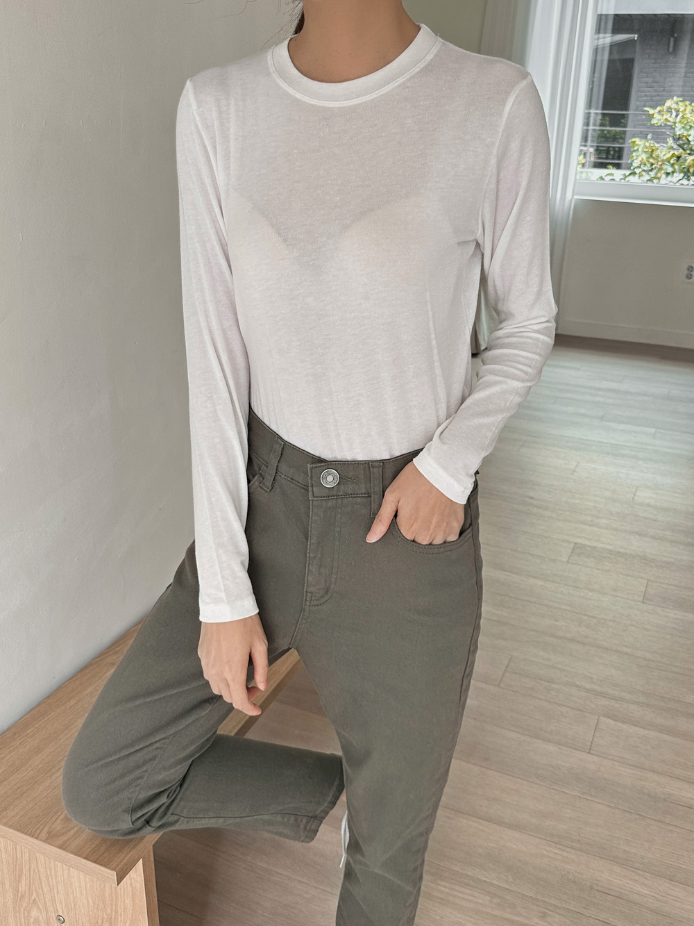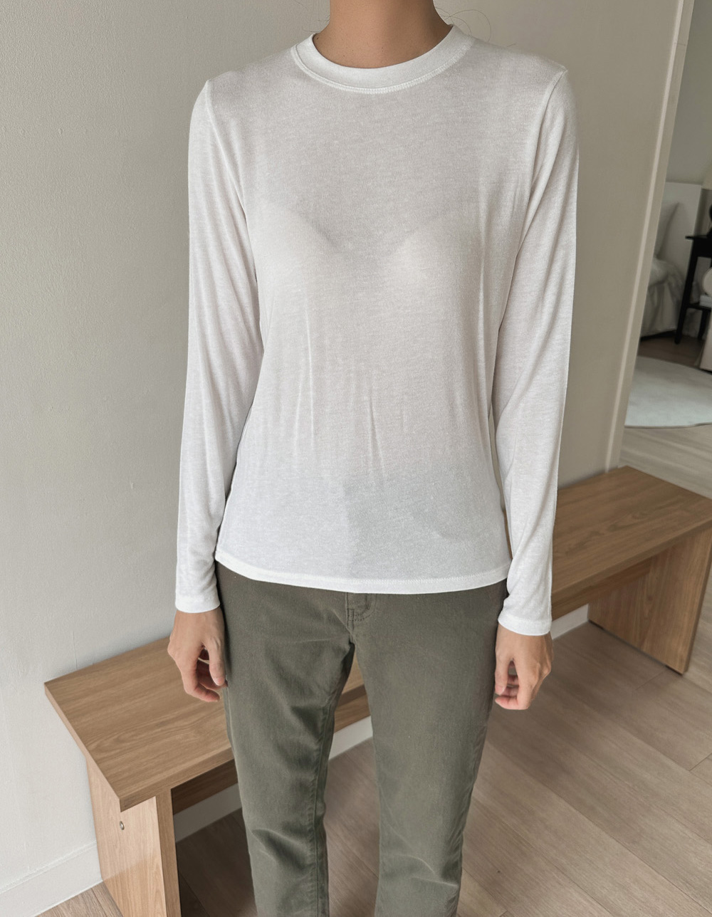 포트 울 베이직티셔츠-4color,가볍고 포근한 울혼방-살짝 시스루한 여리여리 무드-바디라인을 잡아주는 슬림핏 - 스타일티바