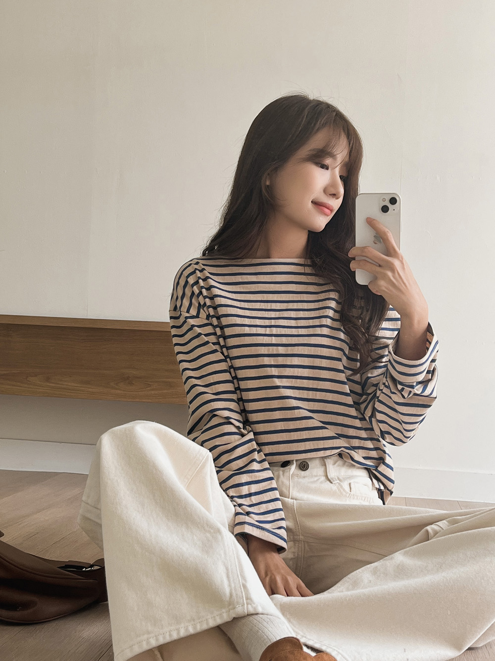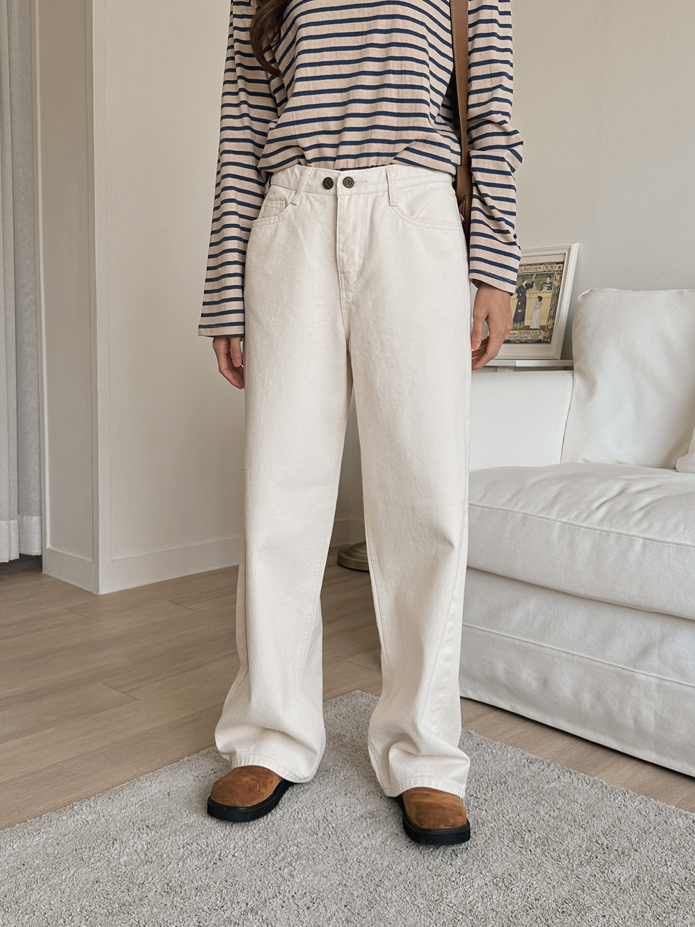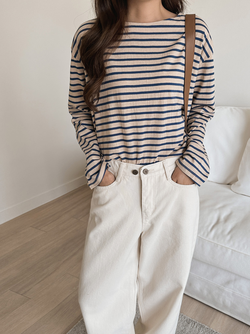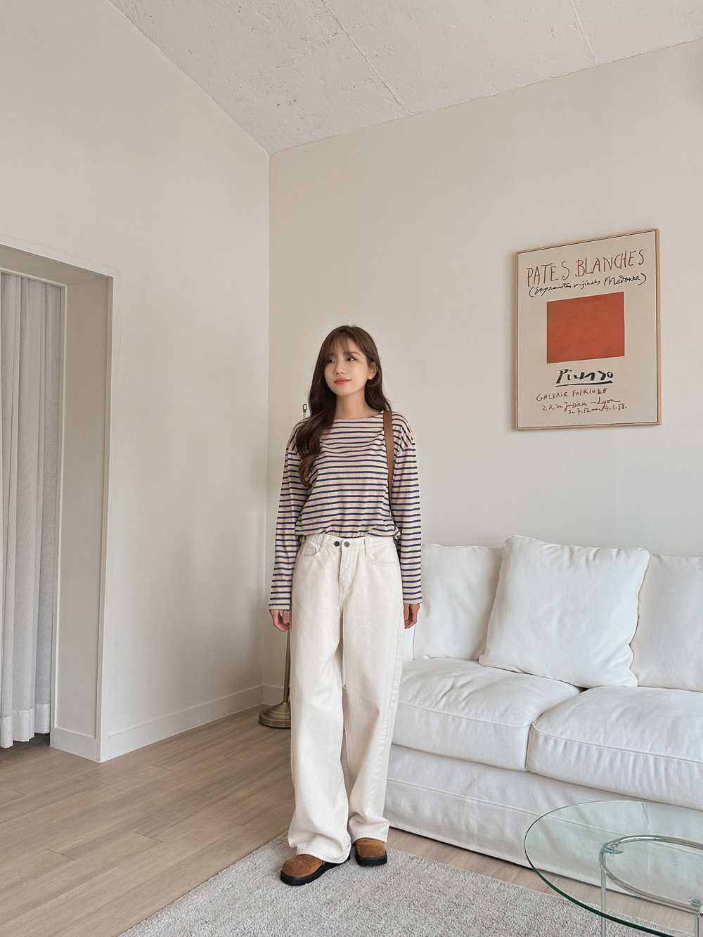 드롭된 숄더라인과 일자로 툭! 떨어지는