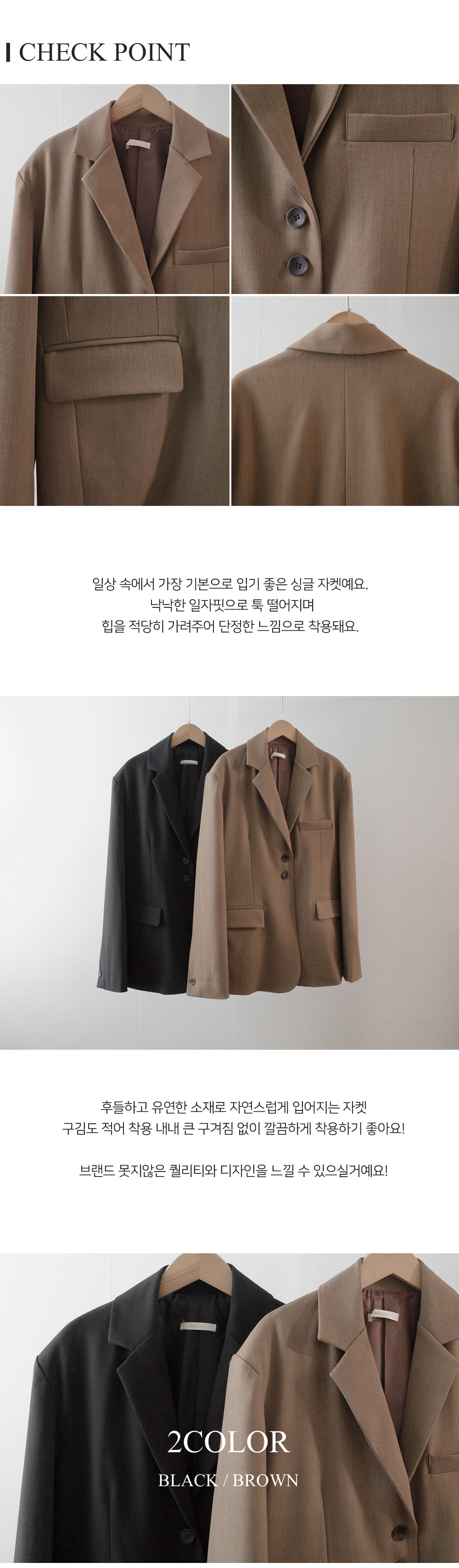랑드 오버핏 싱글자켓-2color,깔끔,심플한 멋-가볍게 여기저기 입기 최고 - 스타일티바