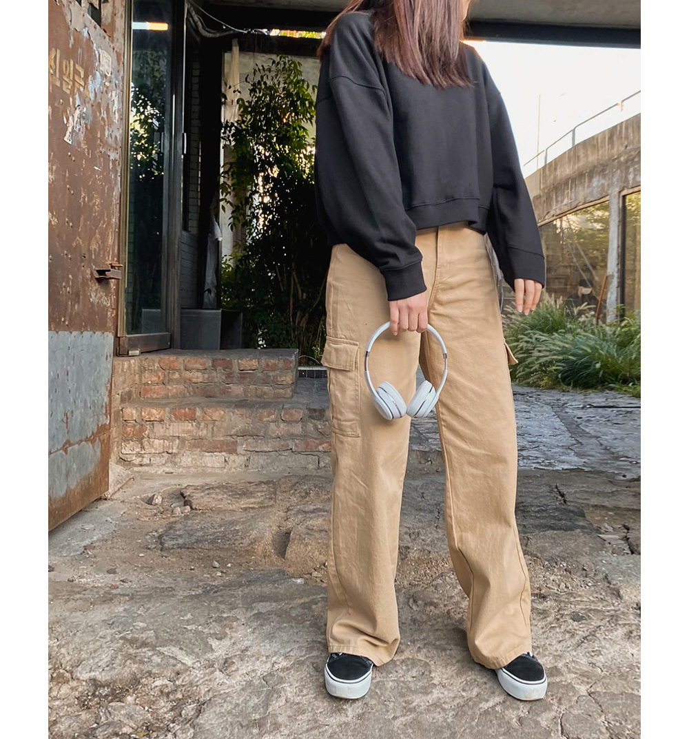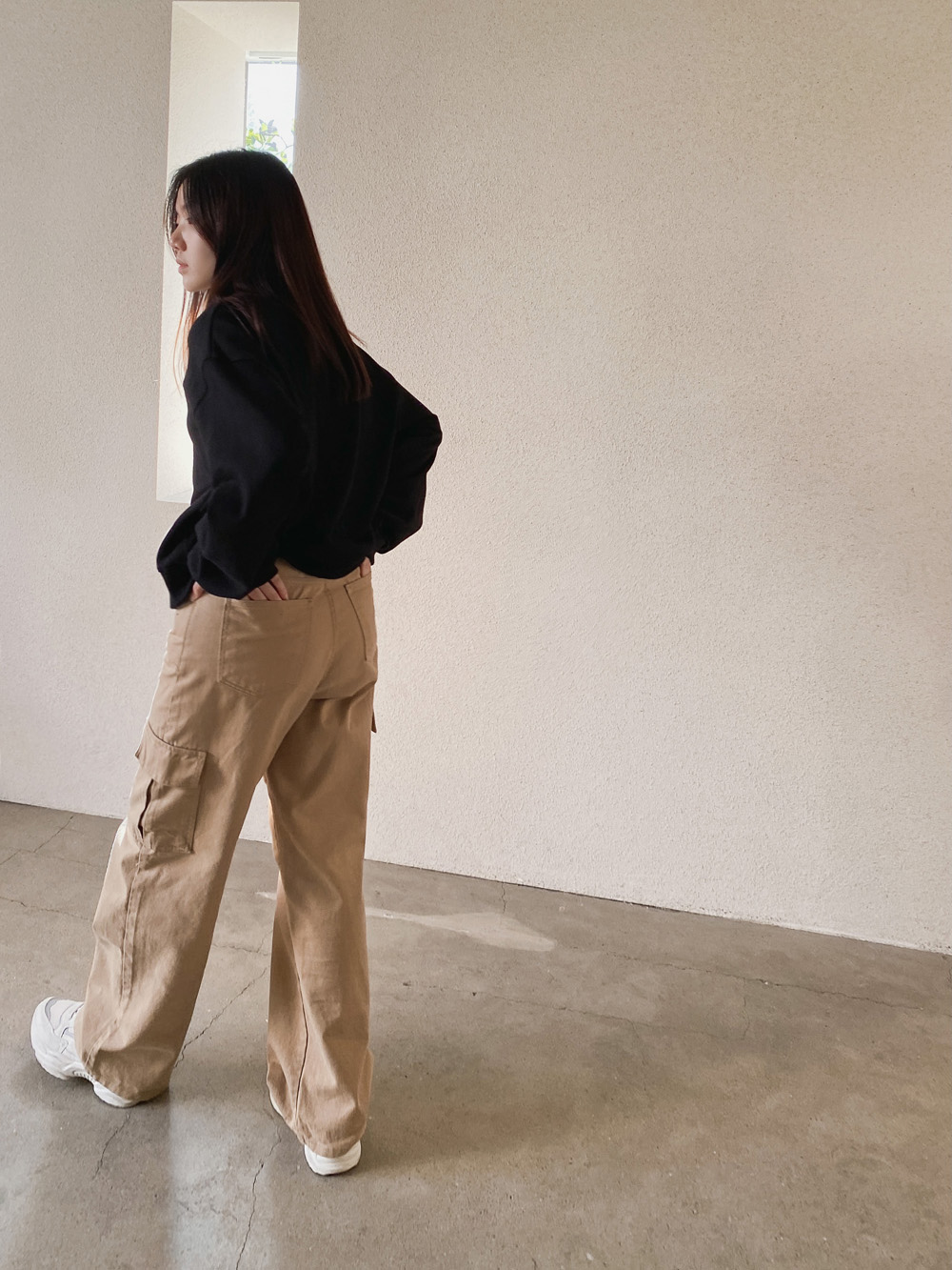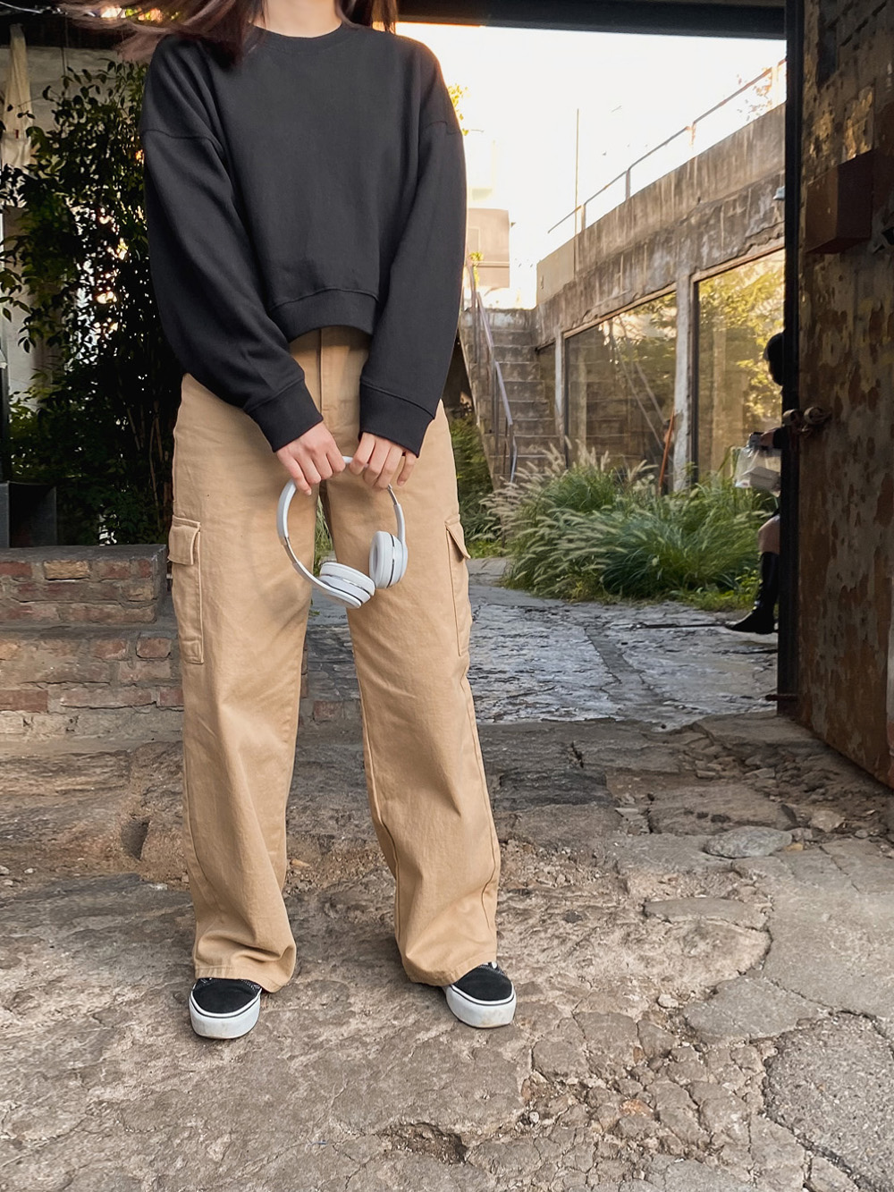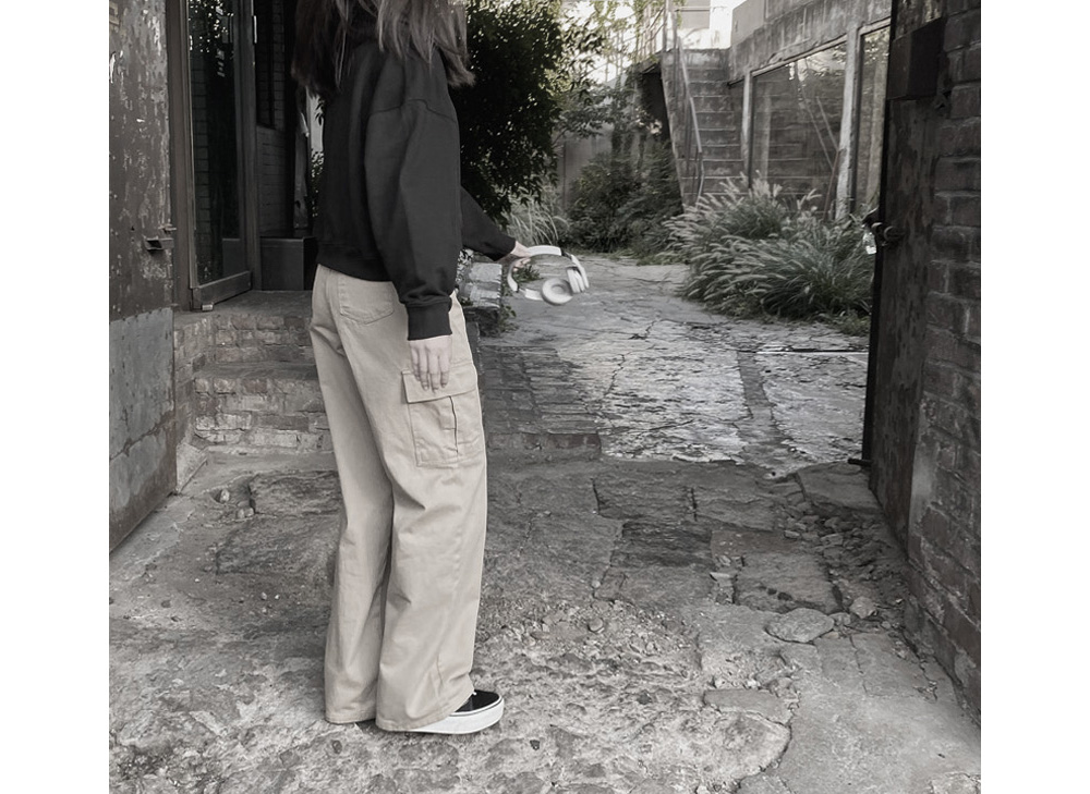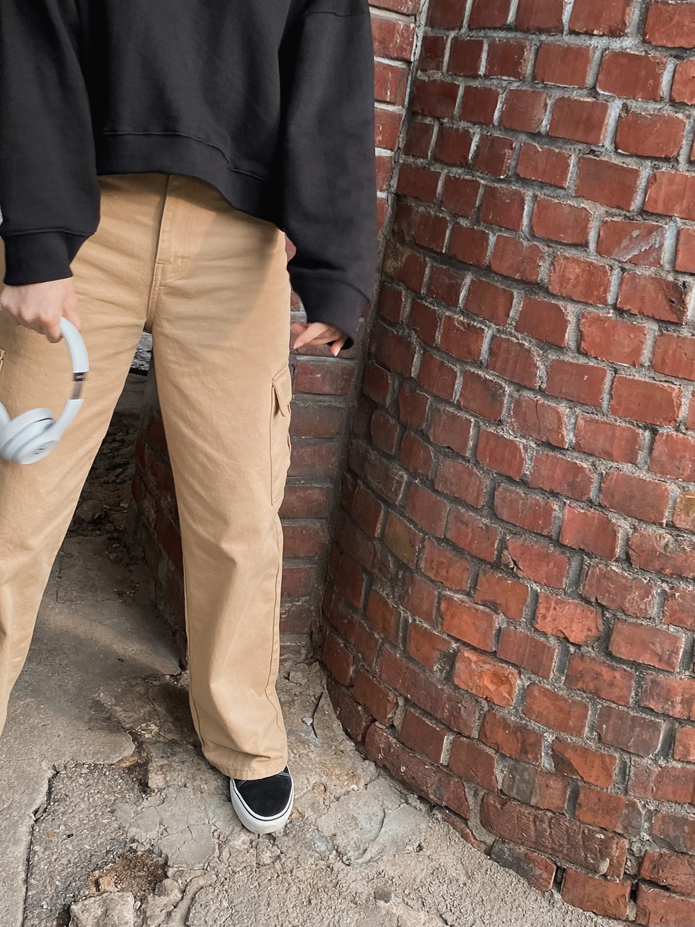 카고 팬츠답게 사이드에 큼지막한 스퀘어 쉐입의