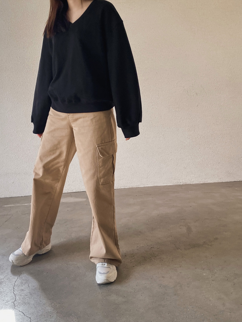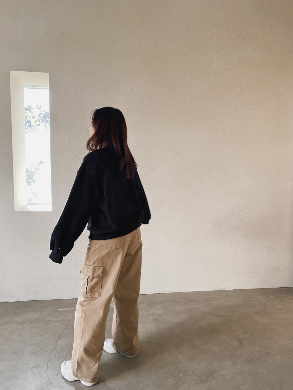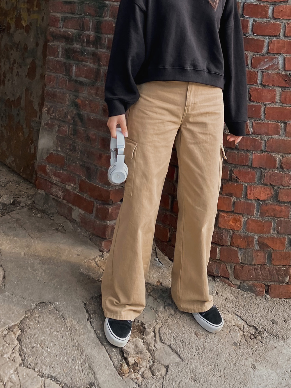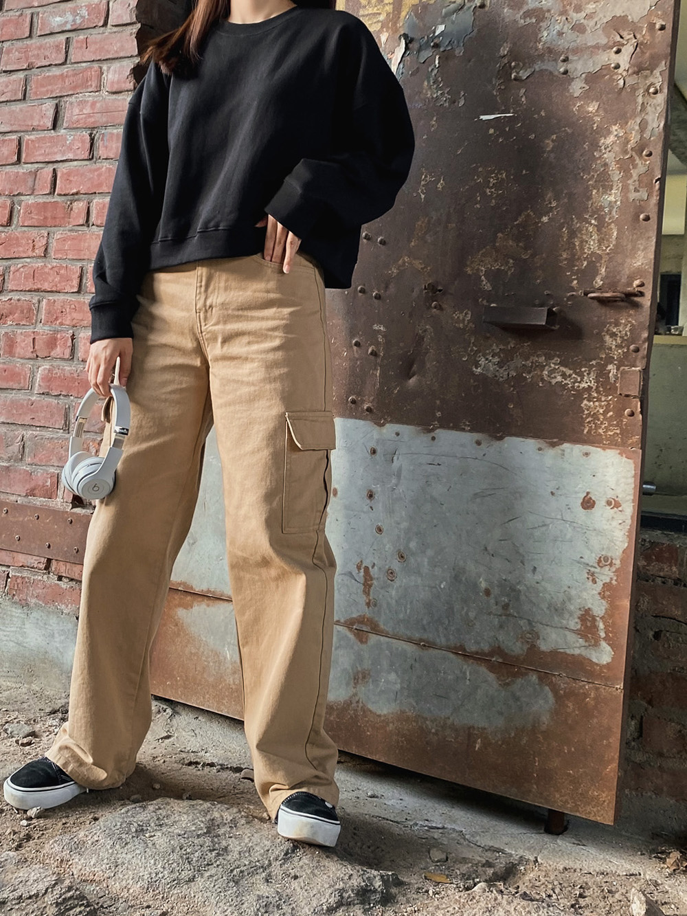 카고 팬츠답게 사이드에 큼지막한 스퀘어 쉐입의