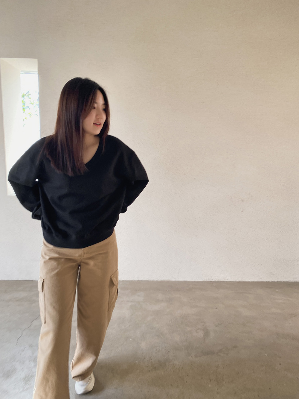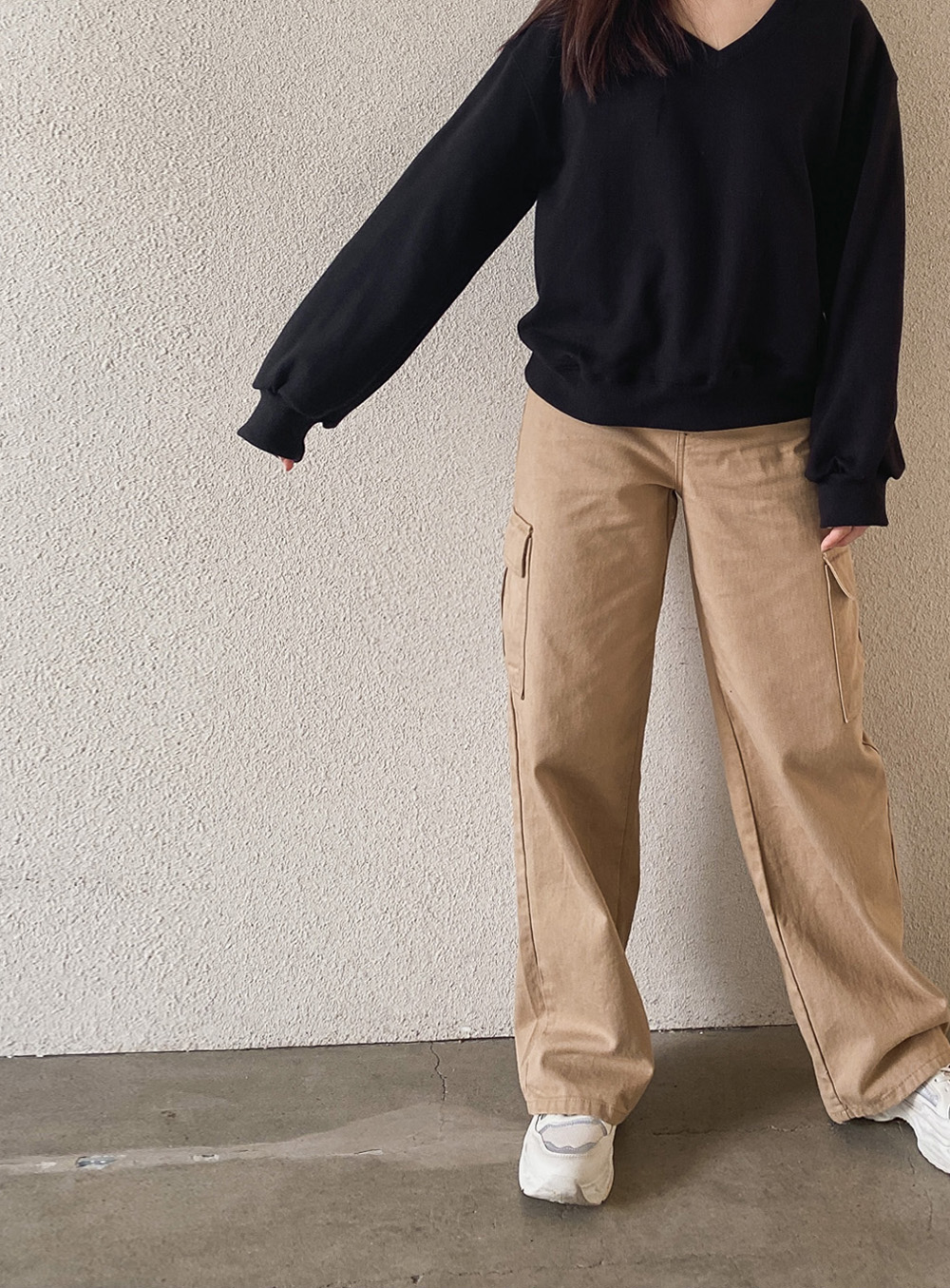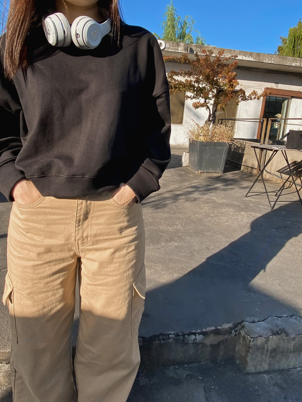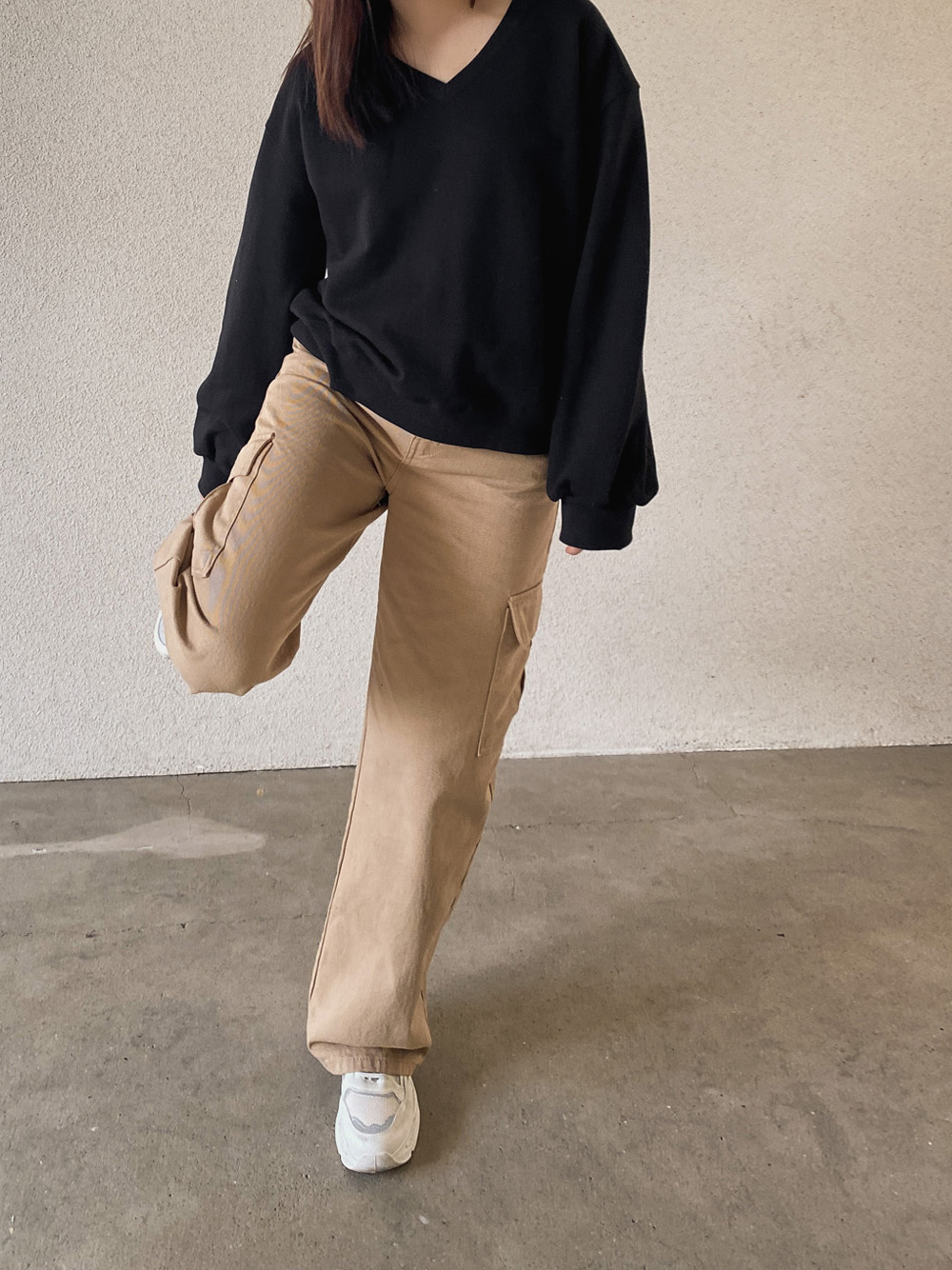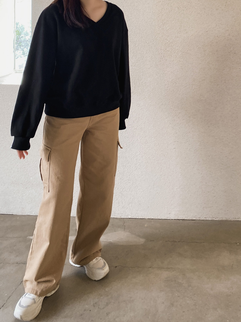 카고 팬츠답게 사이드에 큼지막한 스퀘어 쉐입의