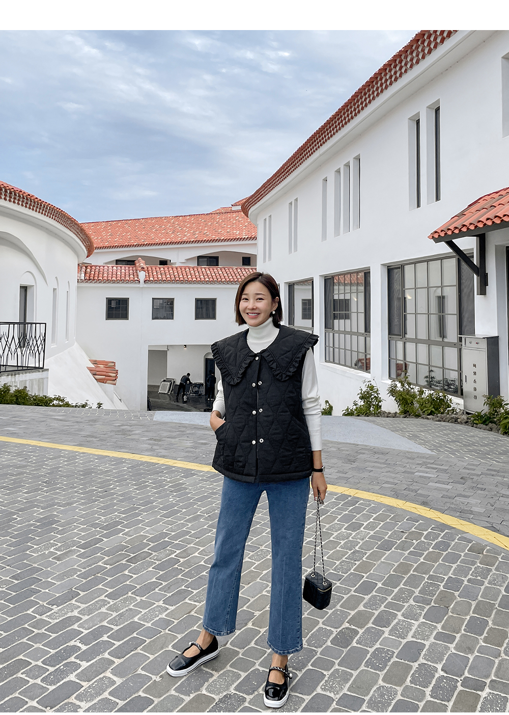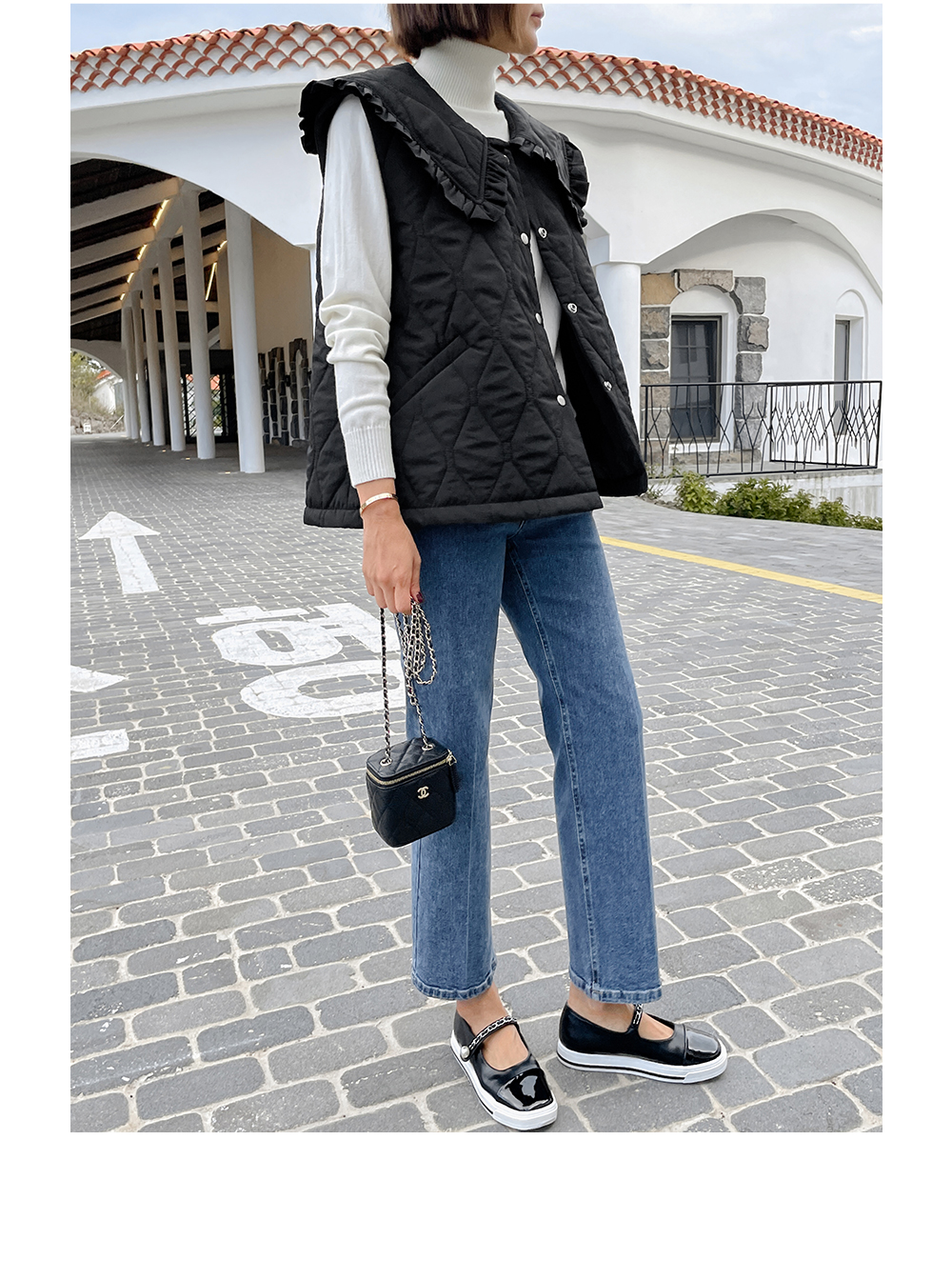 러블리하게 포인트 주기 좋은 퀼팅 조끼에요!