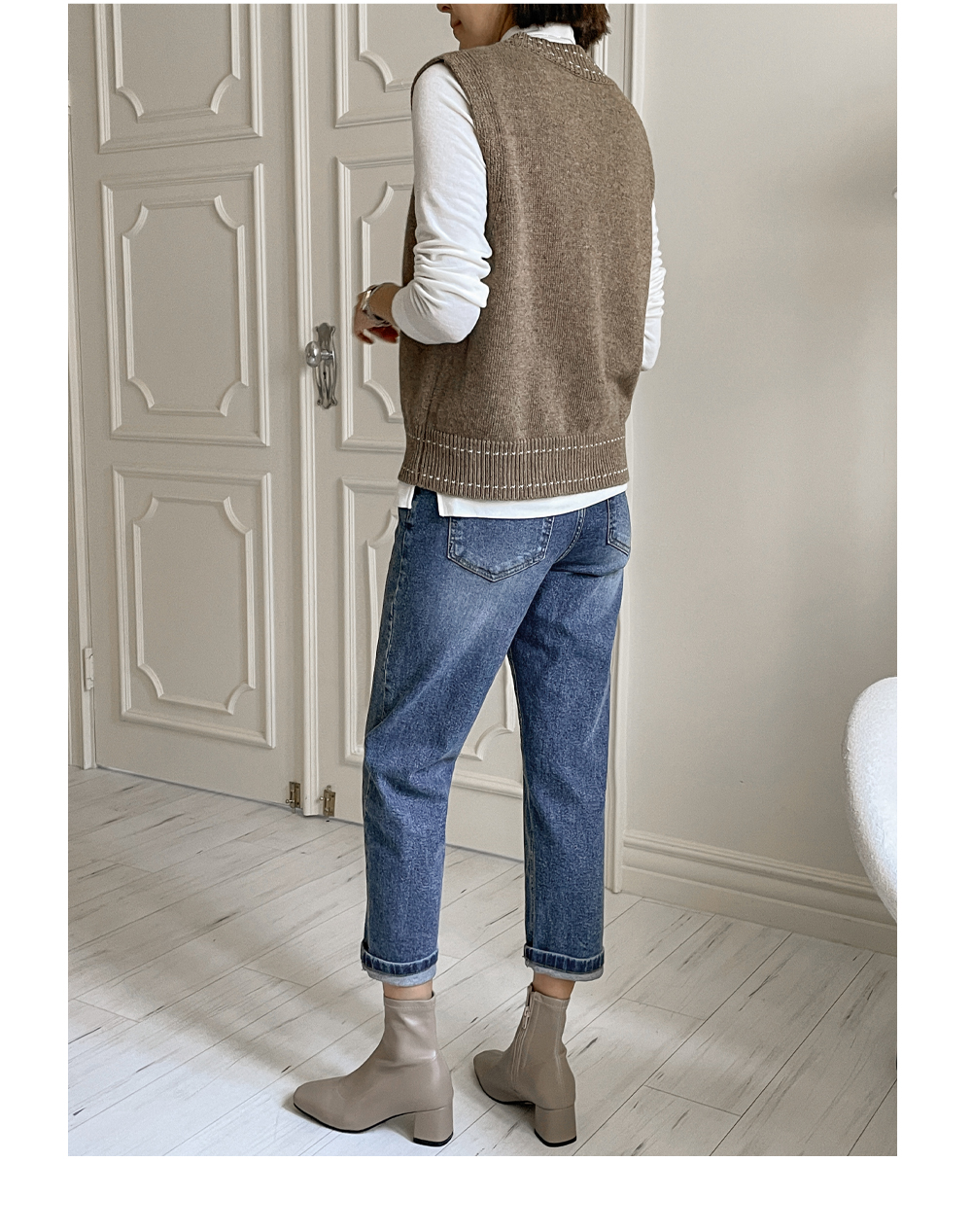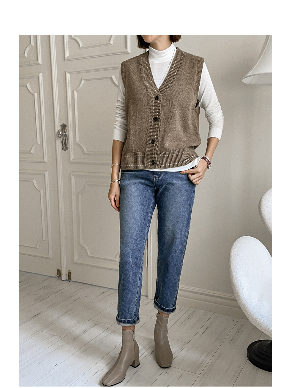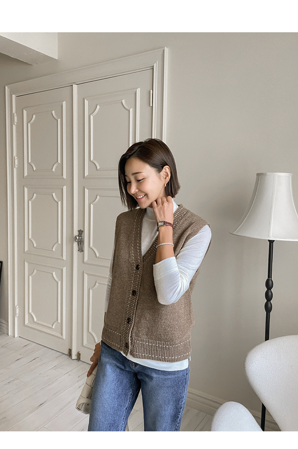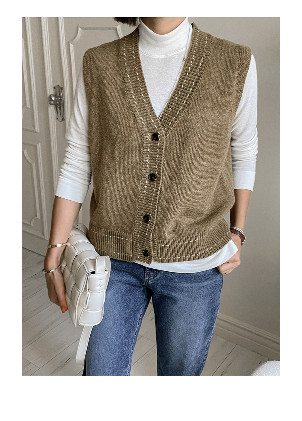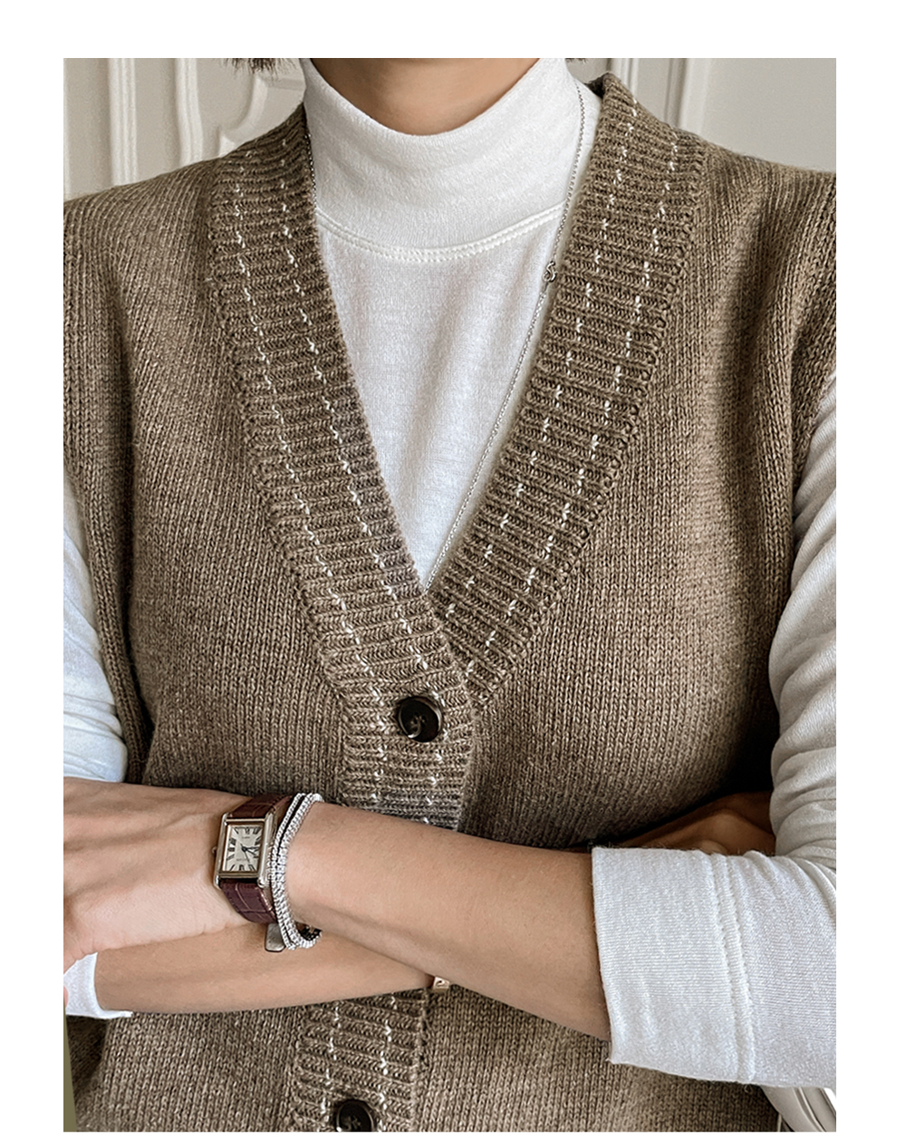 깔끔하게 떨어지는 V넥 디자인 아래