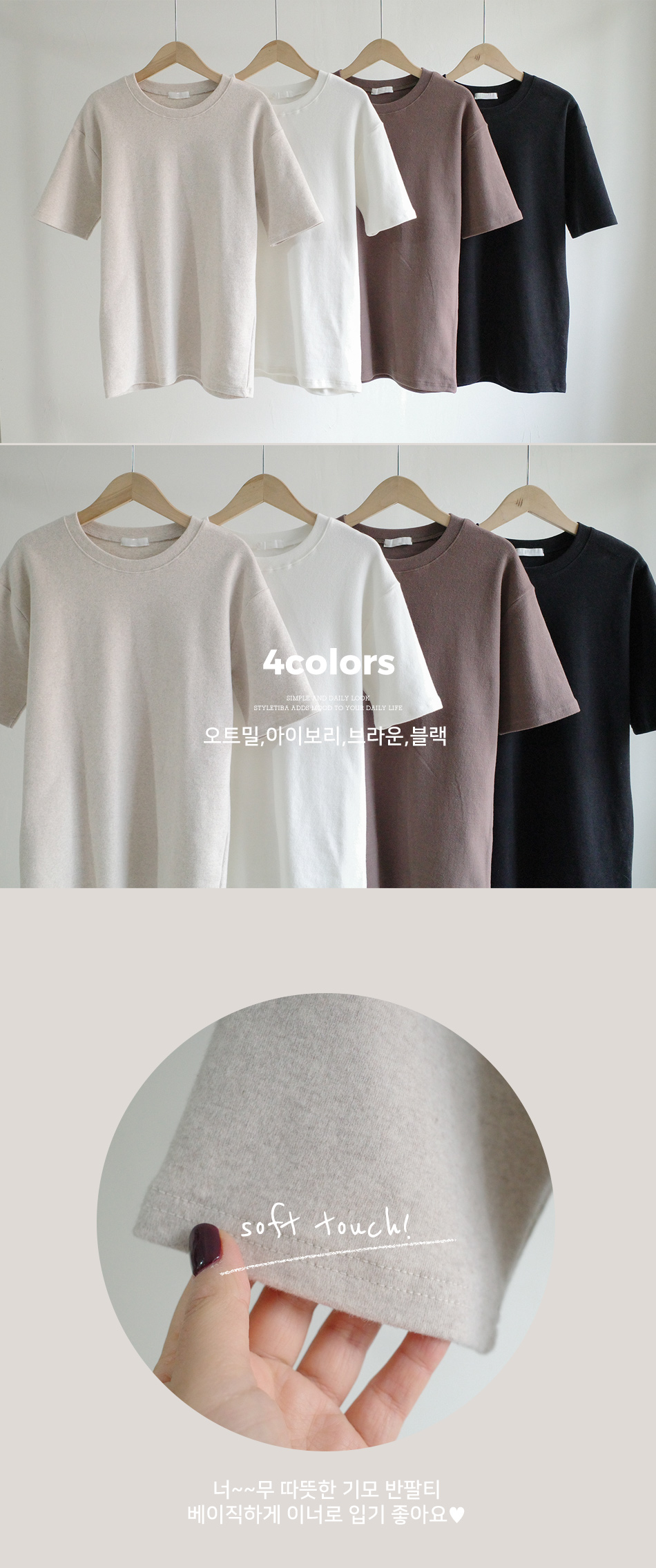 미우 기모 반팔티셔츠-4color, 겨울철 이너템으로 딱!-따뜻한 기모 반팔티 - 스타일티바