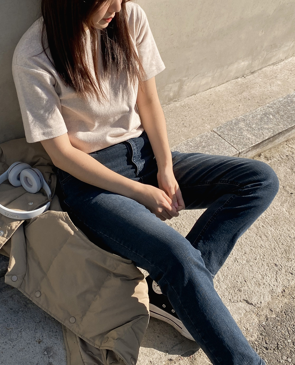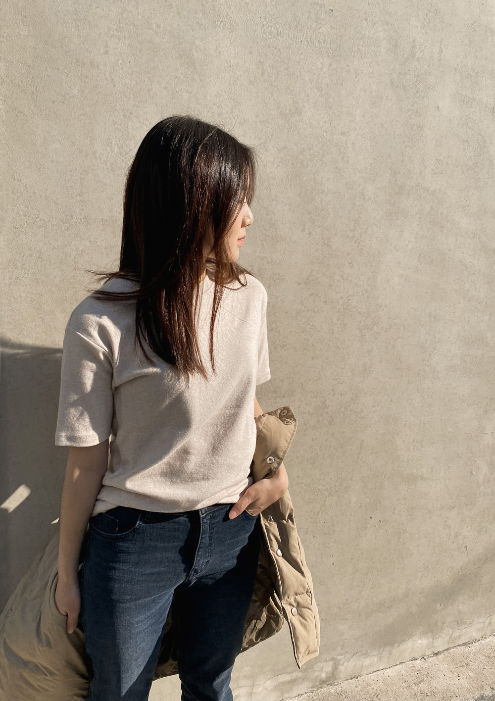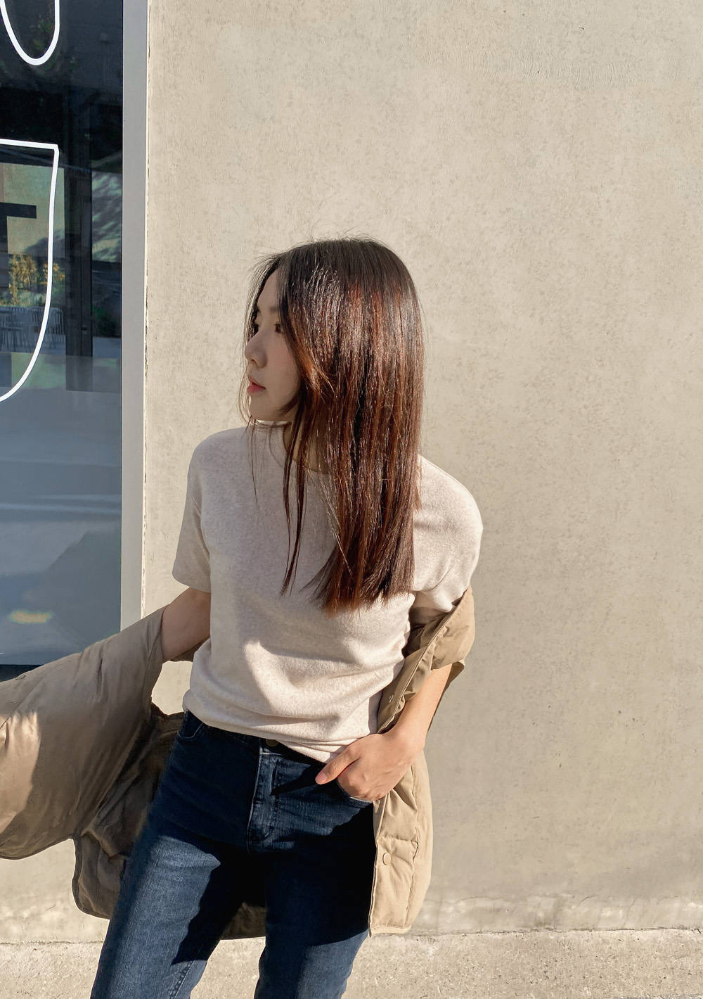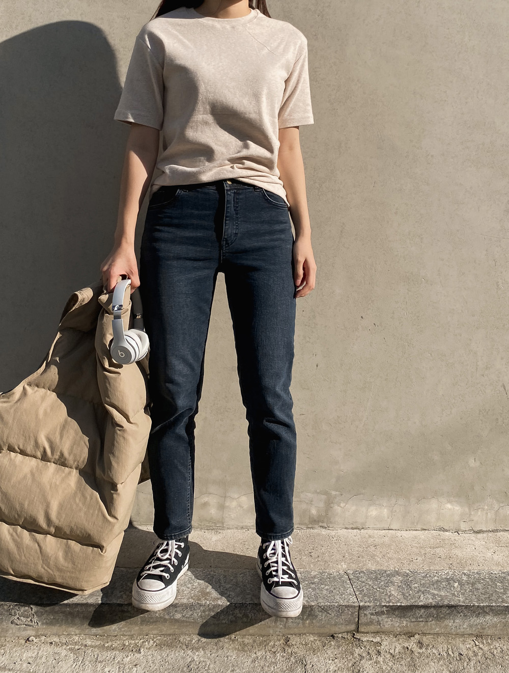 적당한 기장감으로 밑단을 하의에 넣어입어도
