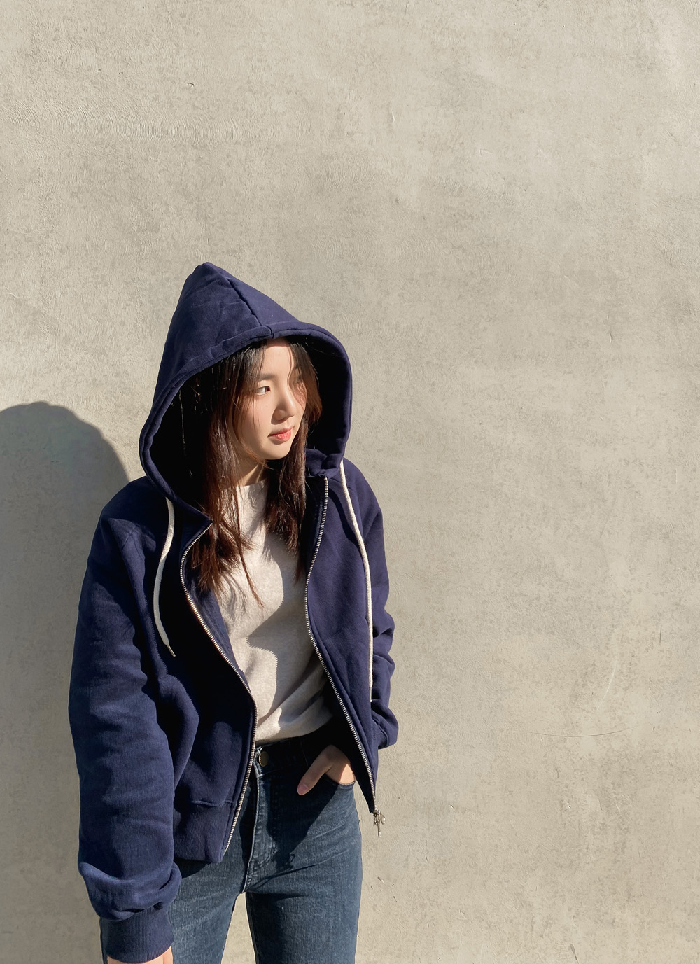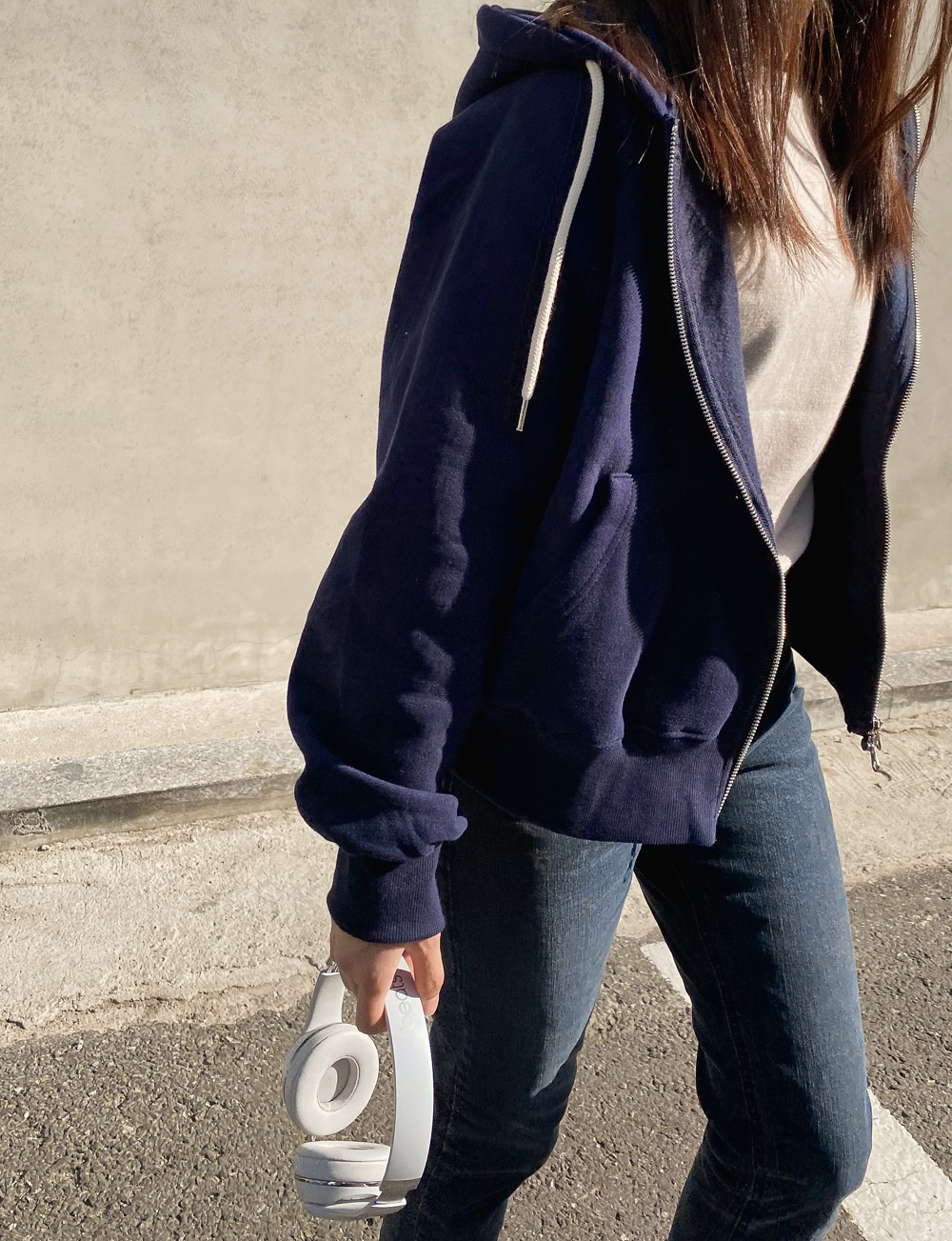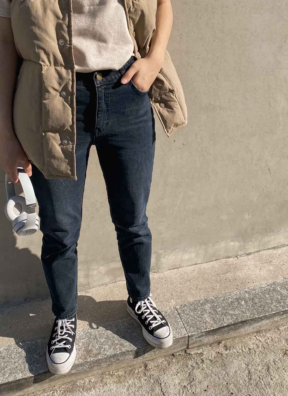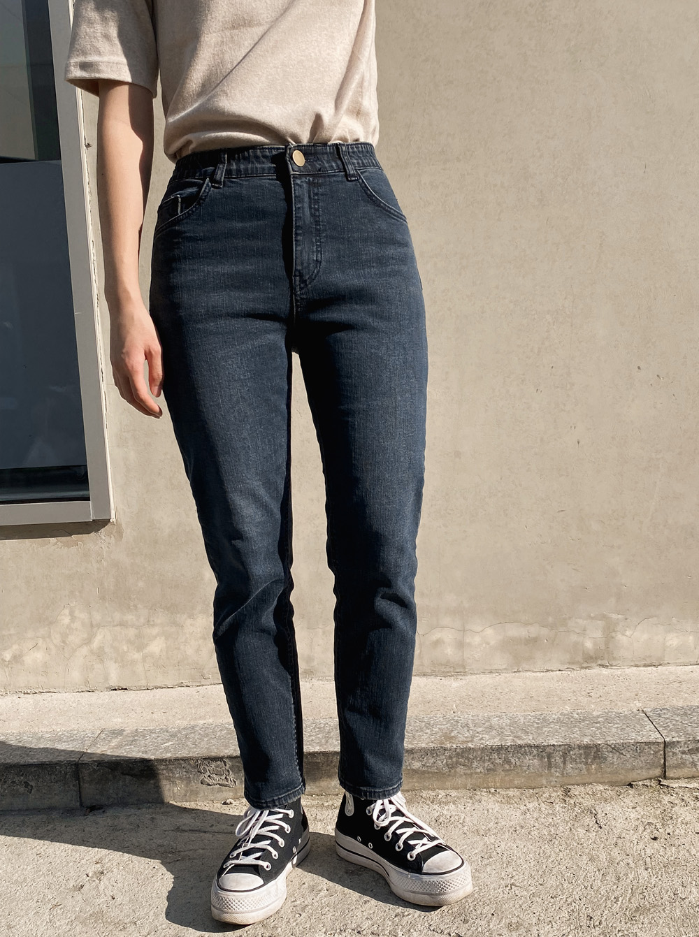 적당한 기장감으로 밑단을 하의에 넣어입어도