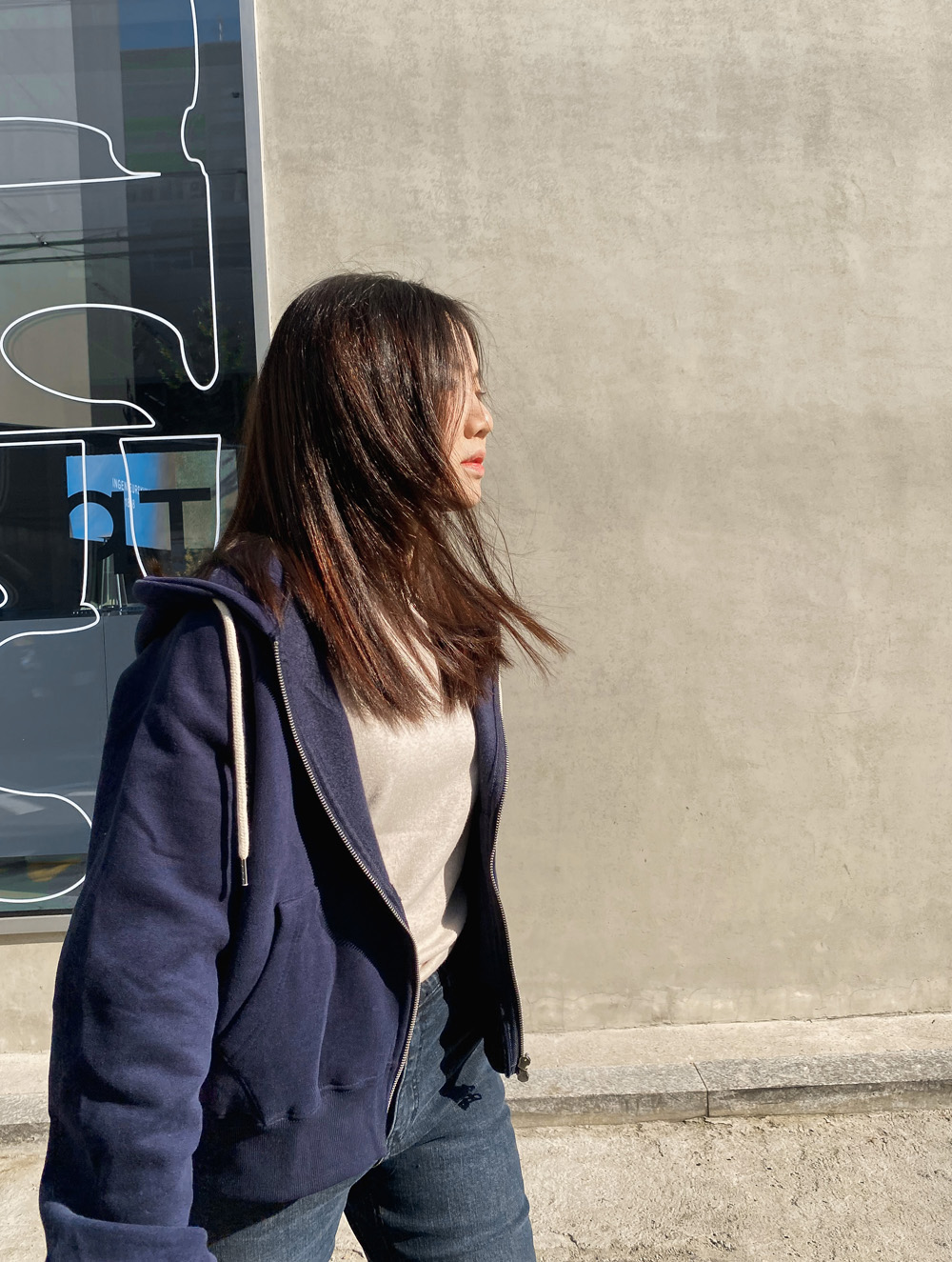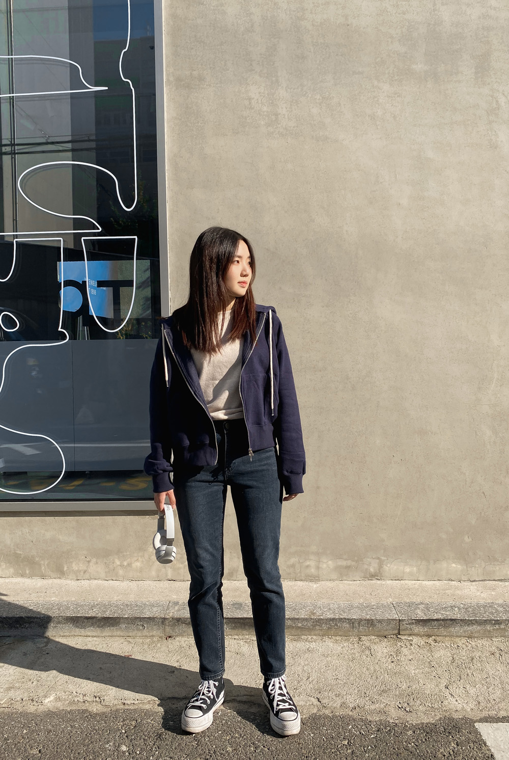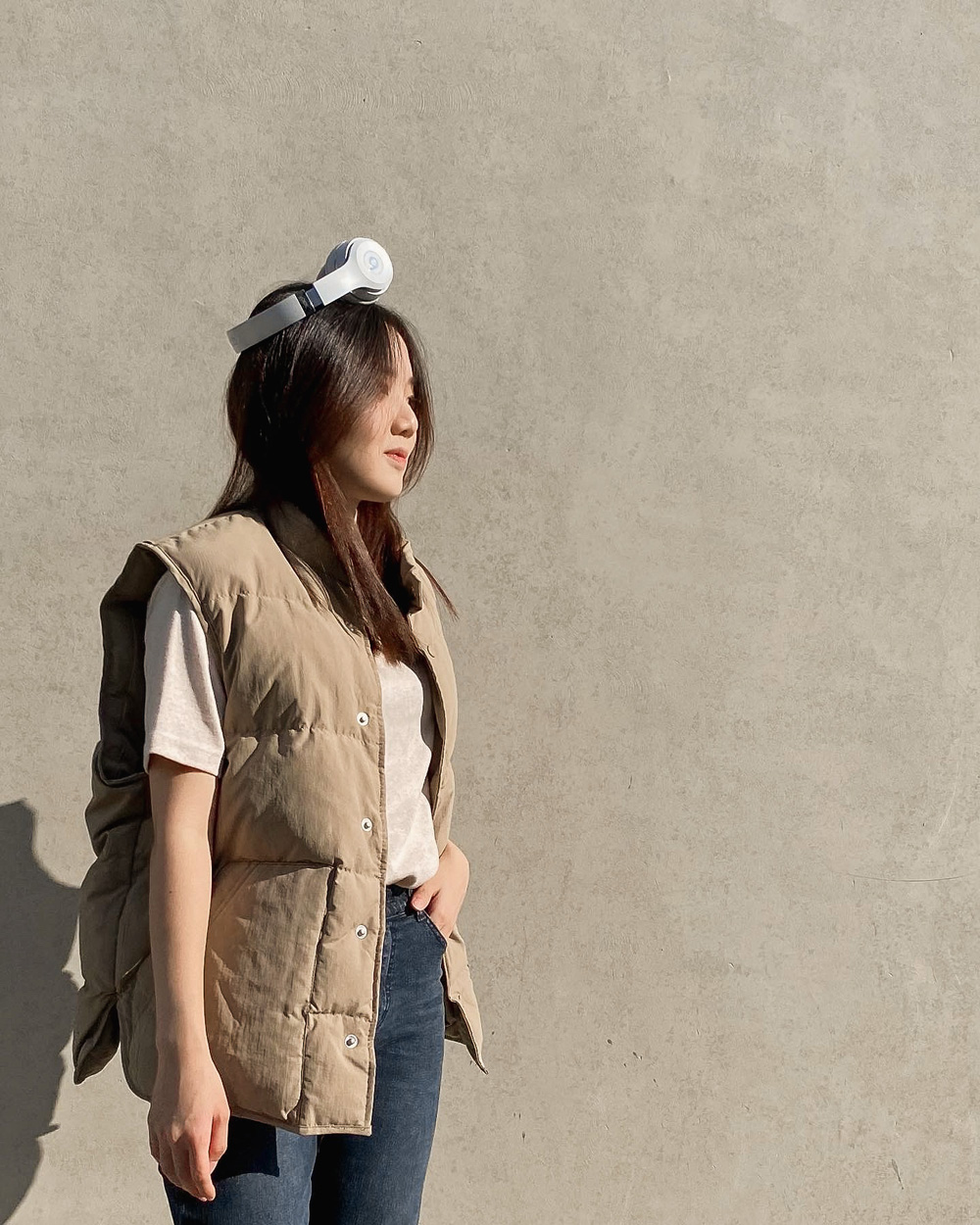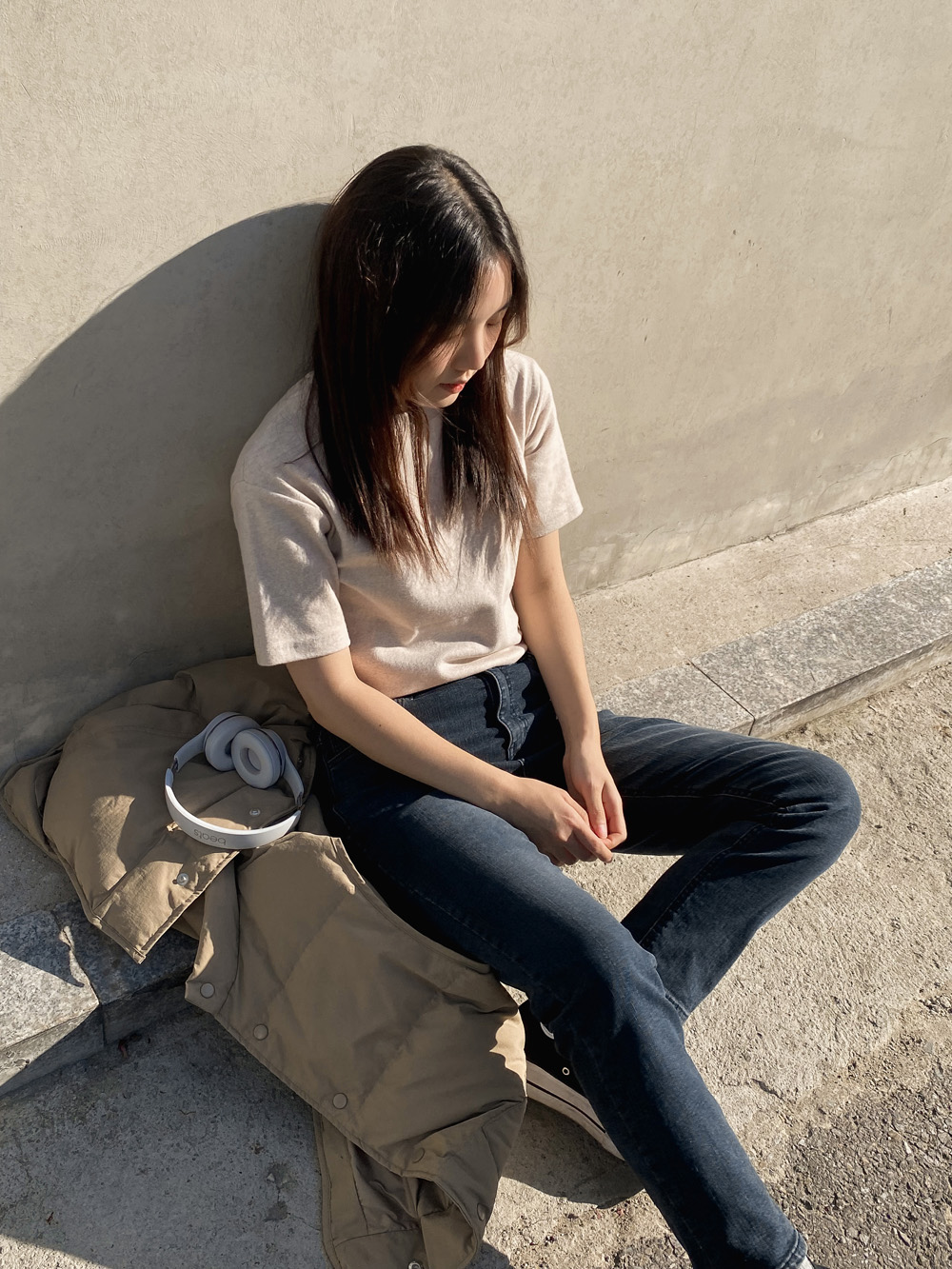 적당한 기장감으로 밑단을 하의에 넣어입어도