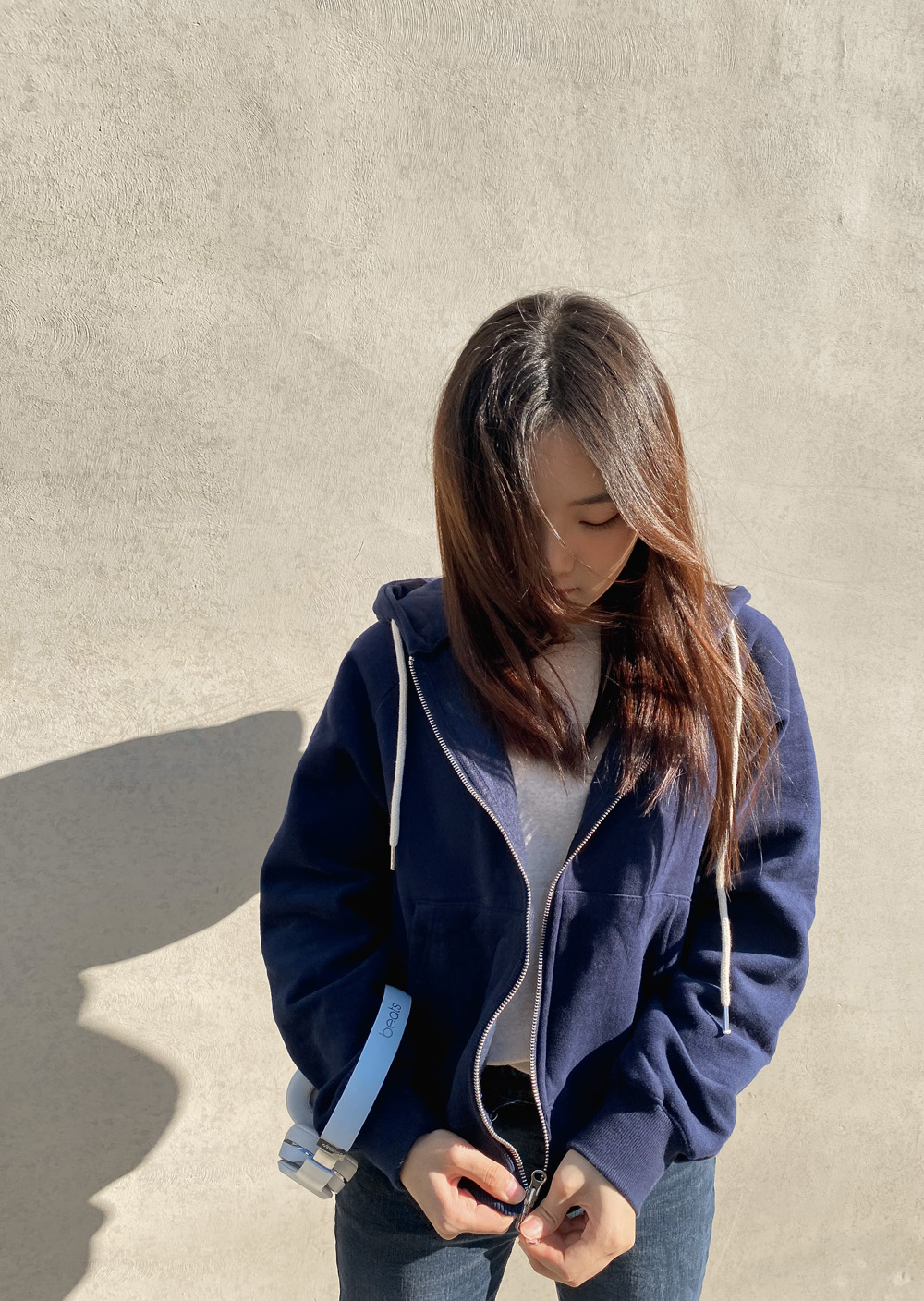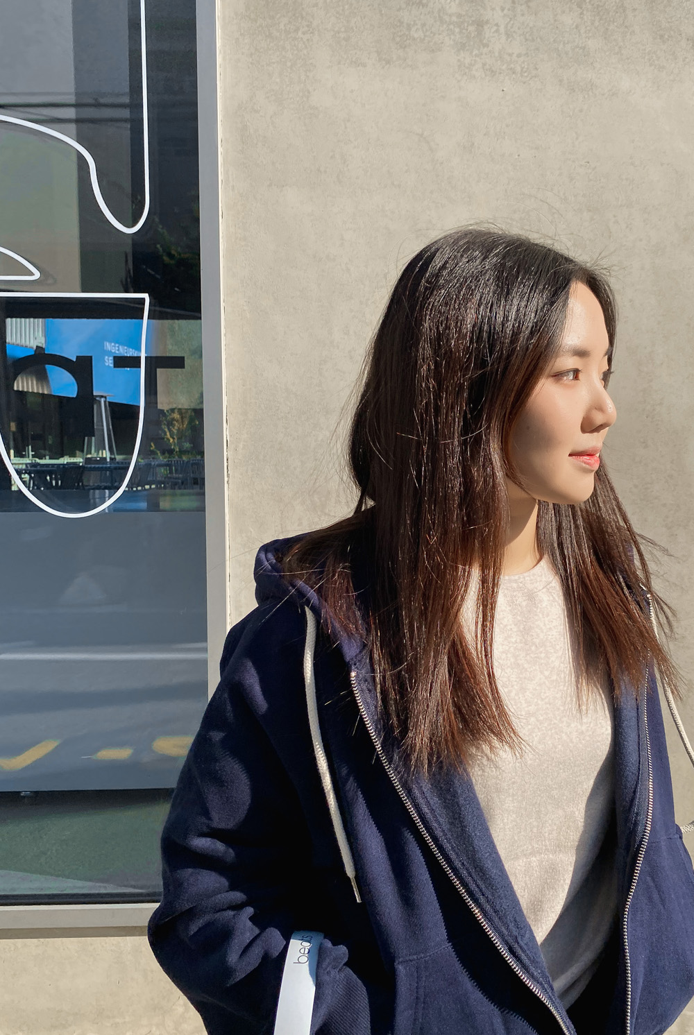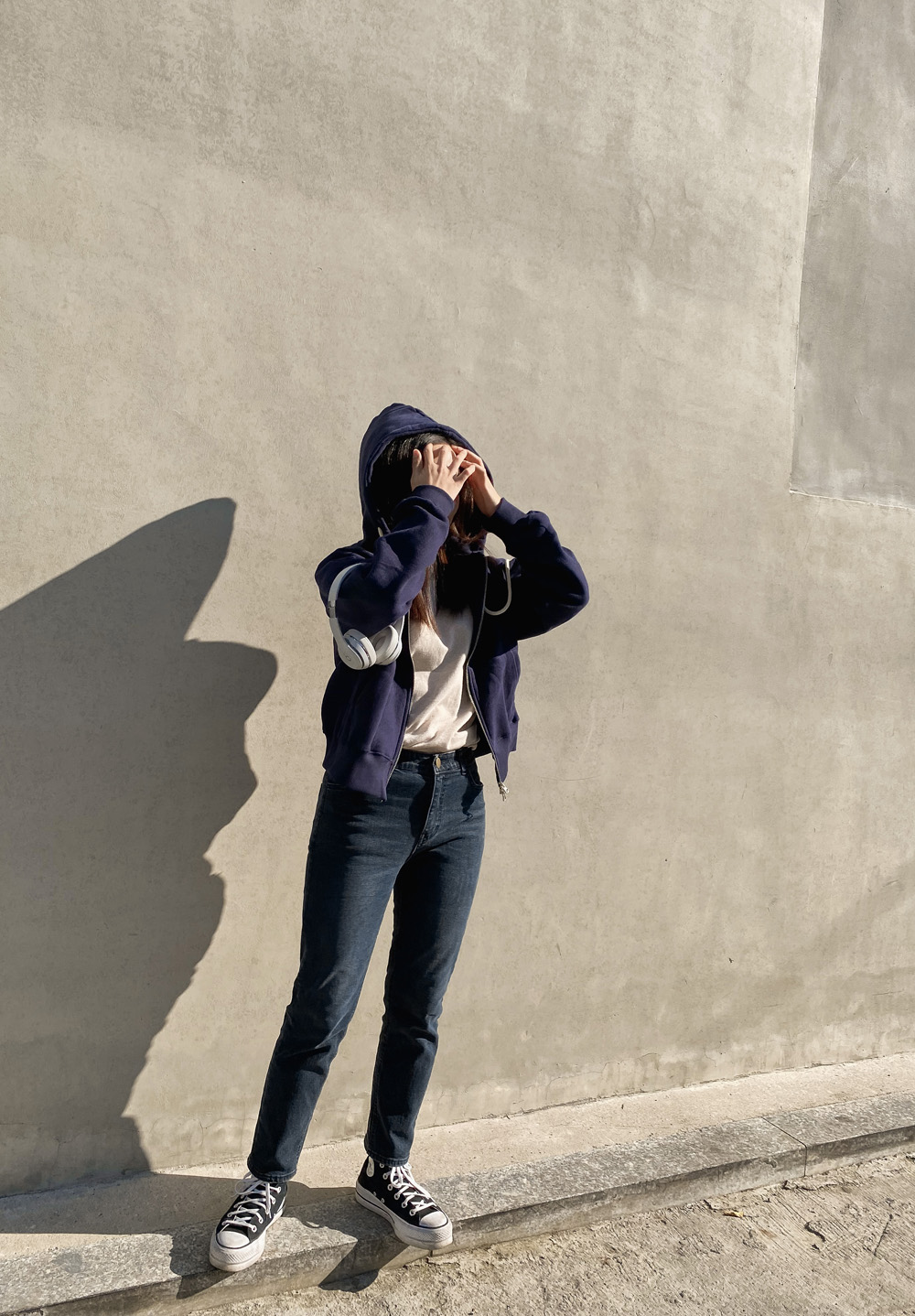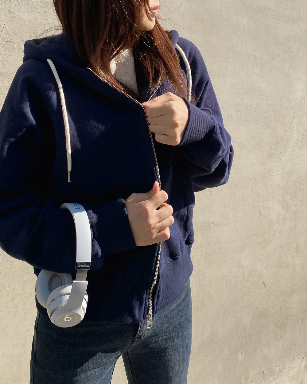 적당한 기장감으로 밑단을 하의에 넣어입어도