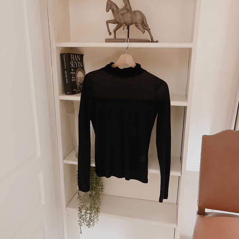 여기저기 활용하기 좋은 반 하이넥 티셔츠입니다.