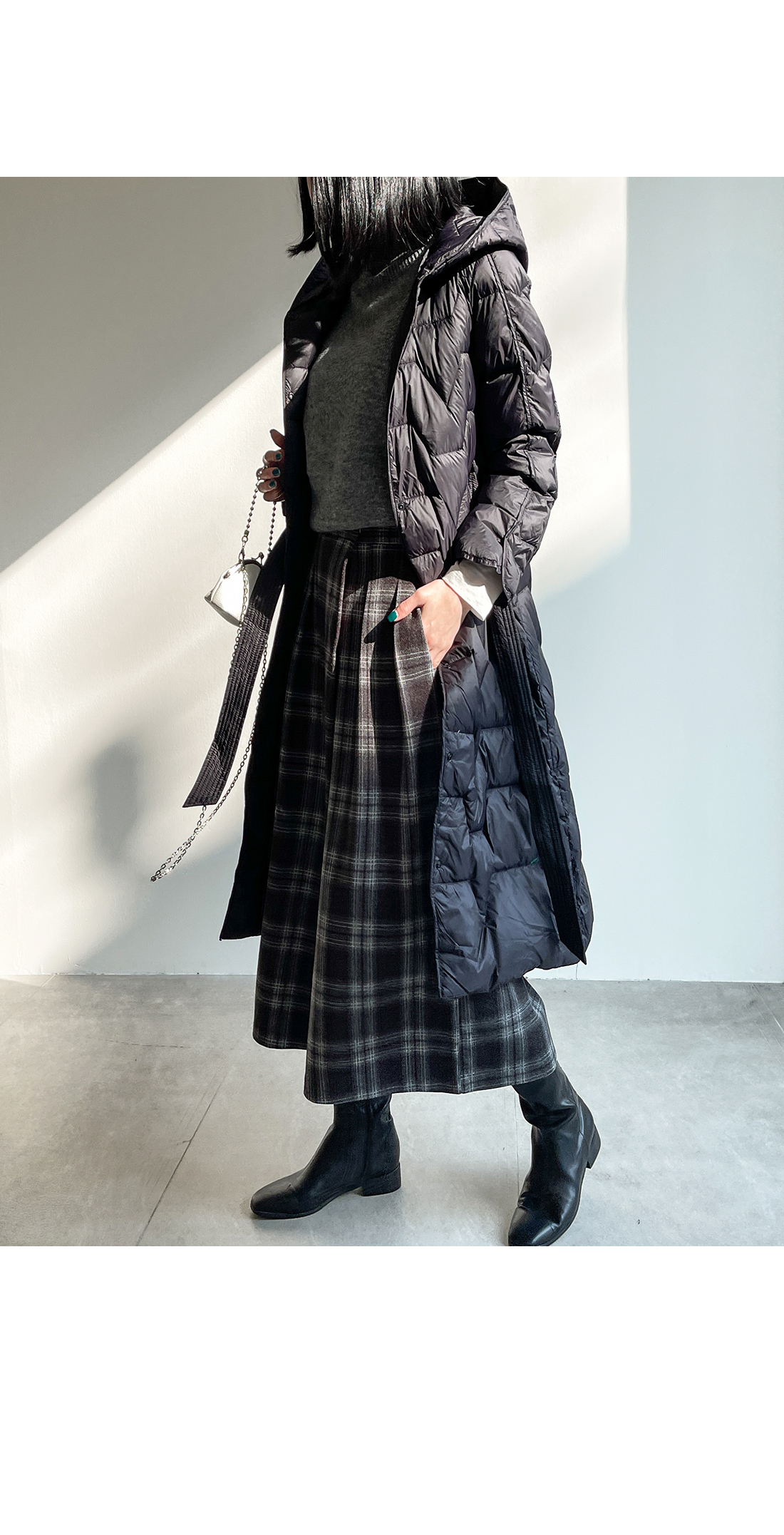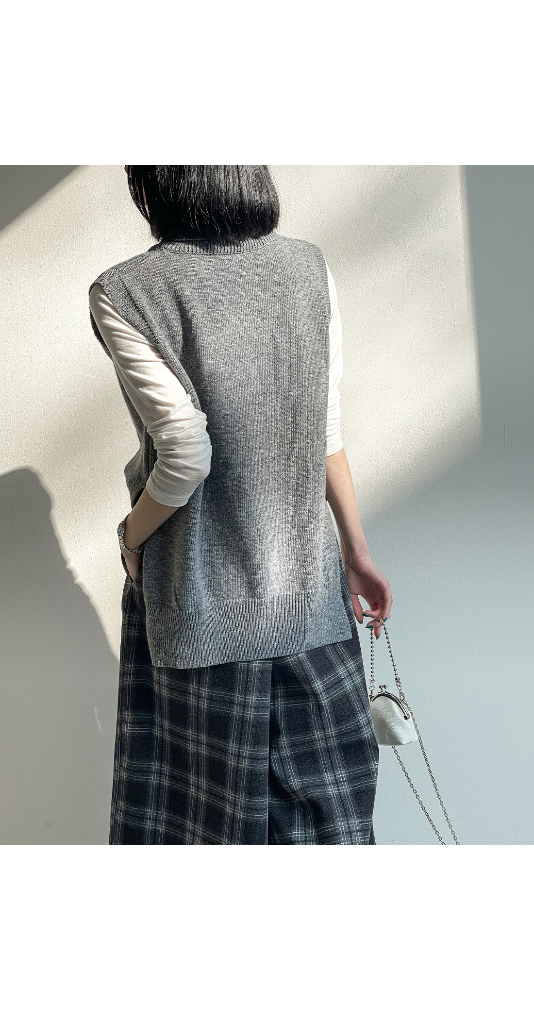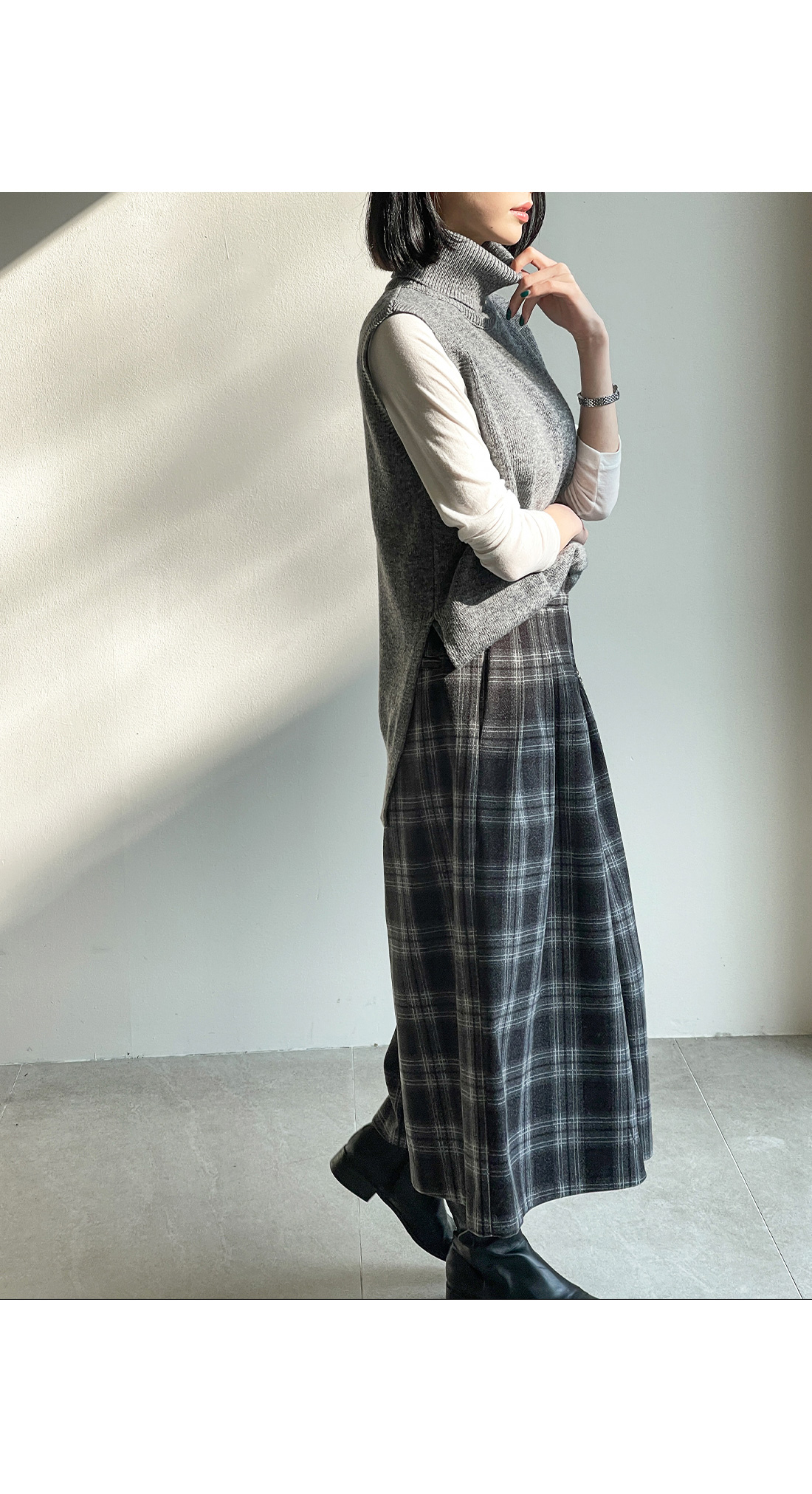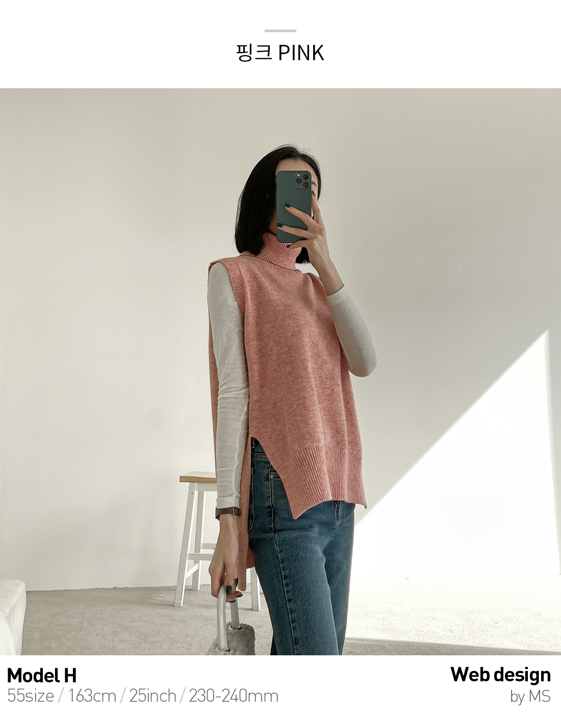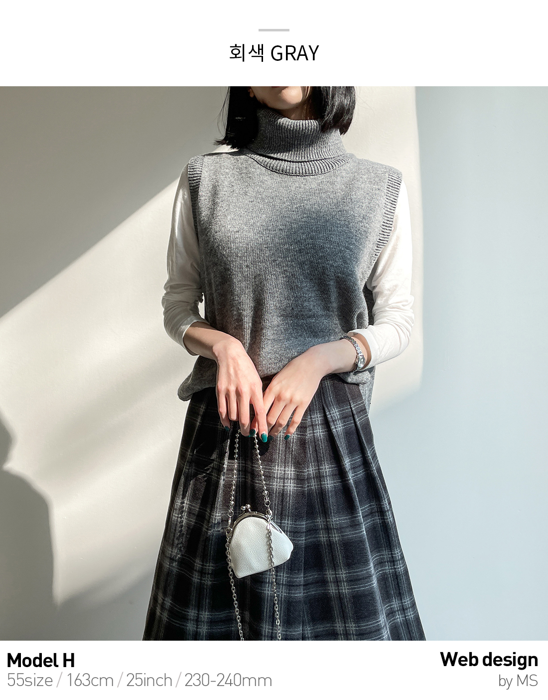 언발 기장으로 포인트를 주었고