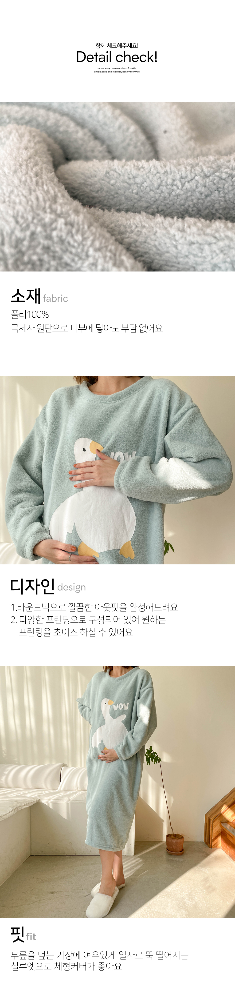 극세사 원단의 수면잠옷 원단으로