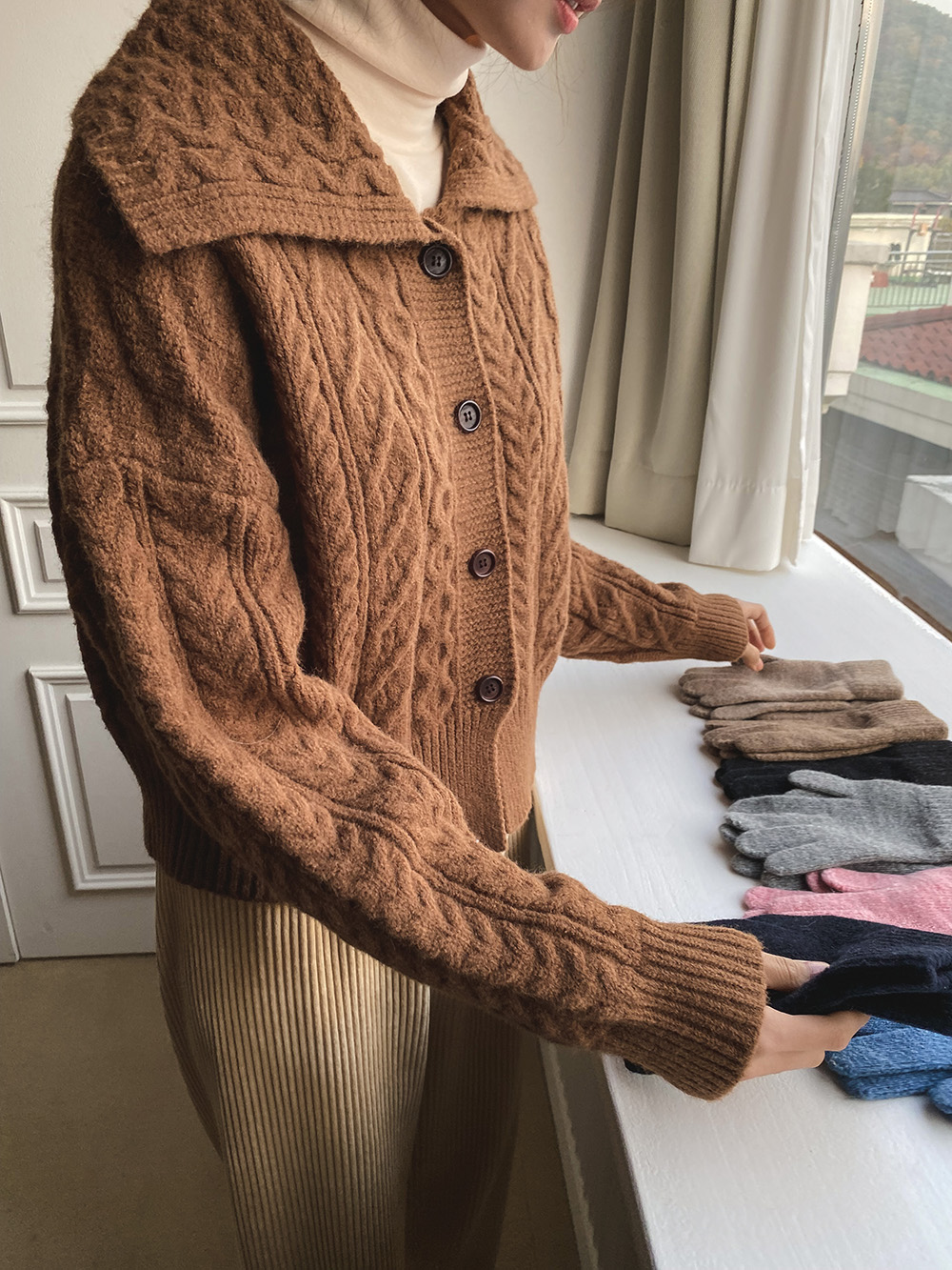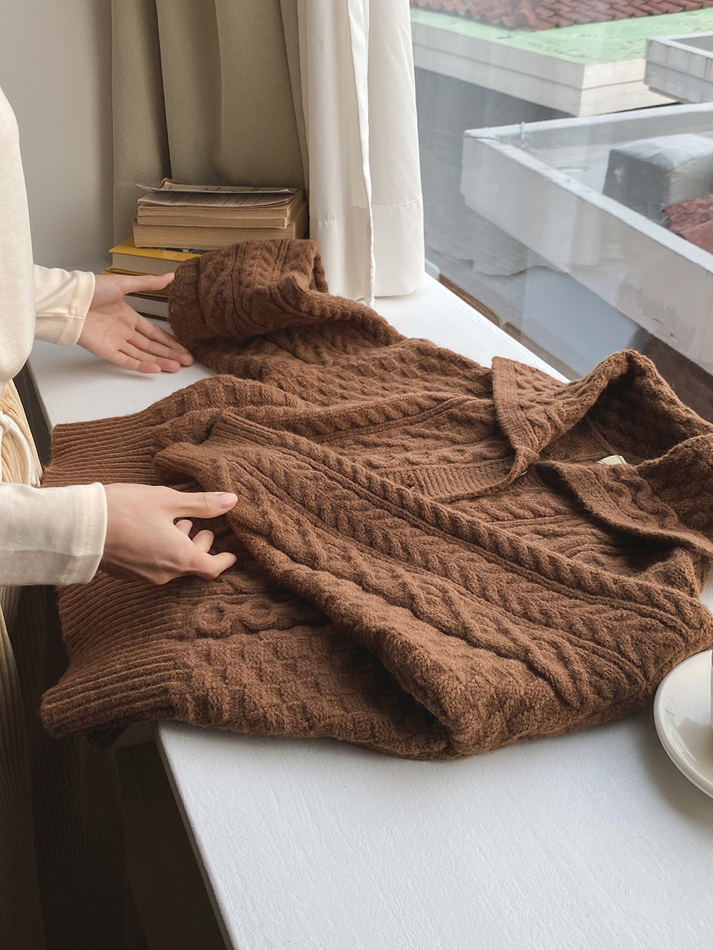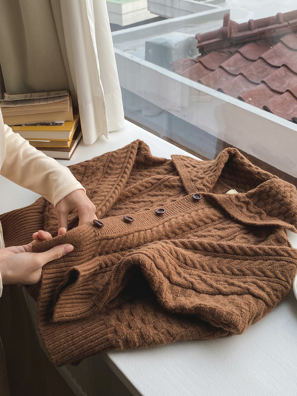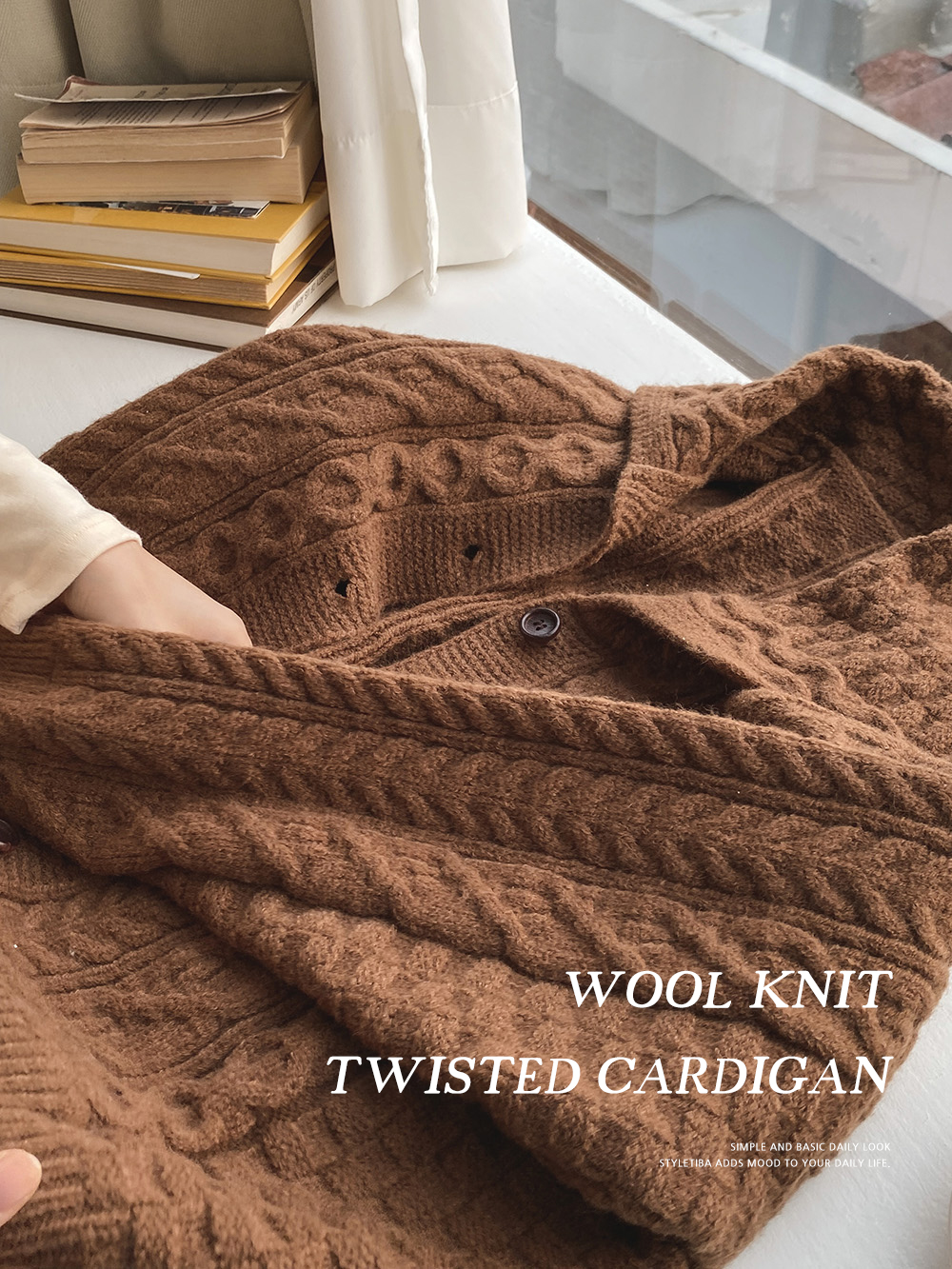 Twisted wool knit cardigan-3color, I never get tired of classic!-Warm twisted knit :) - Styletiva