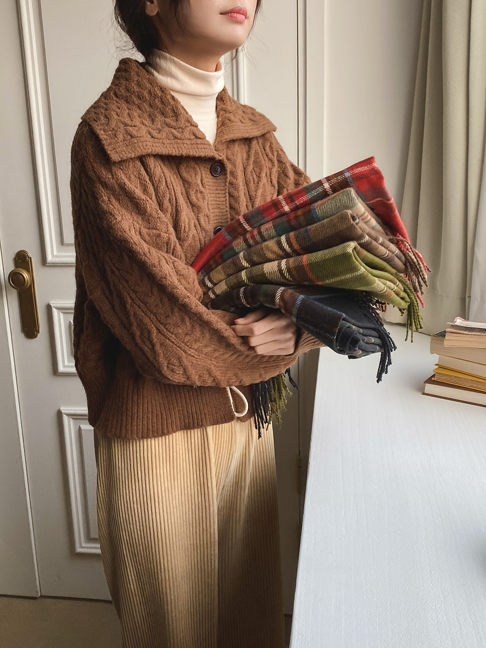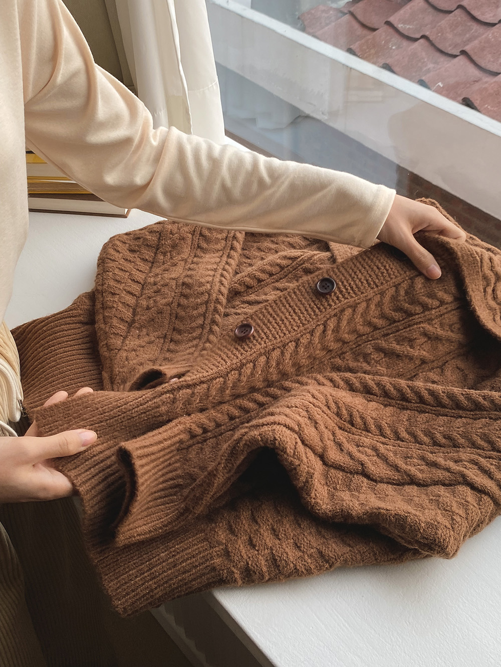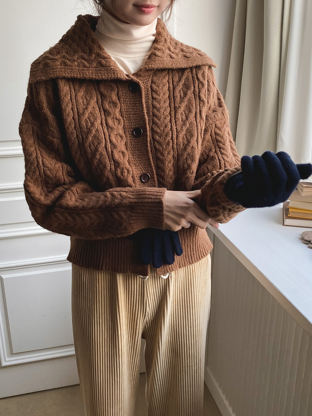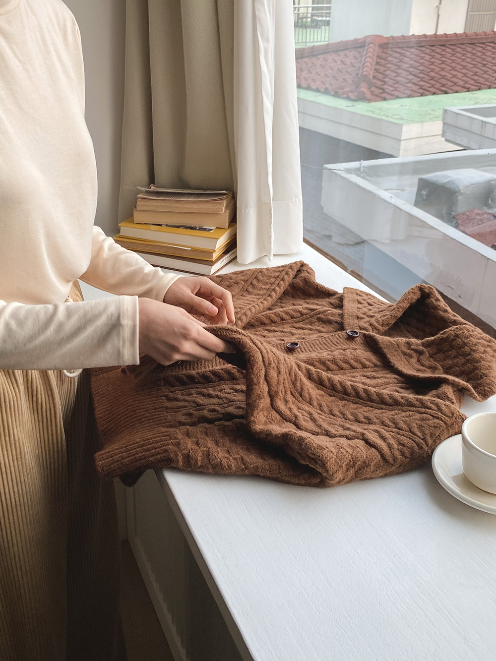 Twisted wool knit cardigan-3color, I never get tired of classic!-Warm twisted knit :) - Styletiva