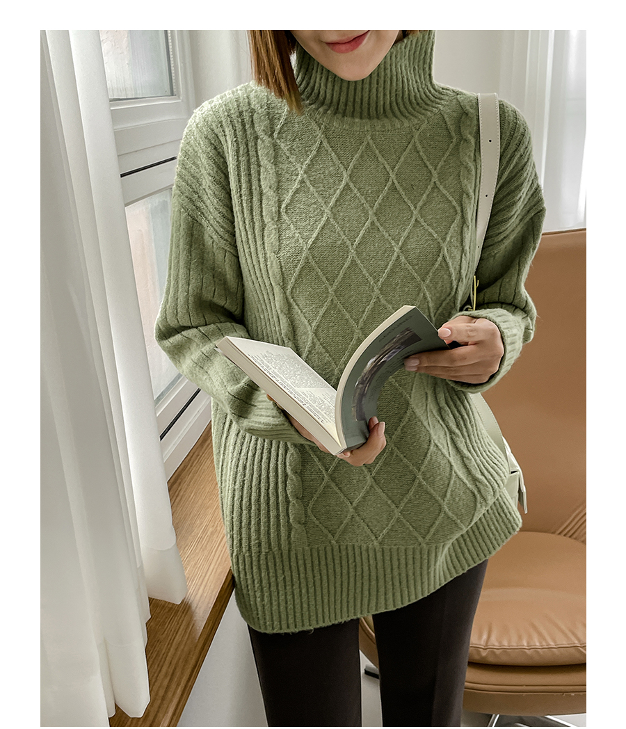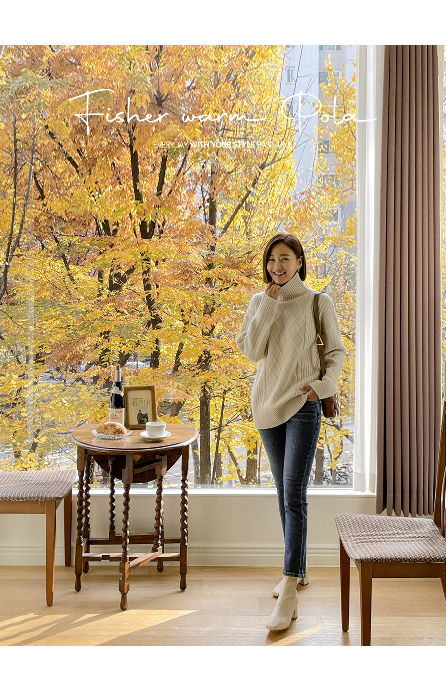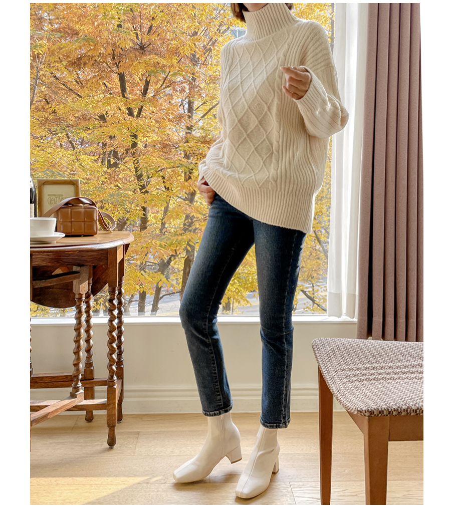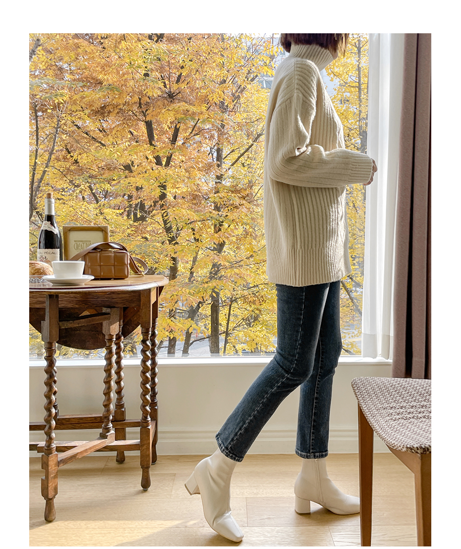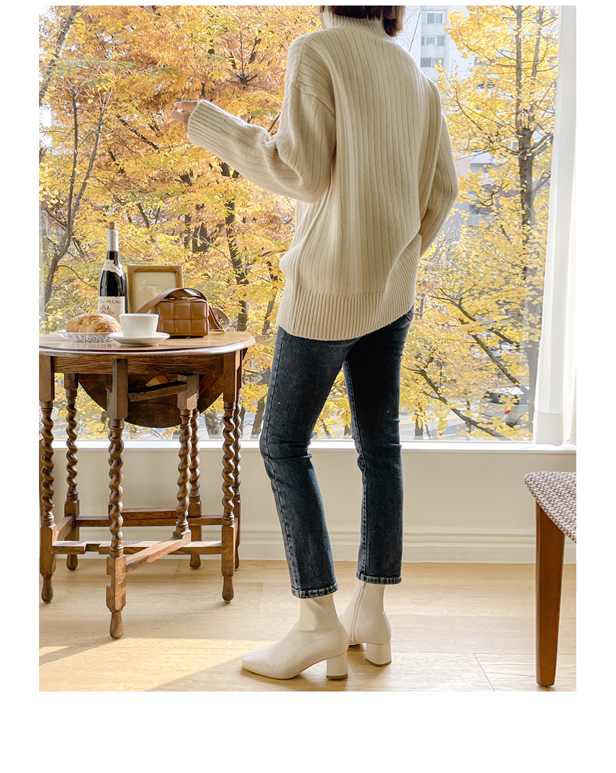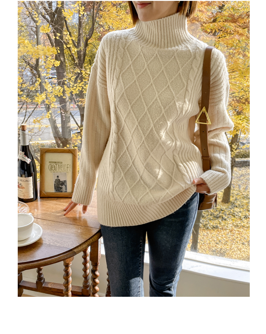 넥라인도 포근히 감싸주는 폴라넥 디자인으로