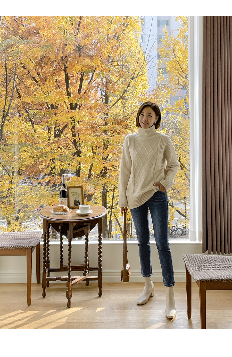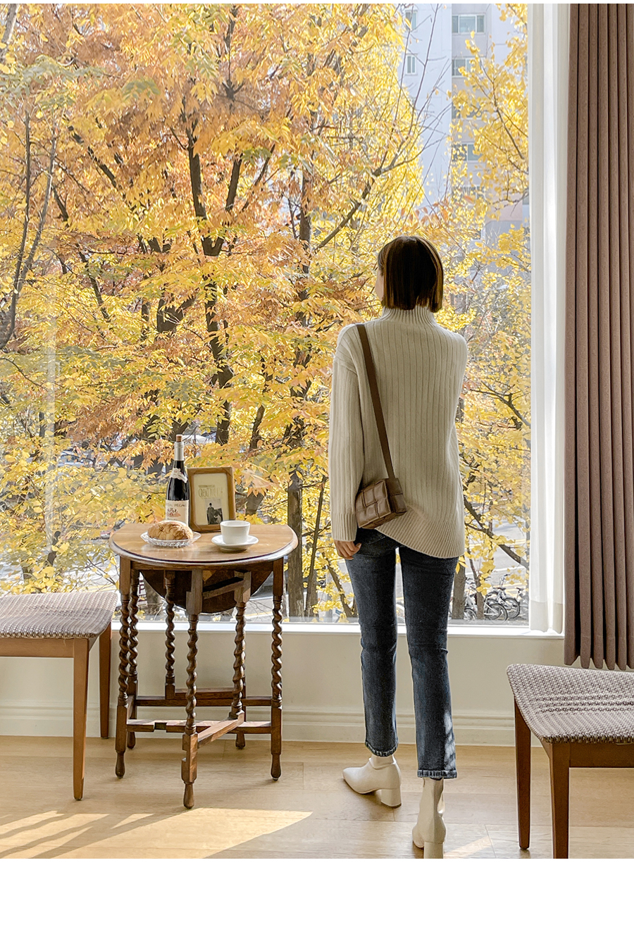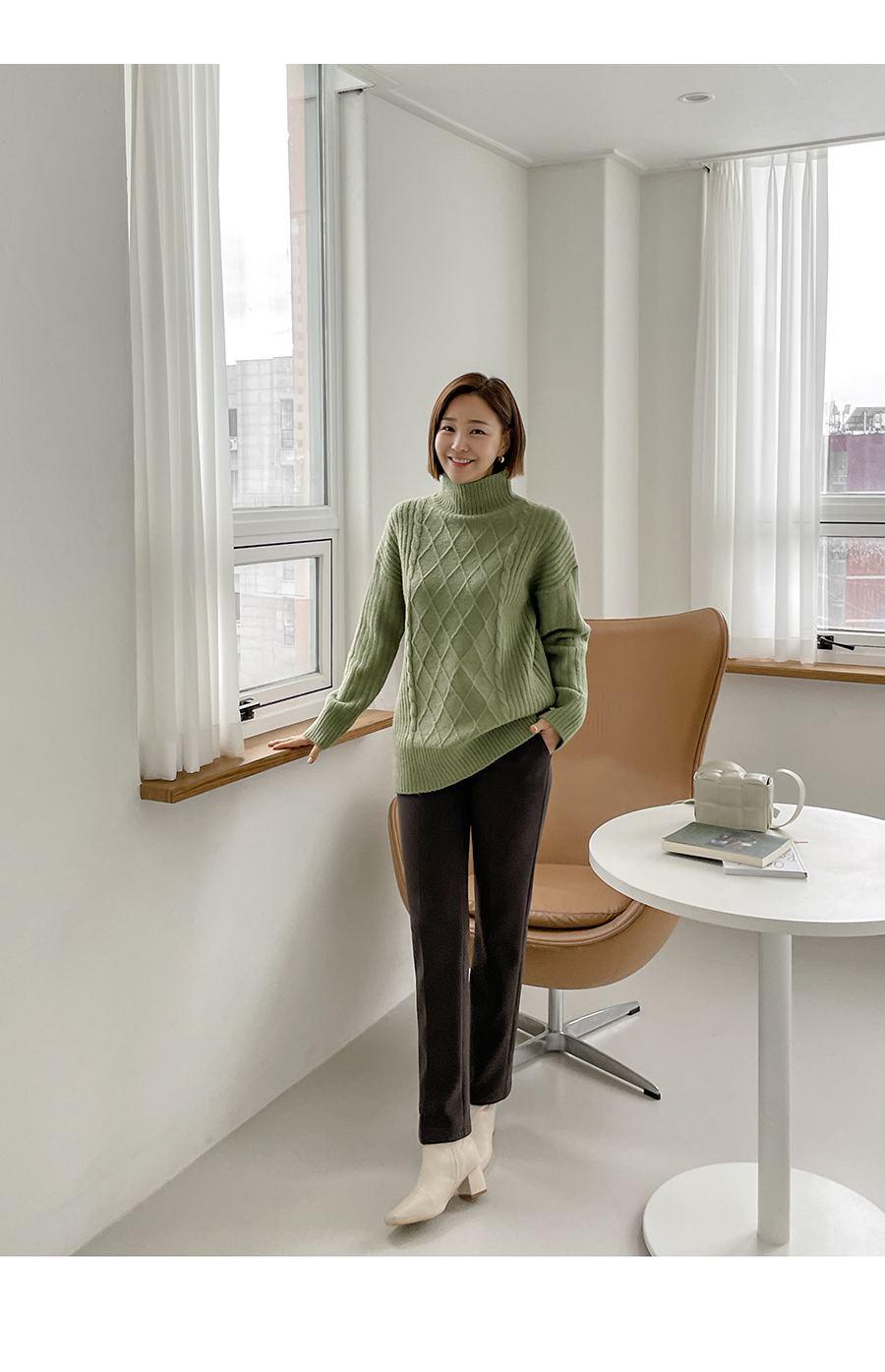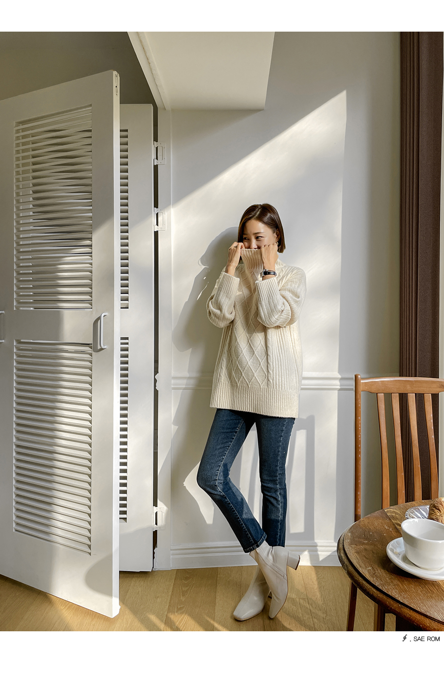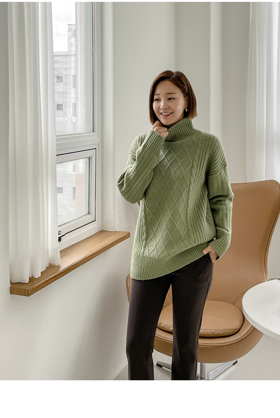 넥라인도 포근히 감싸주는 폴라넥 디자인으로