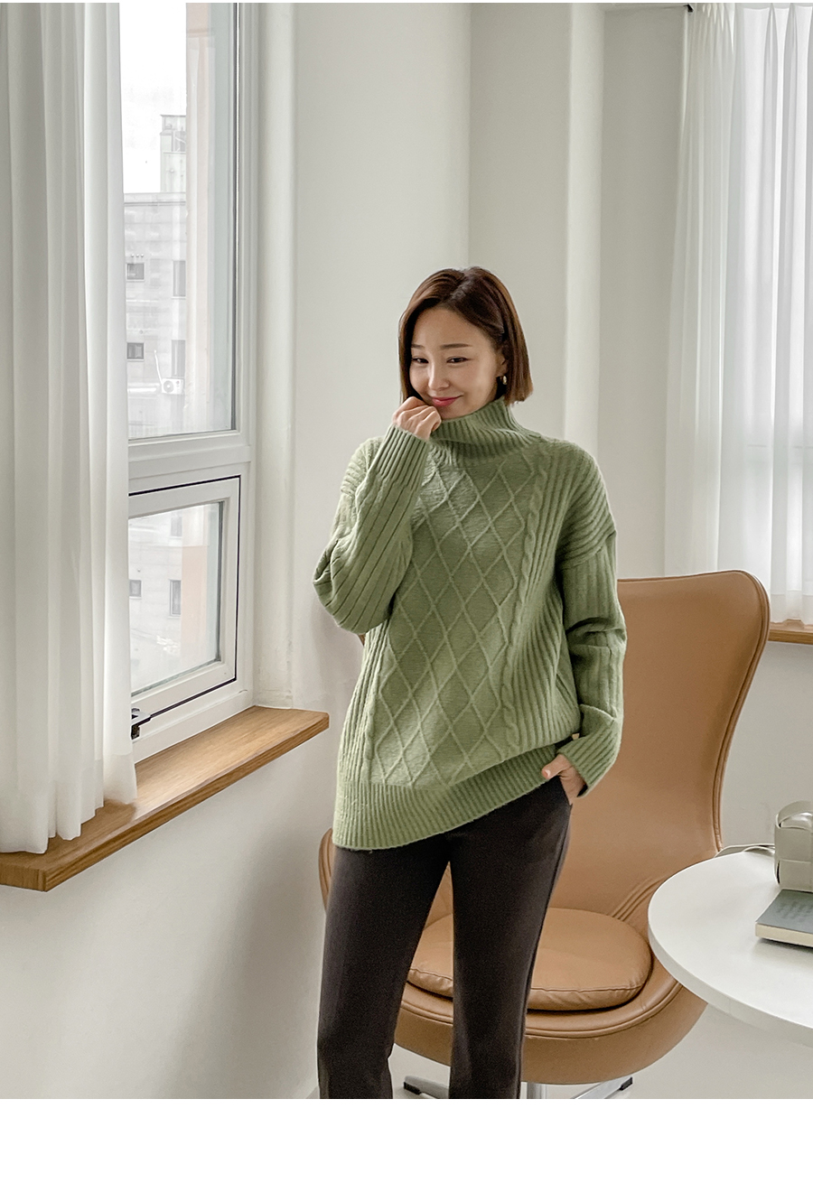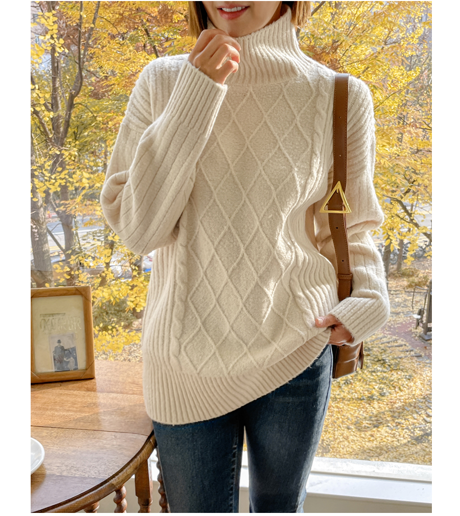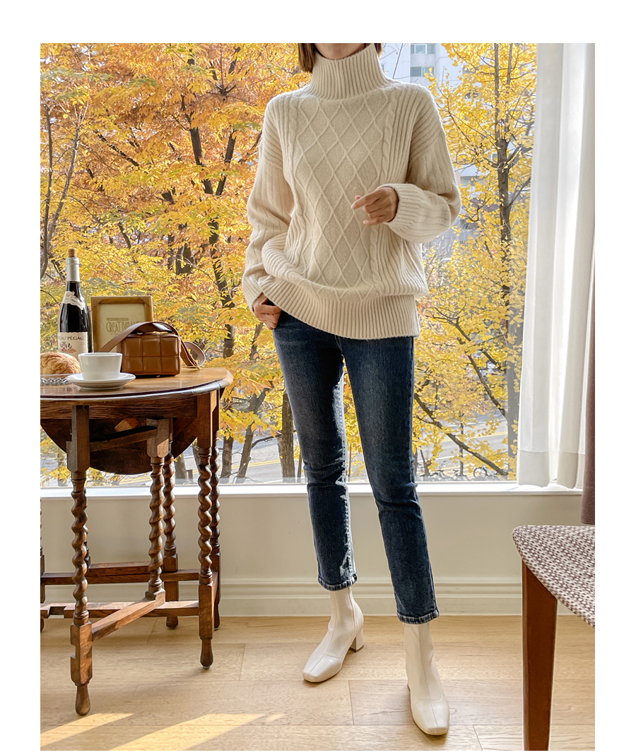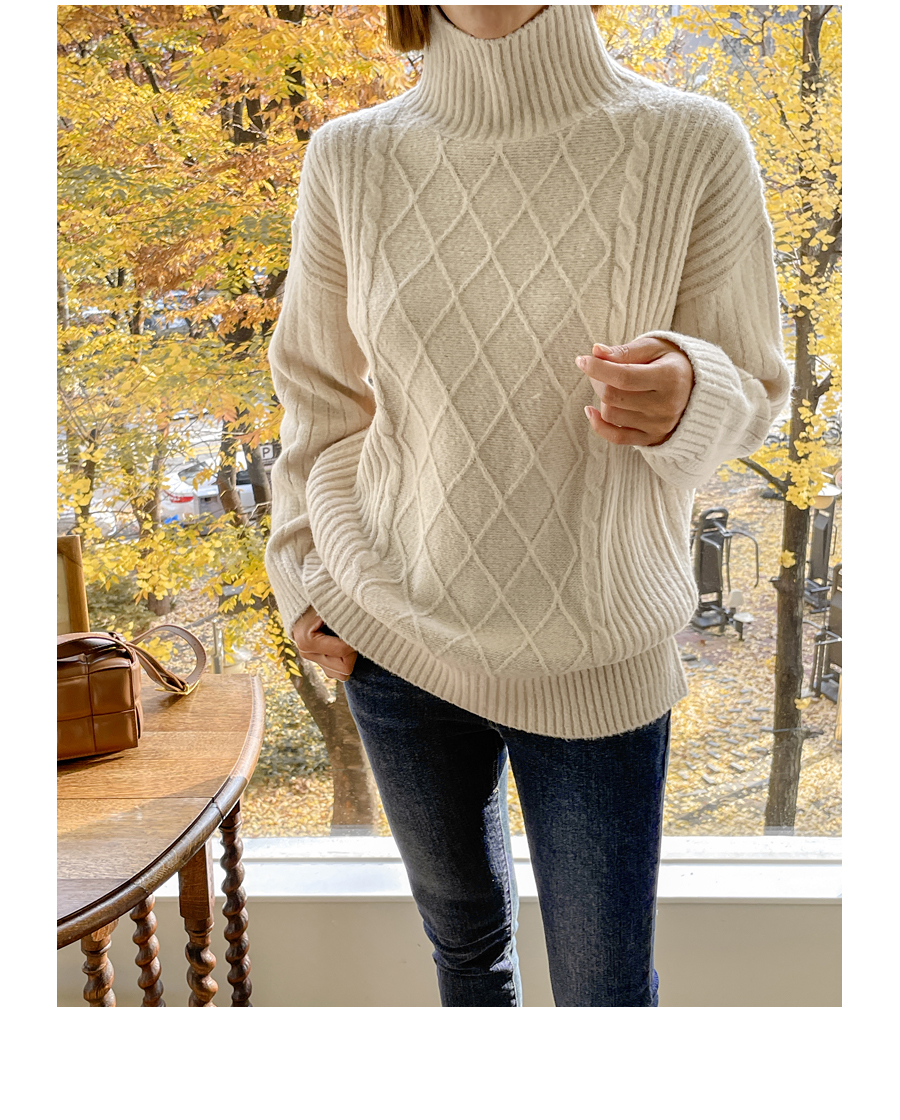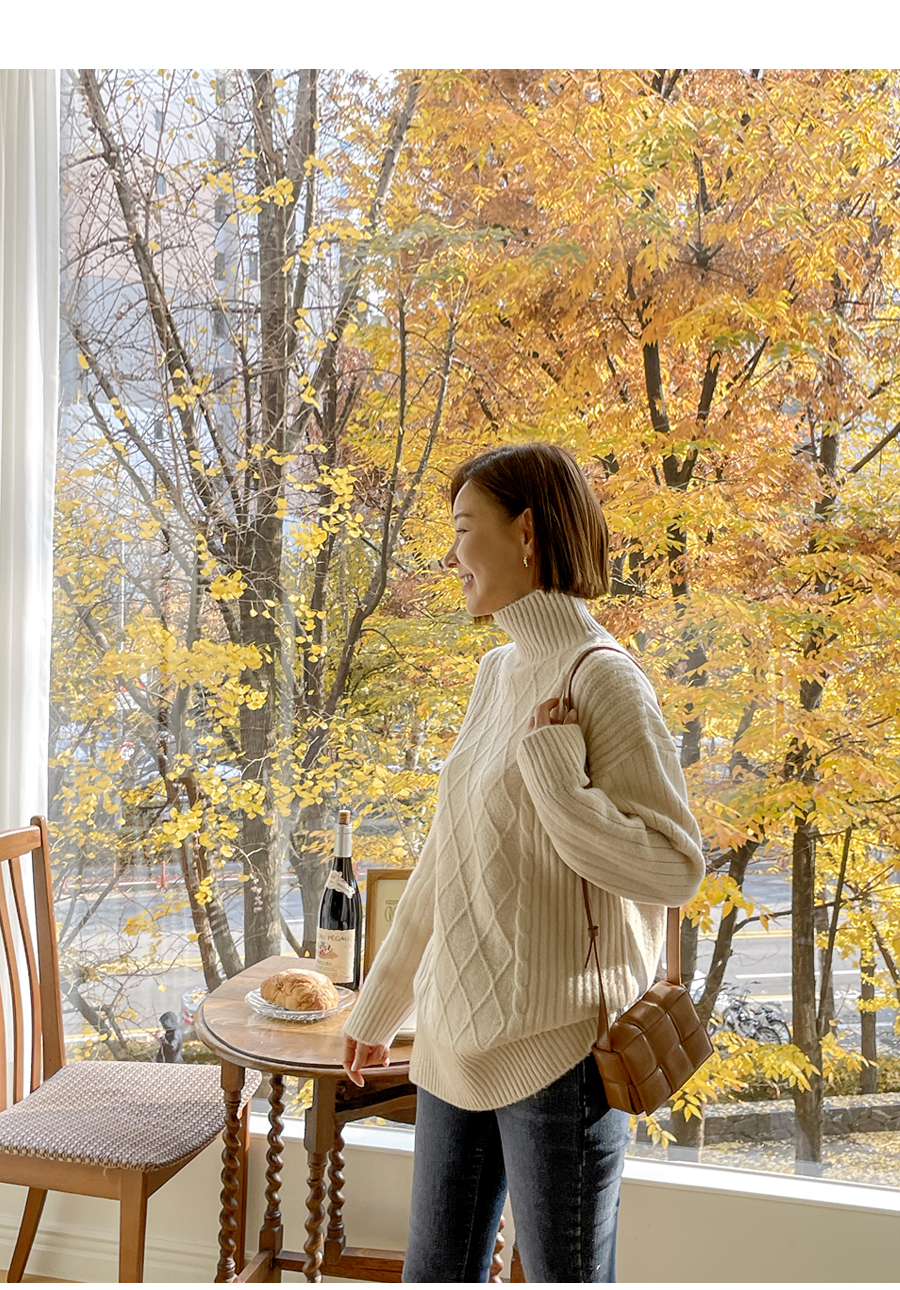 세련된 무드의 피셔맨 니트 짜임이
