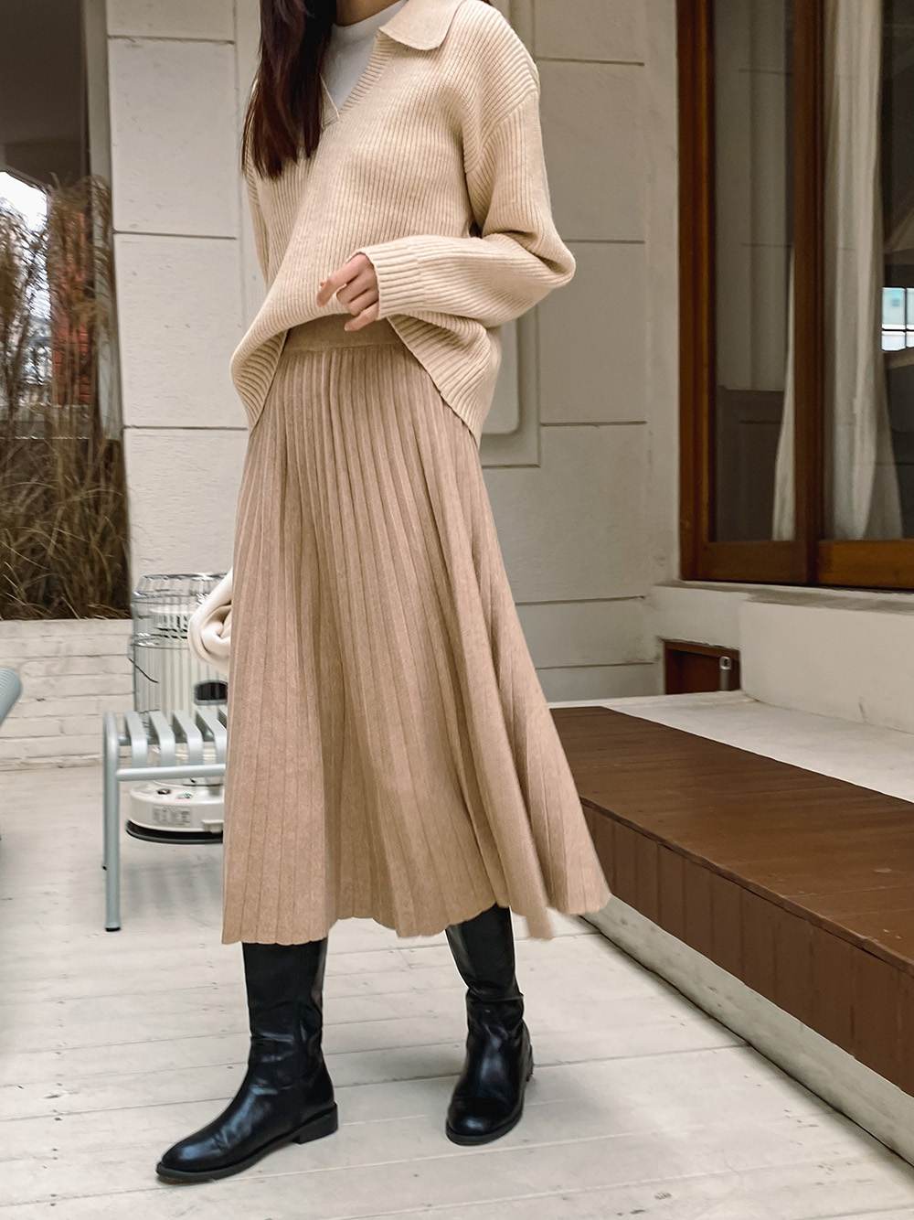 플레어라인으로 니트의 우아함이 돋보여요