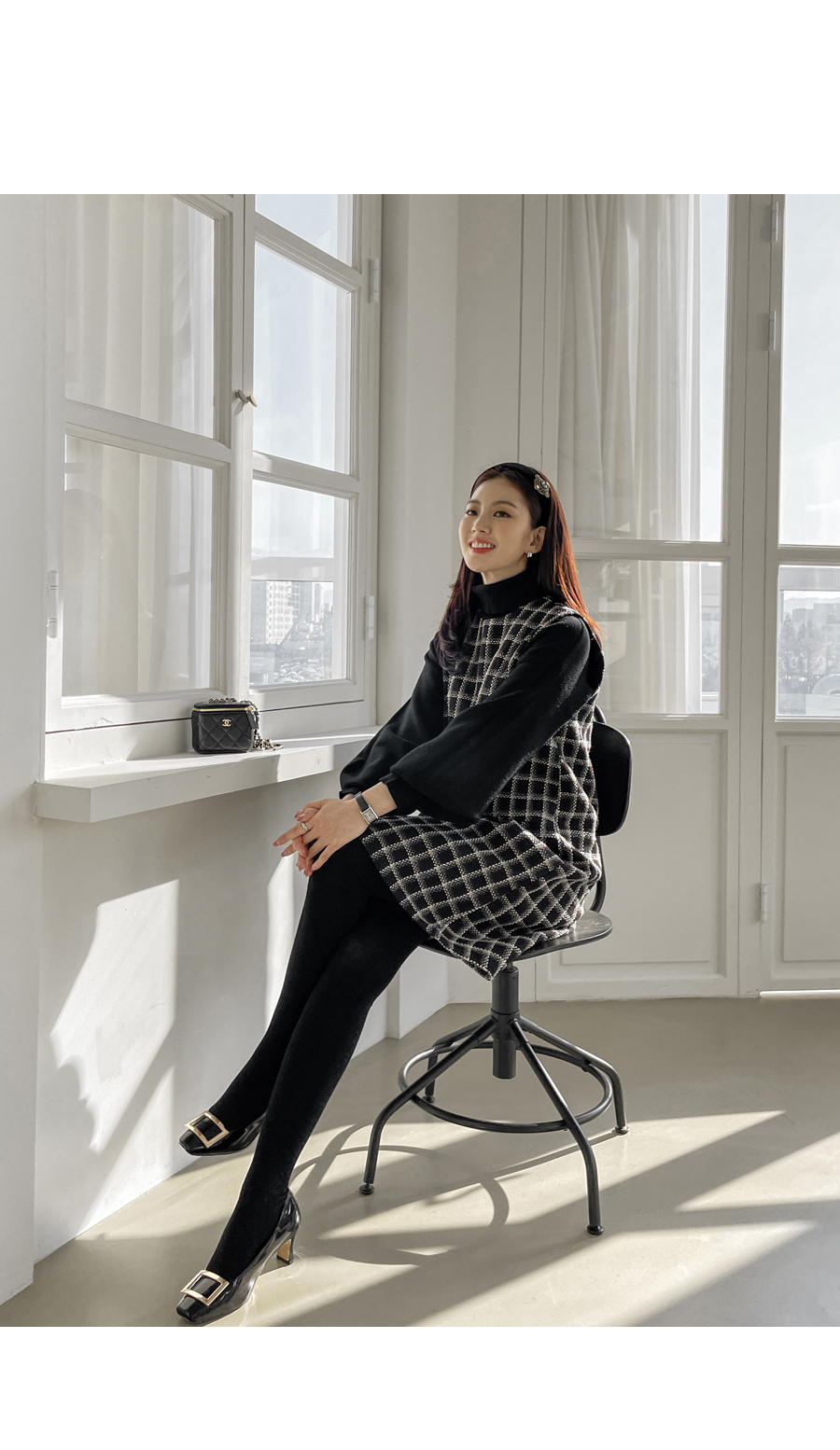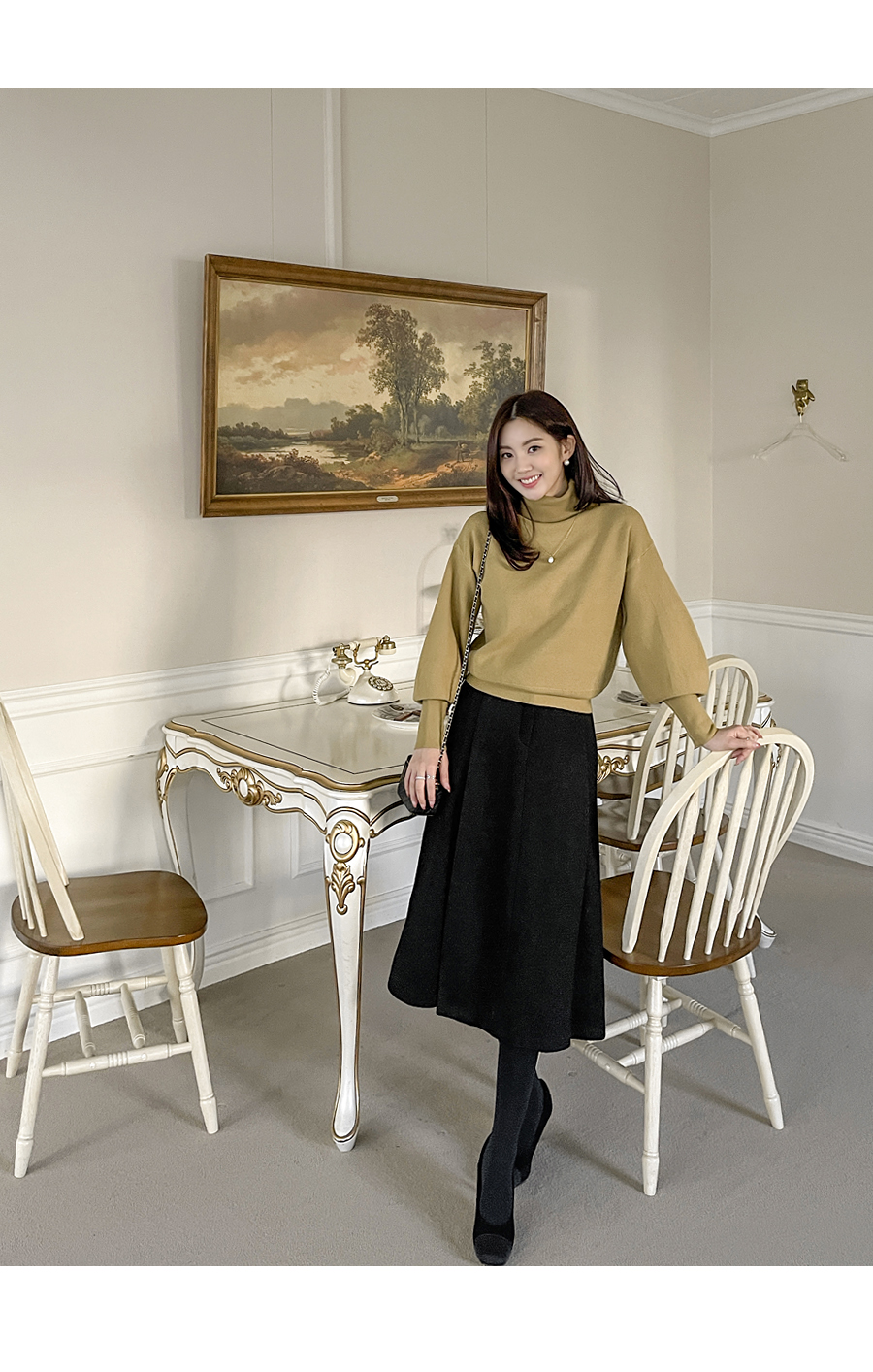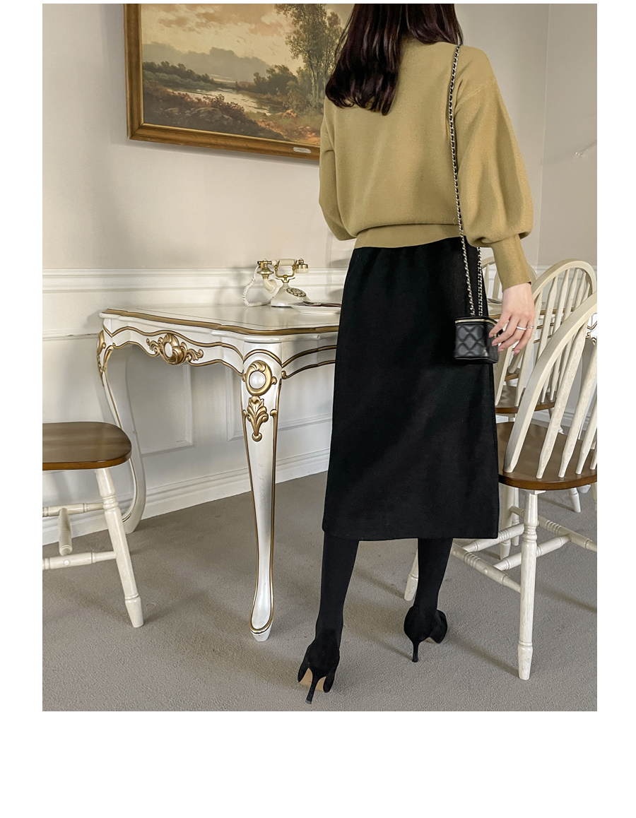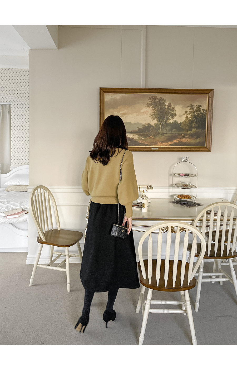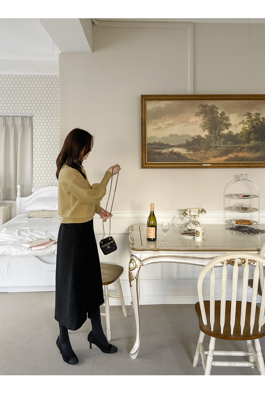 차분하게 단아한 무드의 스커트와 찰떡으로 어울리면서