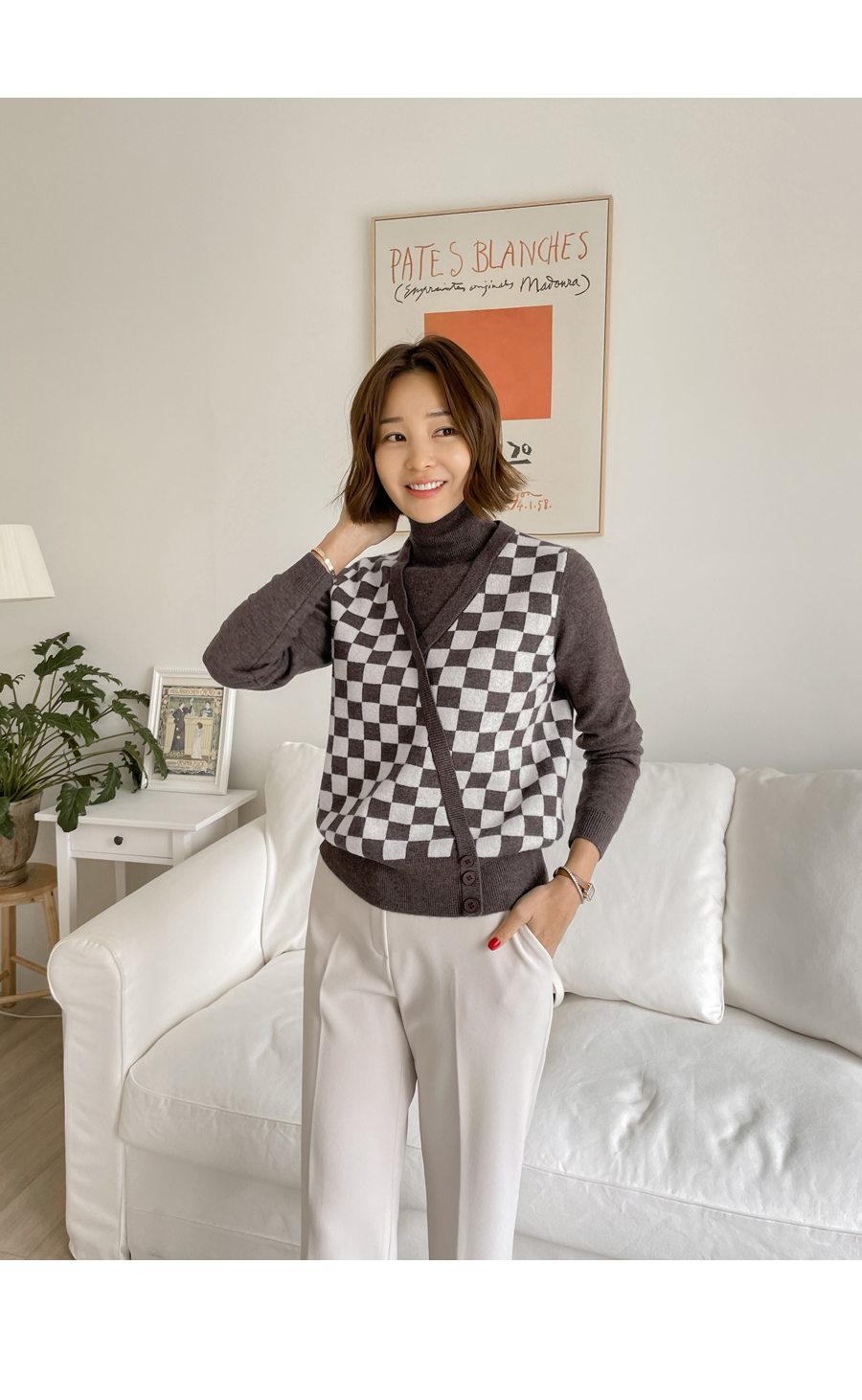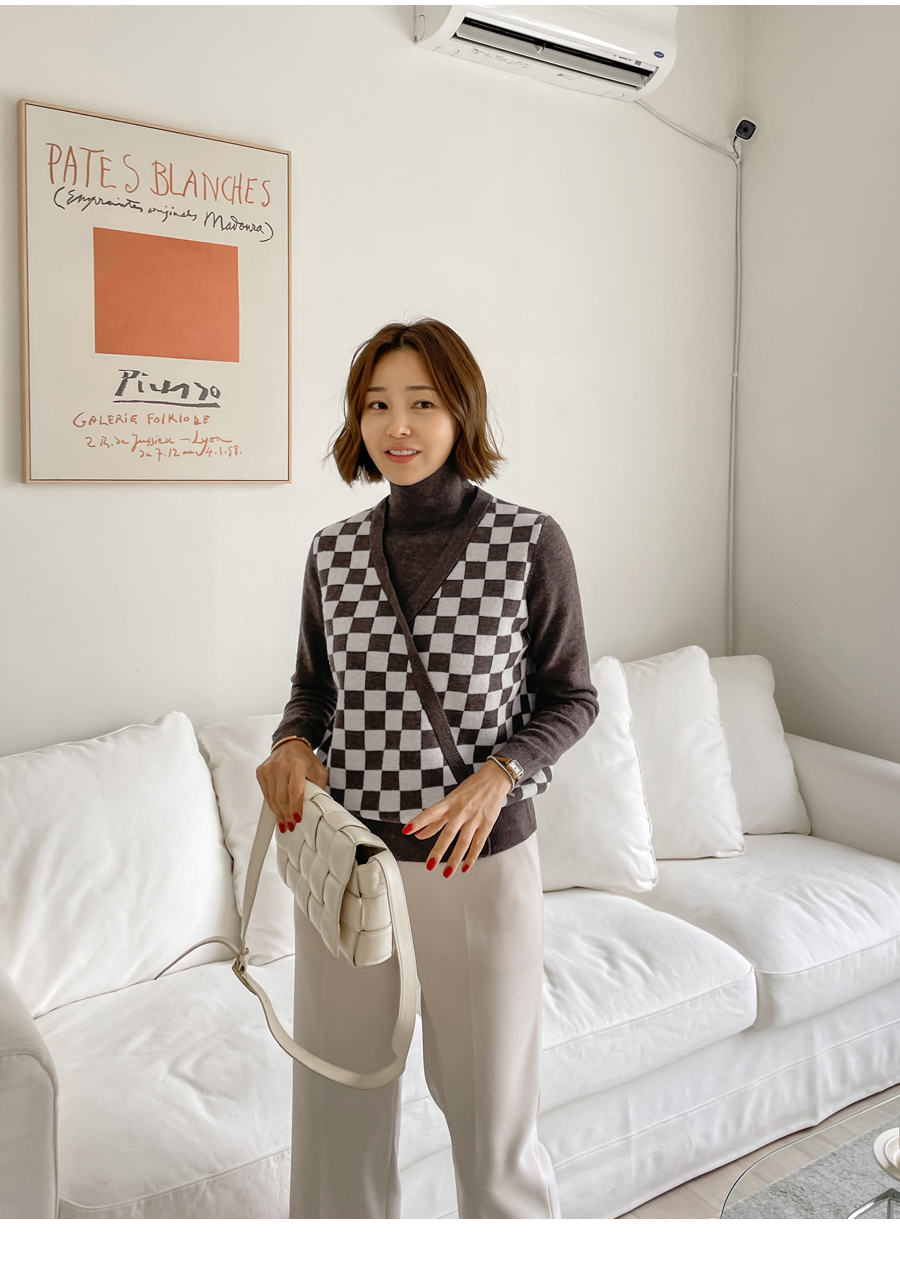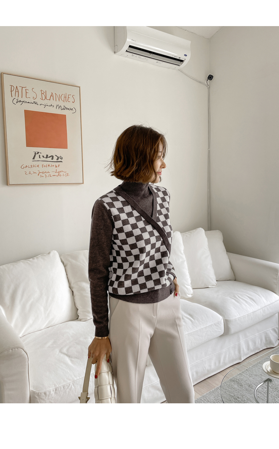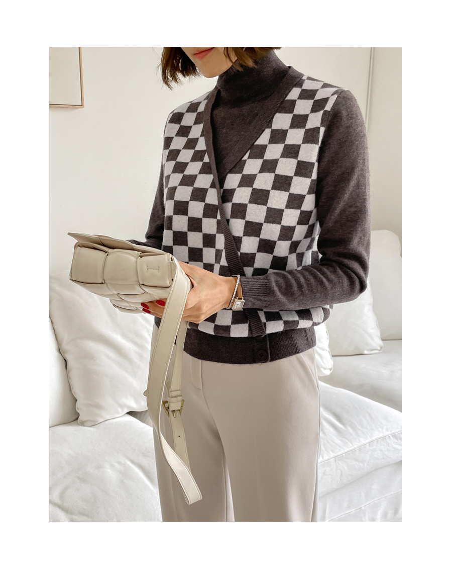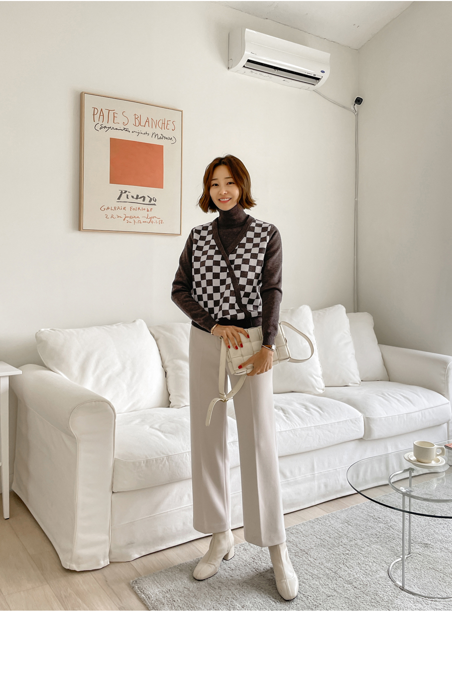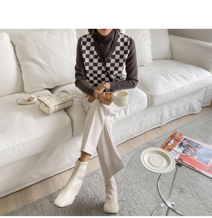 폴라 니트에 조끼 아이템을 레이어드 한 듯