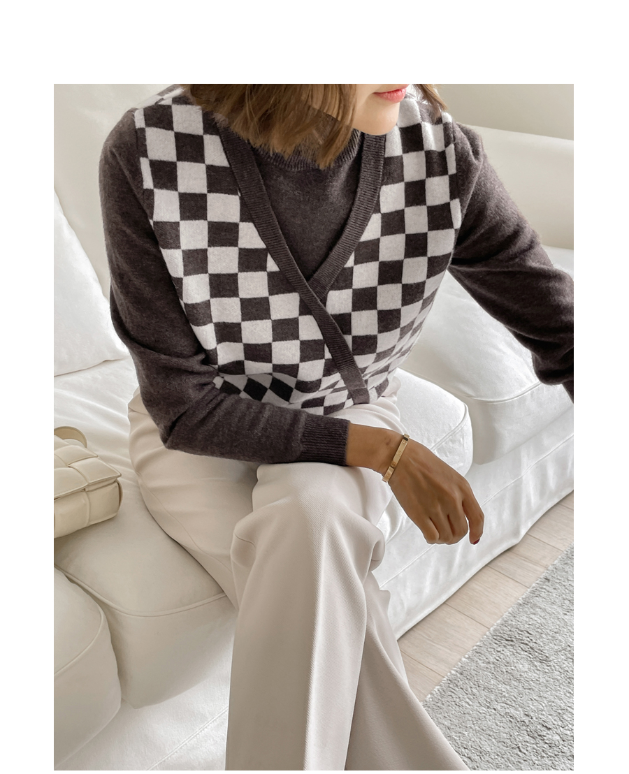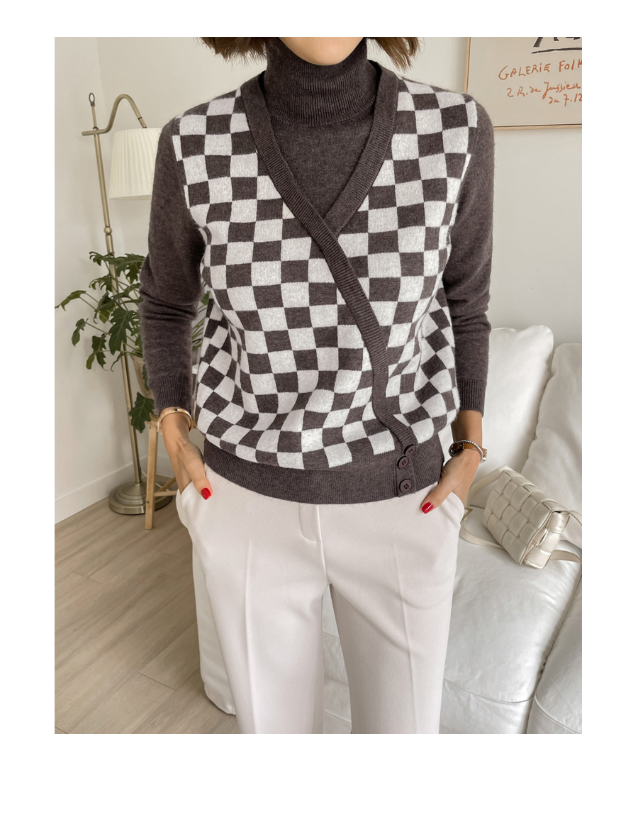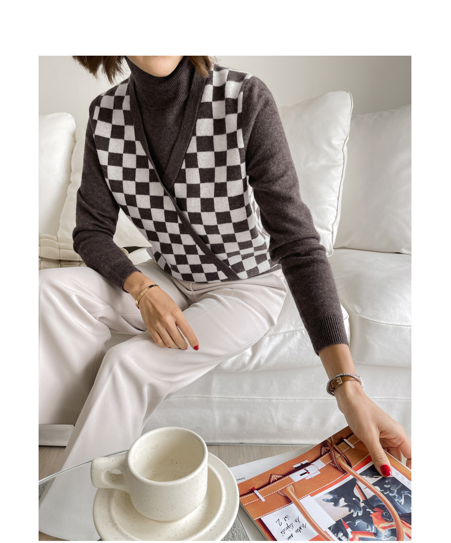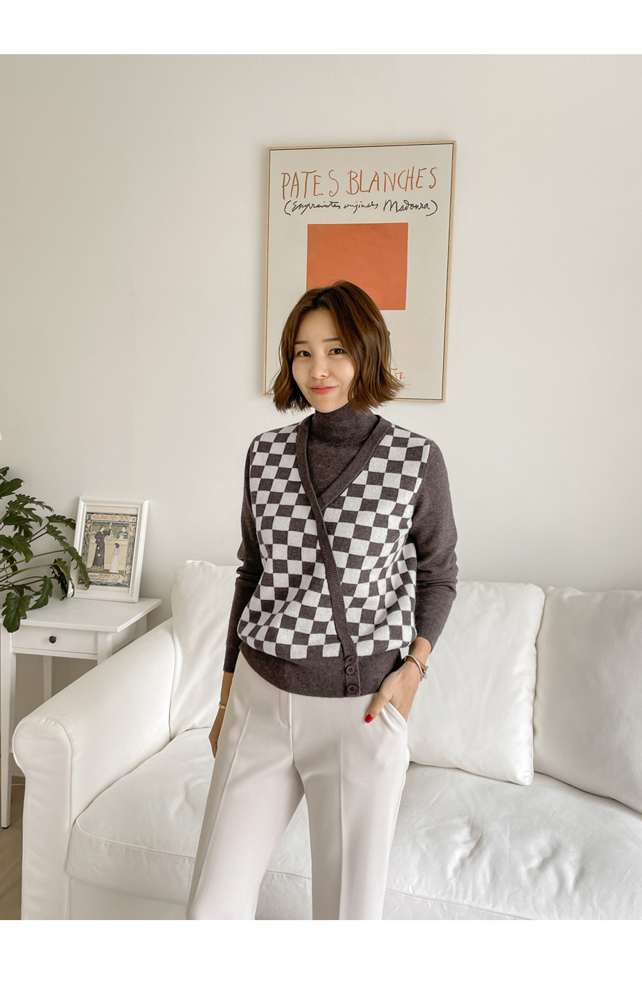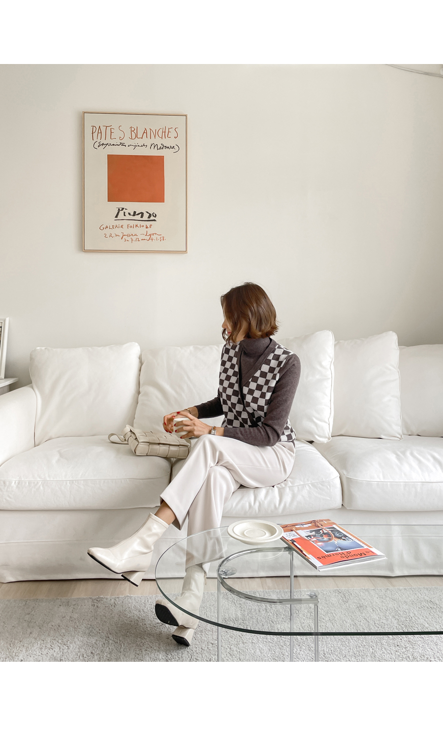폴라 니트에 조끼 아이템을 레이어드 한 듯