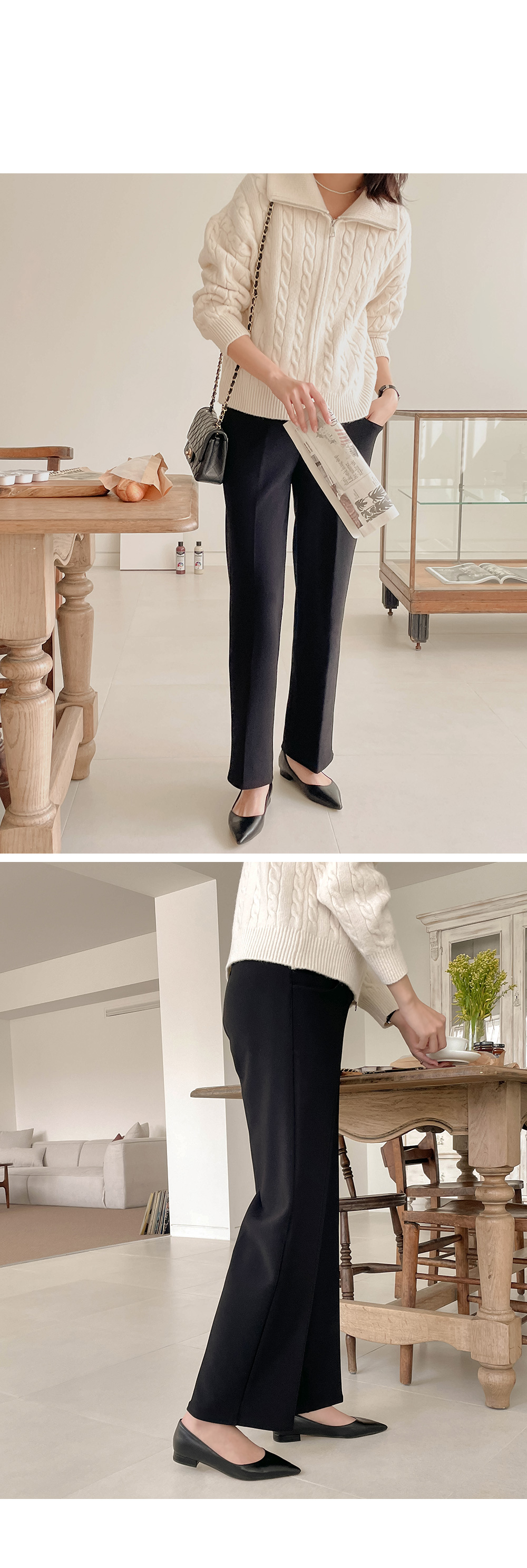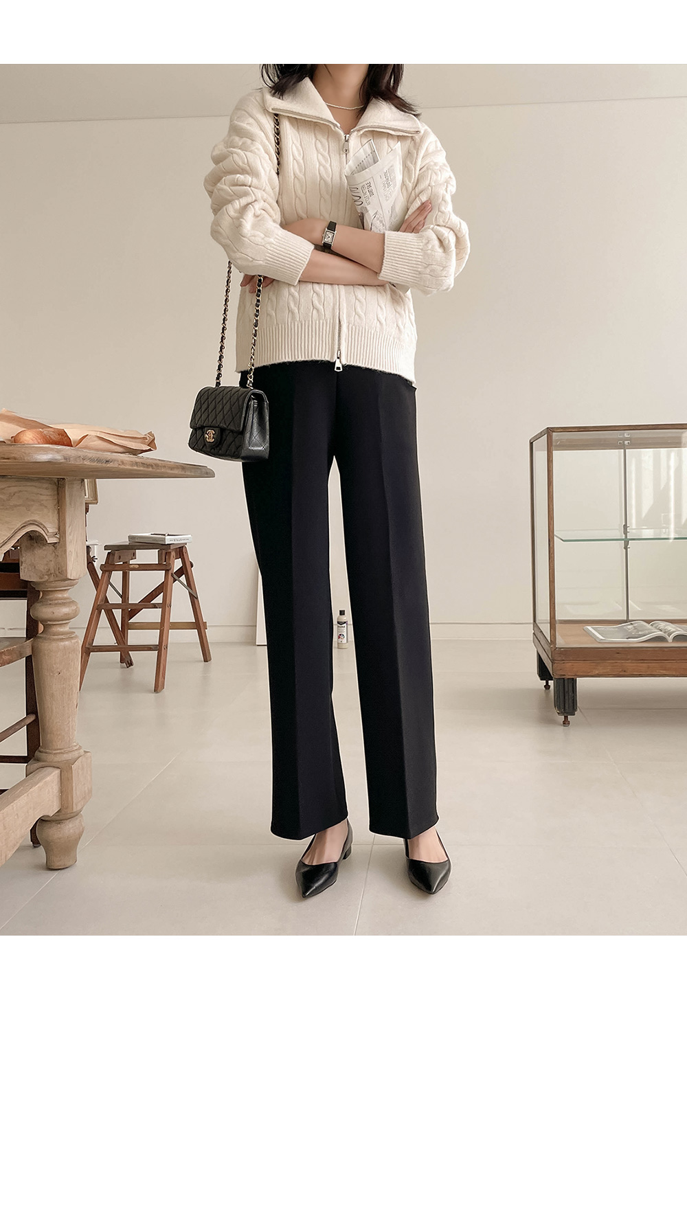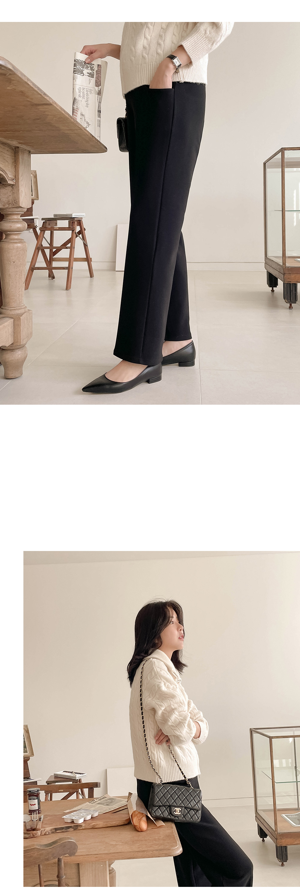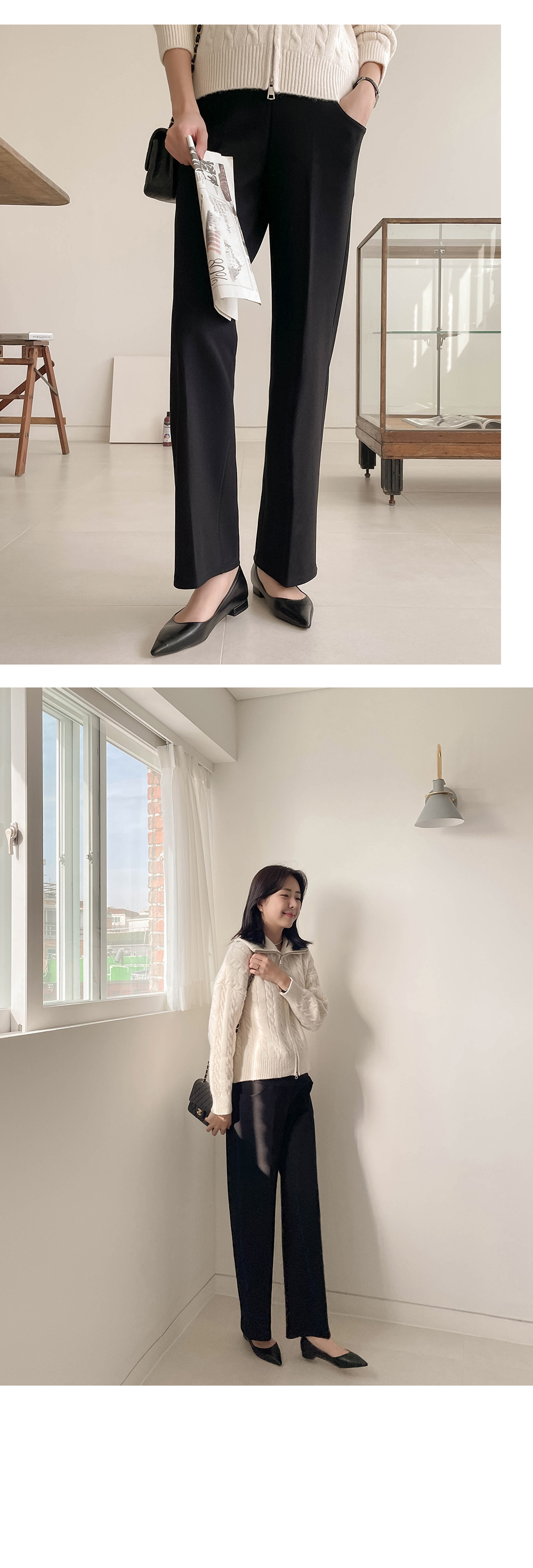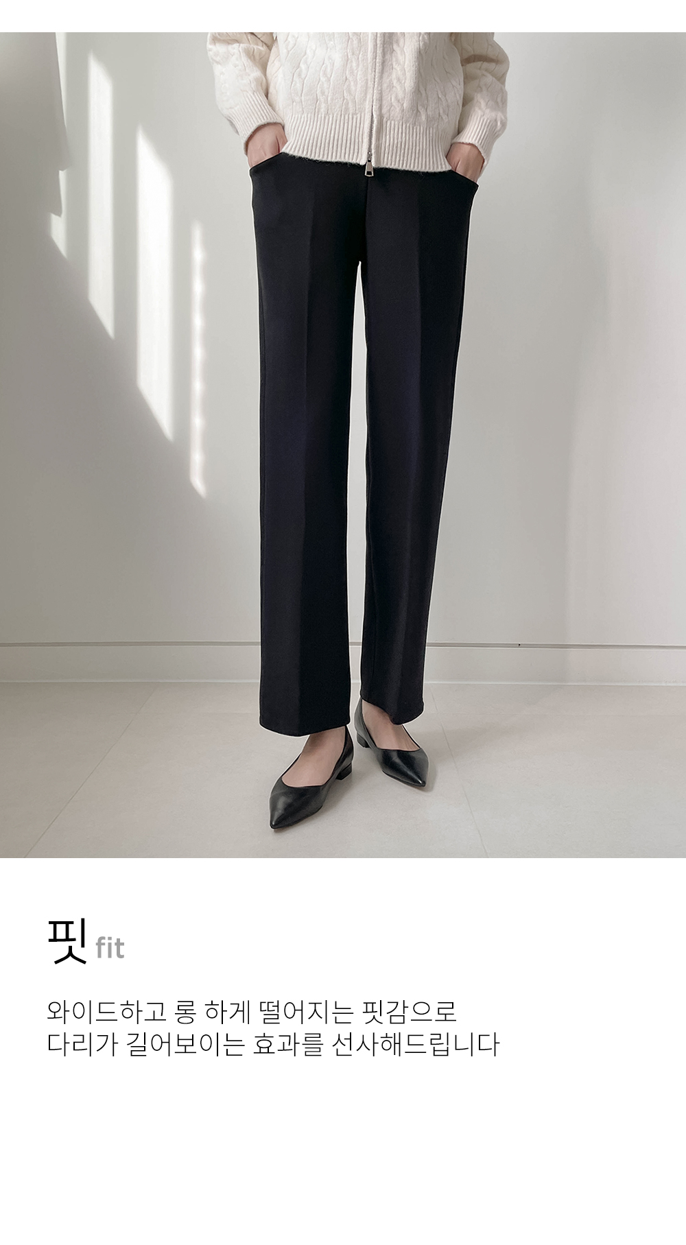 일자로 와이드하게 뚝 떨어지는 슬랙스로